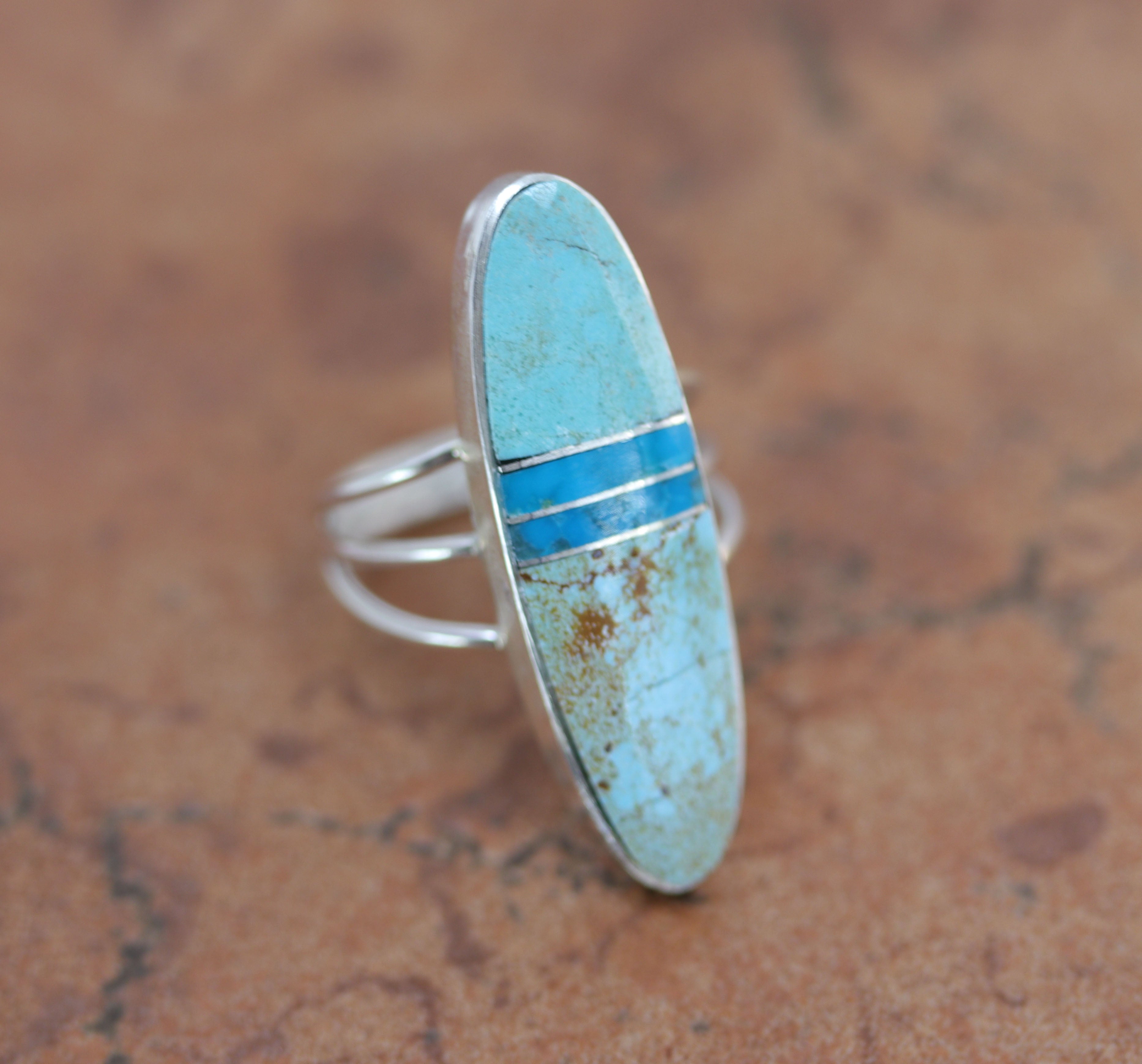 Beautiful Navajo Native American ring. It is made from sterling silver and turquoise. The ring size 6 1/2 and it is 1 3/8" in length.