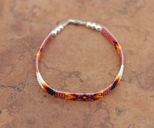 A beautiful Navajo beaded bracelet. It is about 8" from end to end and the width is 1/4" at the widest point.