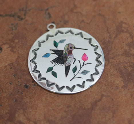 Gorgeous Zuni Native American Pendant. It is made from sterling silver and multi-stone inlay. It is 1 5/8" in width and 2" in length including the bail.