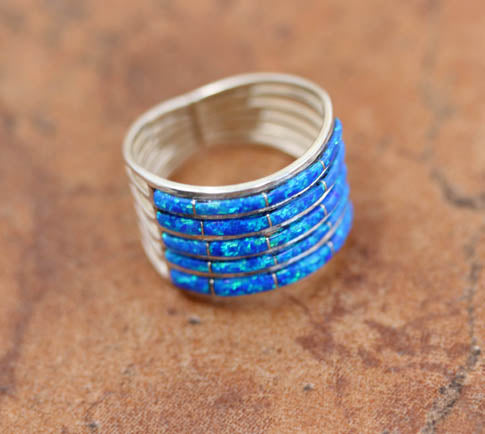 Zuni Native American ring. It is made from sterling silver and created opal. The ring size 10 1/2 and it is 5/8" in length.
