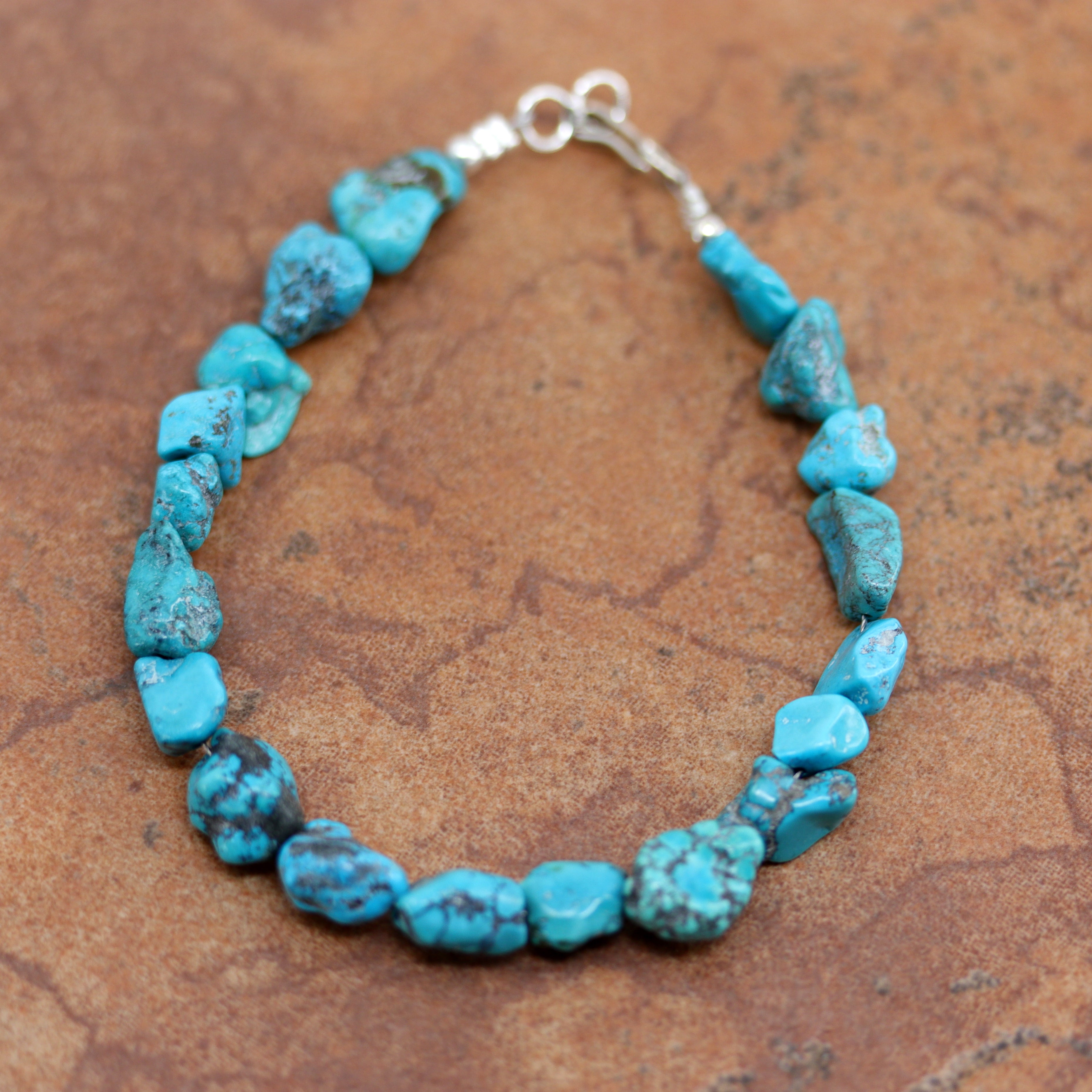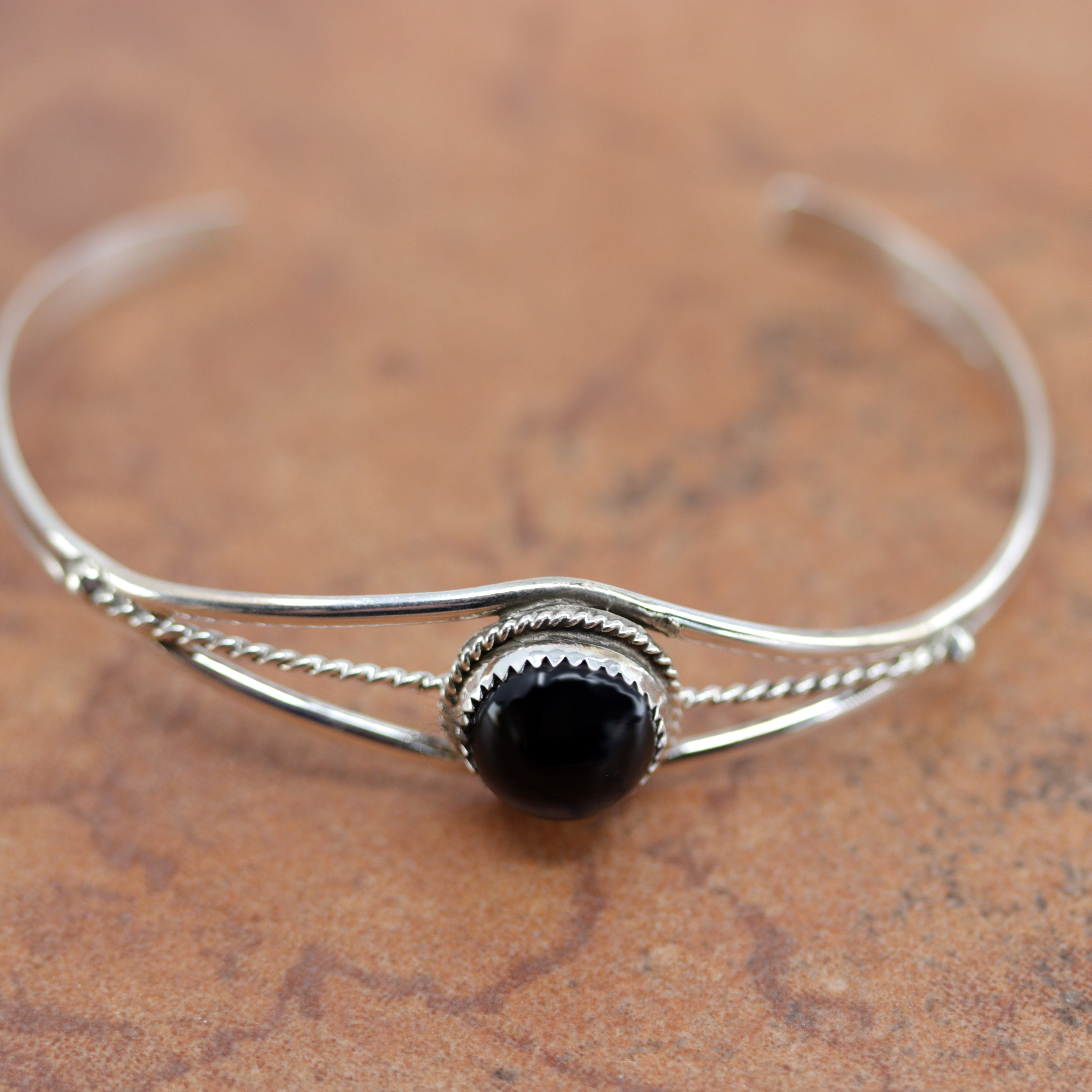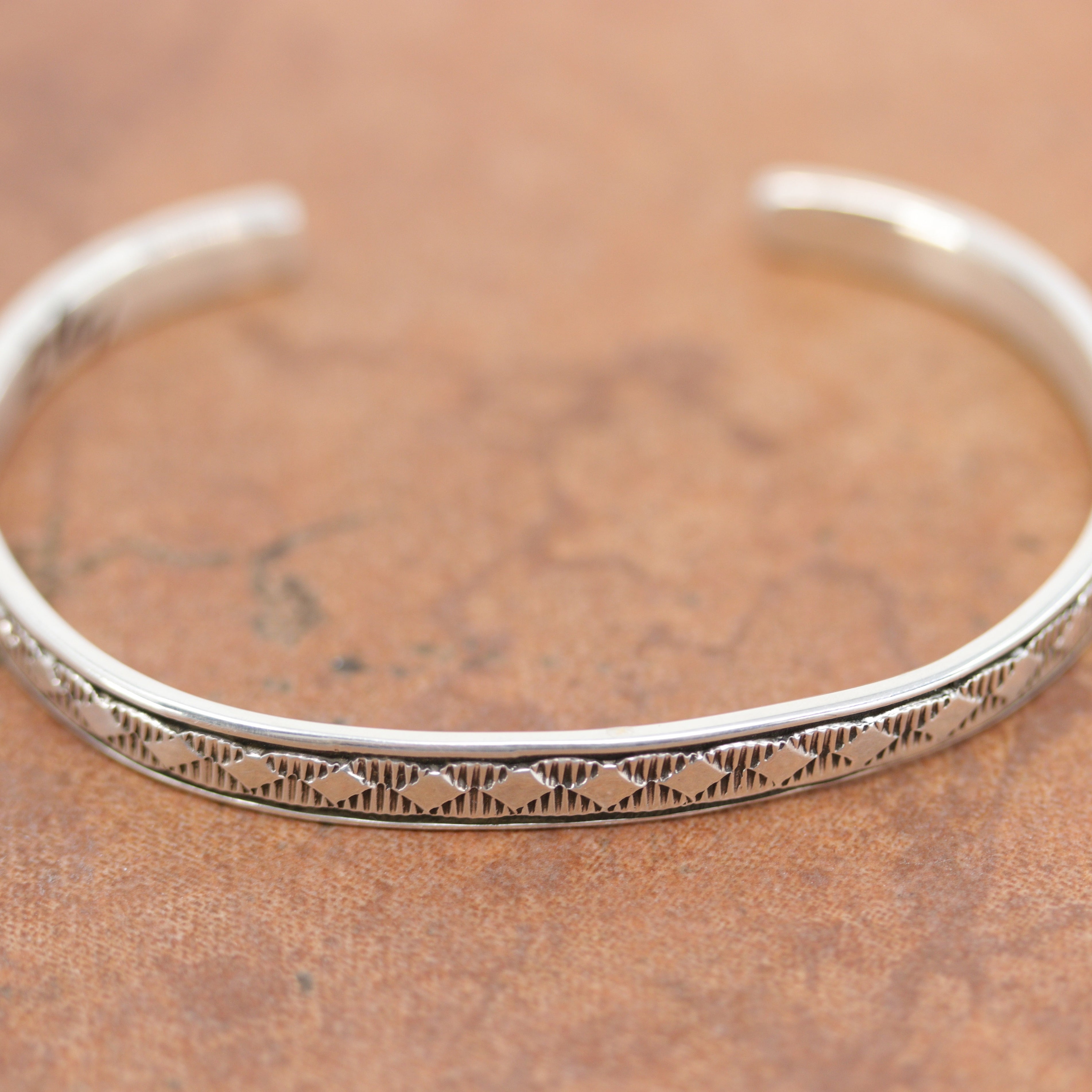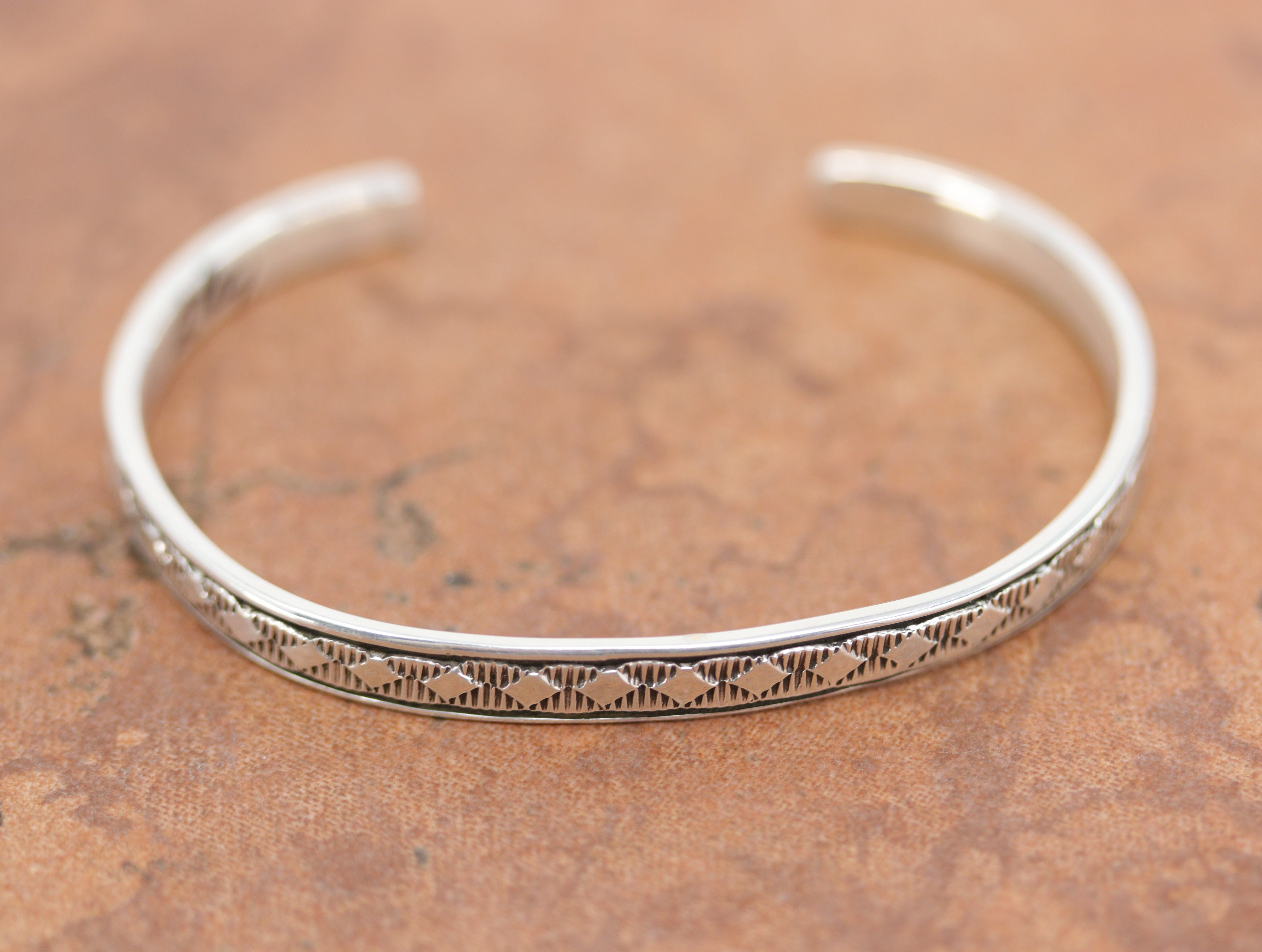 We are proud to offer a large selection of bracelets. We offer Navajo, Zuni, Native American, and Southwest designs. Our sterling silver bracelets feature stones like turquoise, coral, howlite, tiger eye, amethyst, mother of pearl, onyx, malachite, spiny oyster and many more with some that are enhanced with gold overlay. We carry many styles such as; cluster, cuff, beaded, link, inlay, multi-stone, story teller, Zia, eagle, leather, bangle, feather, nugget, bear paw, heart, and one size fits all.