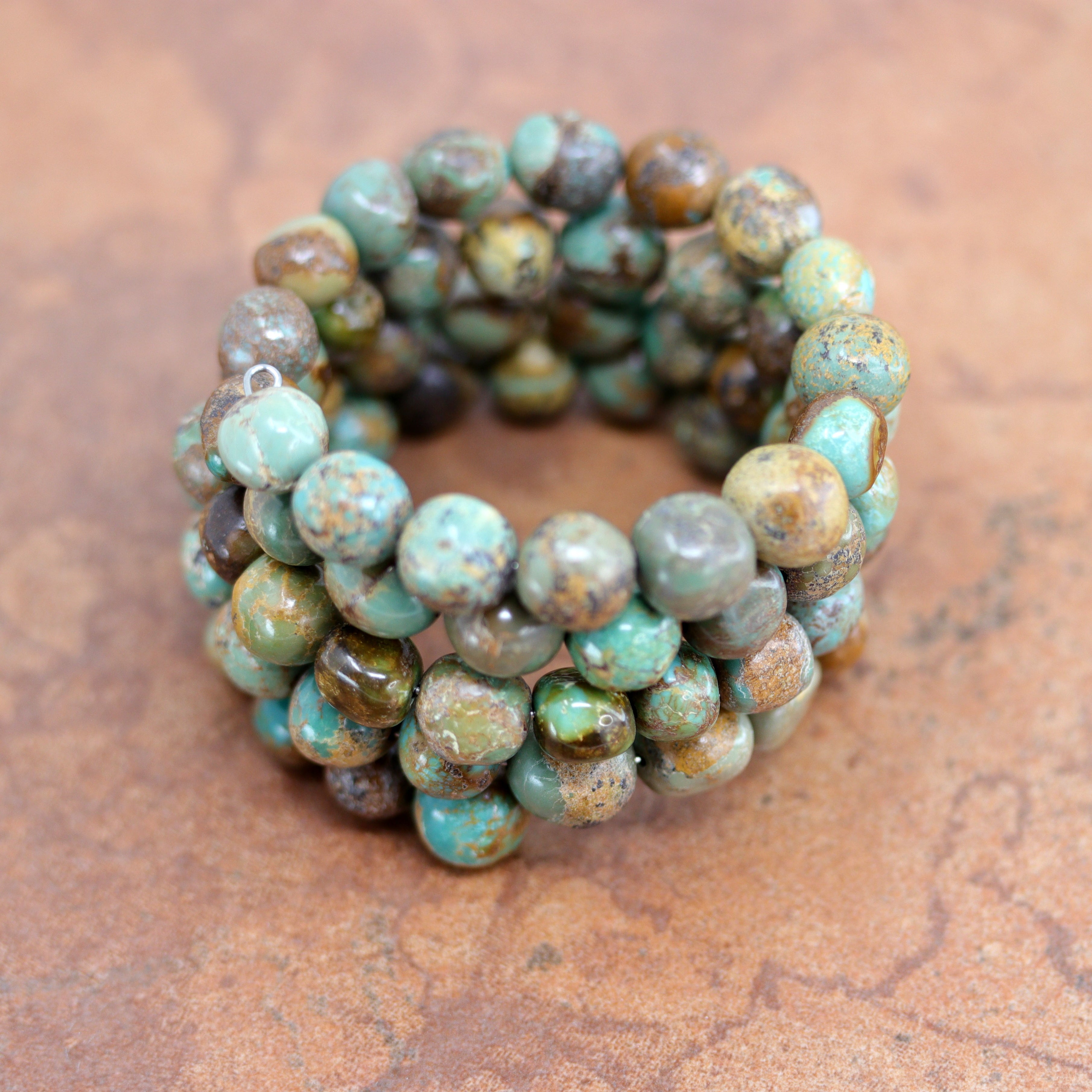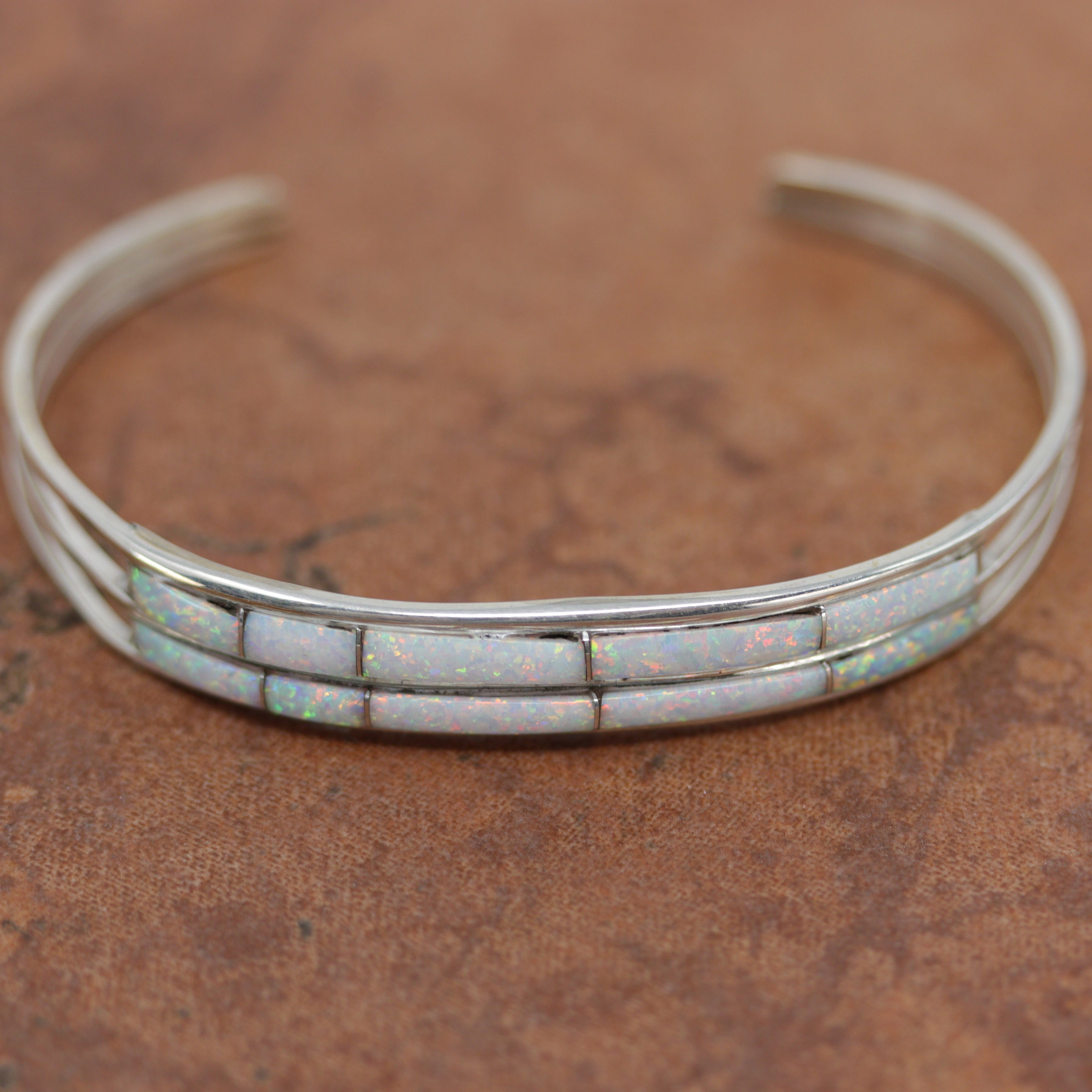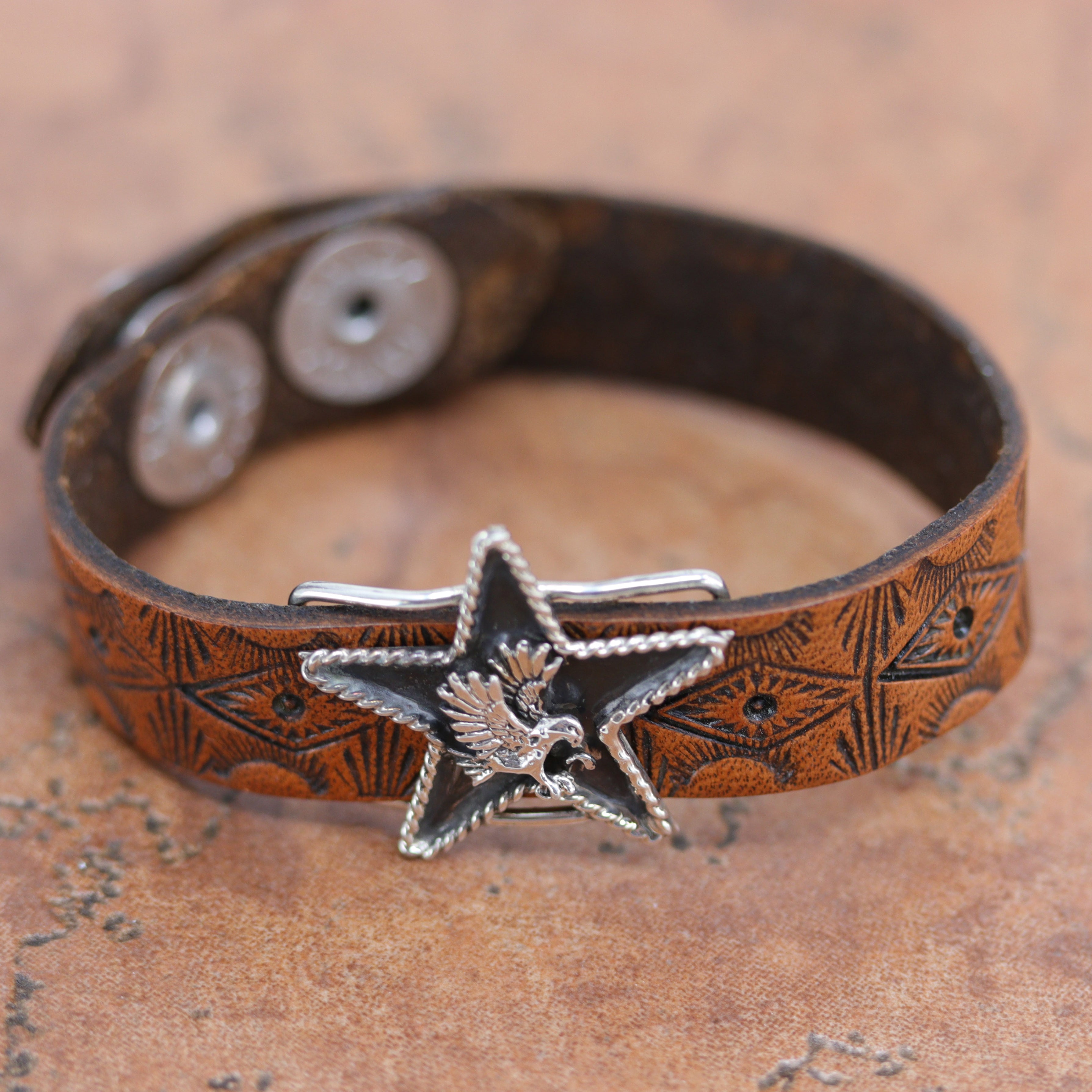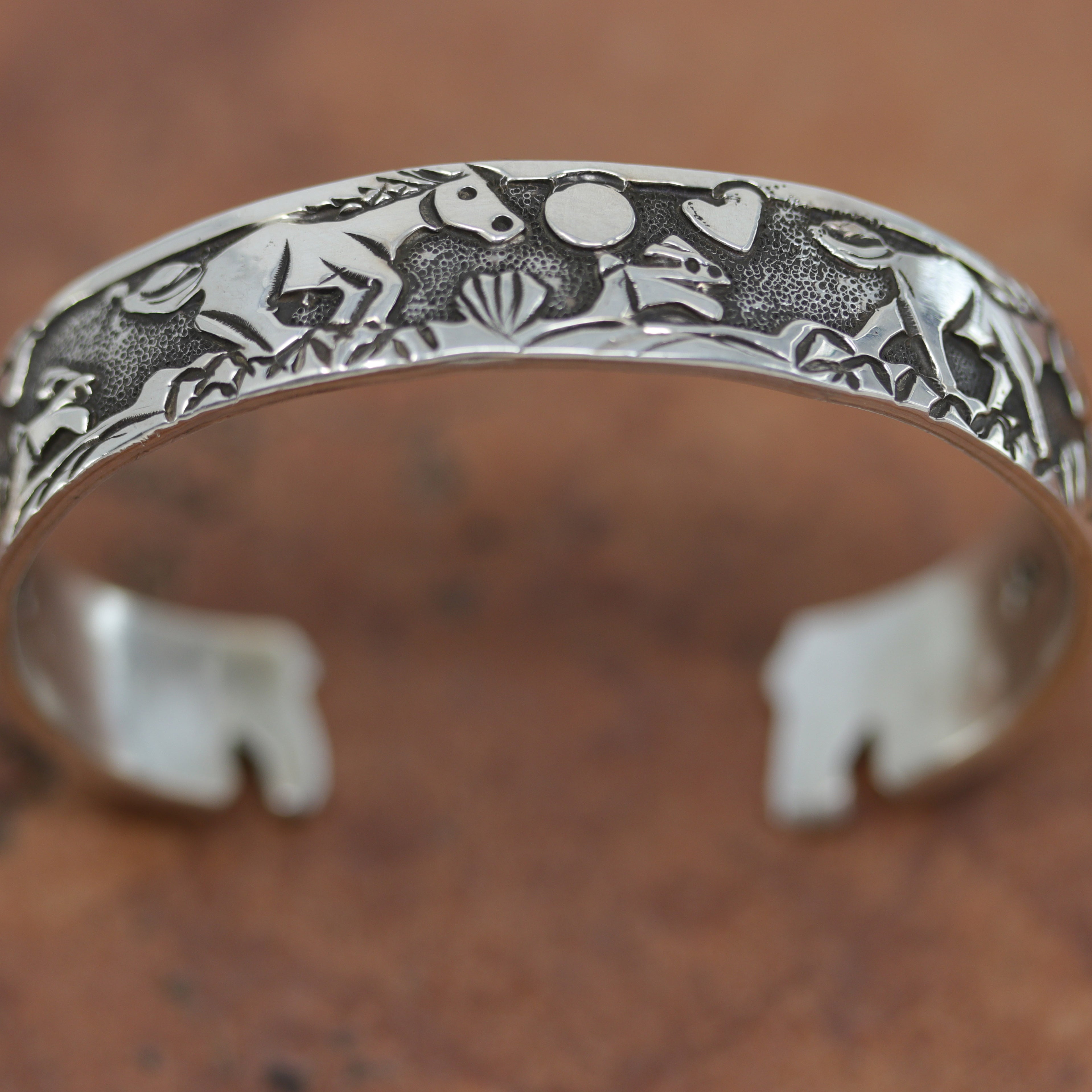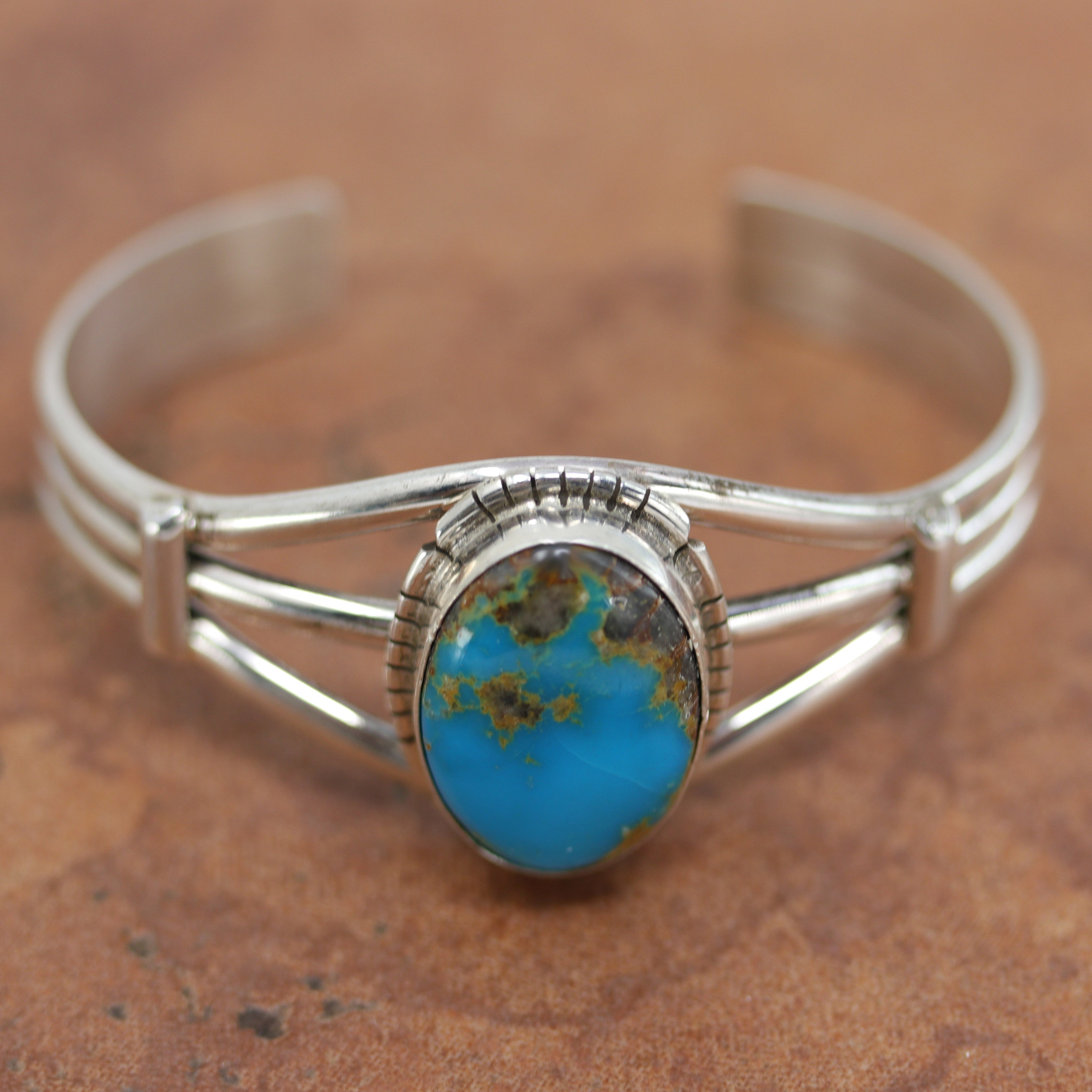 We are proud to offer a large selection of bracelets. We offer Navajo, Zuni, Native American, and Southwest designs. Our sterling silver bracelets feature stones like turquoise, coral, howlite, tiger eye, amethyst, mother of pearl, onyx, malachite, spiny oyster and many more with some that are enhanced with gold overlay. We carry many styles such as; cluster, cuff, beaded, link, inlay, multi-stone, story teller, Zia, eagle, leather, bangle, feather, nugget, bear paw, heart, and one size fits all.