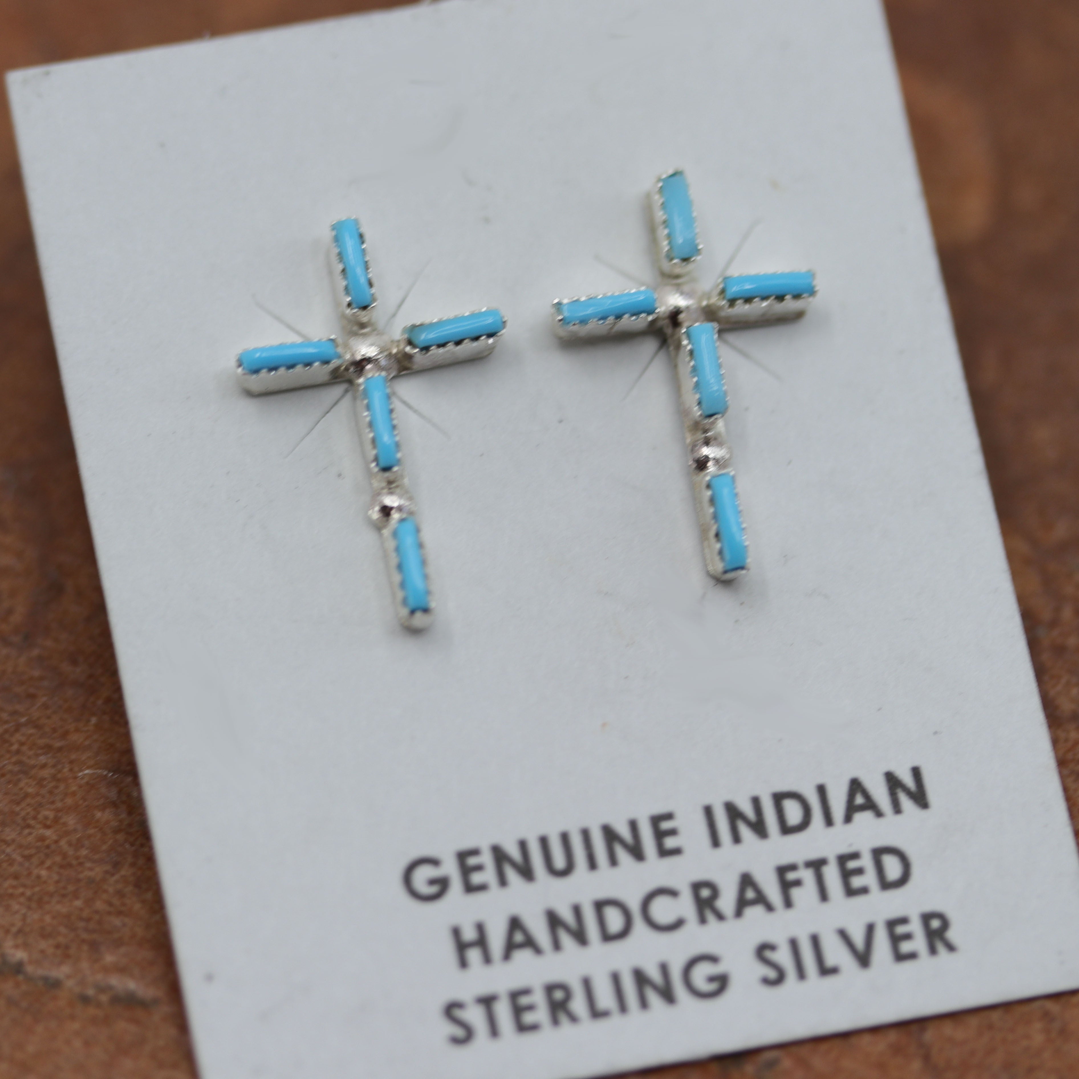 We proudly carry a large variety of sterling silver earrings. Our earrings showcase turquoise, coral, inlay, beadwork, onyx, lapis, spiny oyster, and other beautiful stones. We offer Navajo, Zuni, Native American, and Southwest designs. Our pieces feature post, hoop, Zia, bear paw, dangle, Spider, Petroglyph, nugget, cross, storyteller, Zuni inlay, and many more styles.