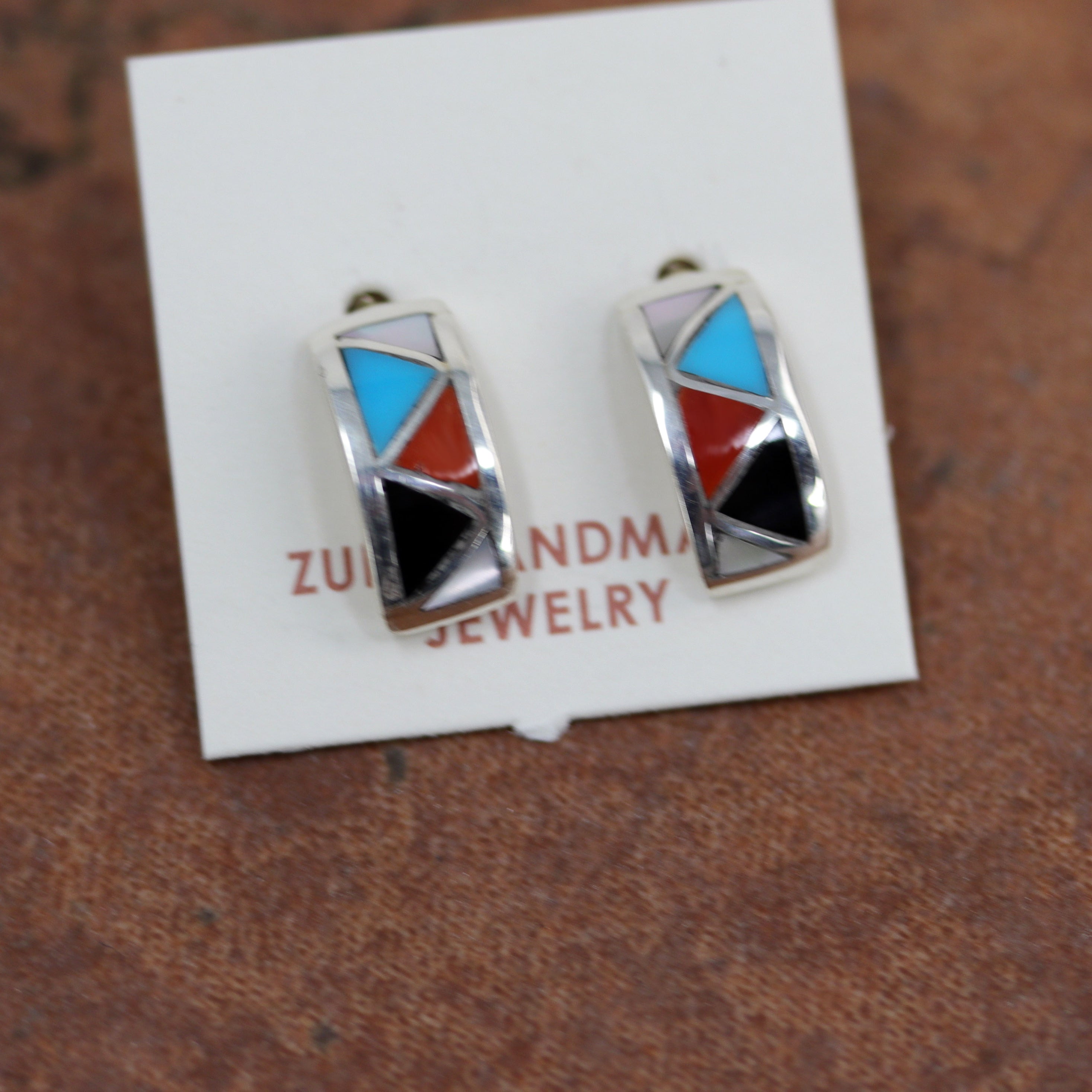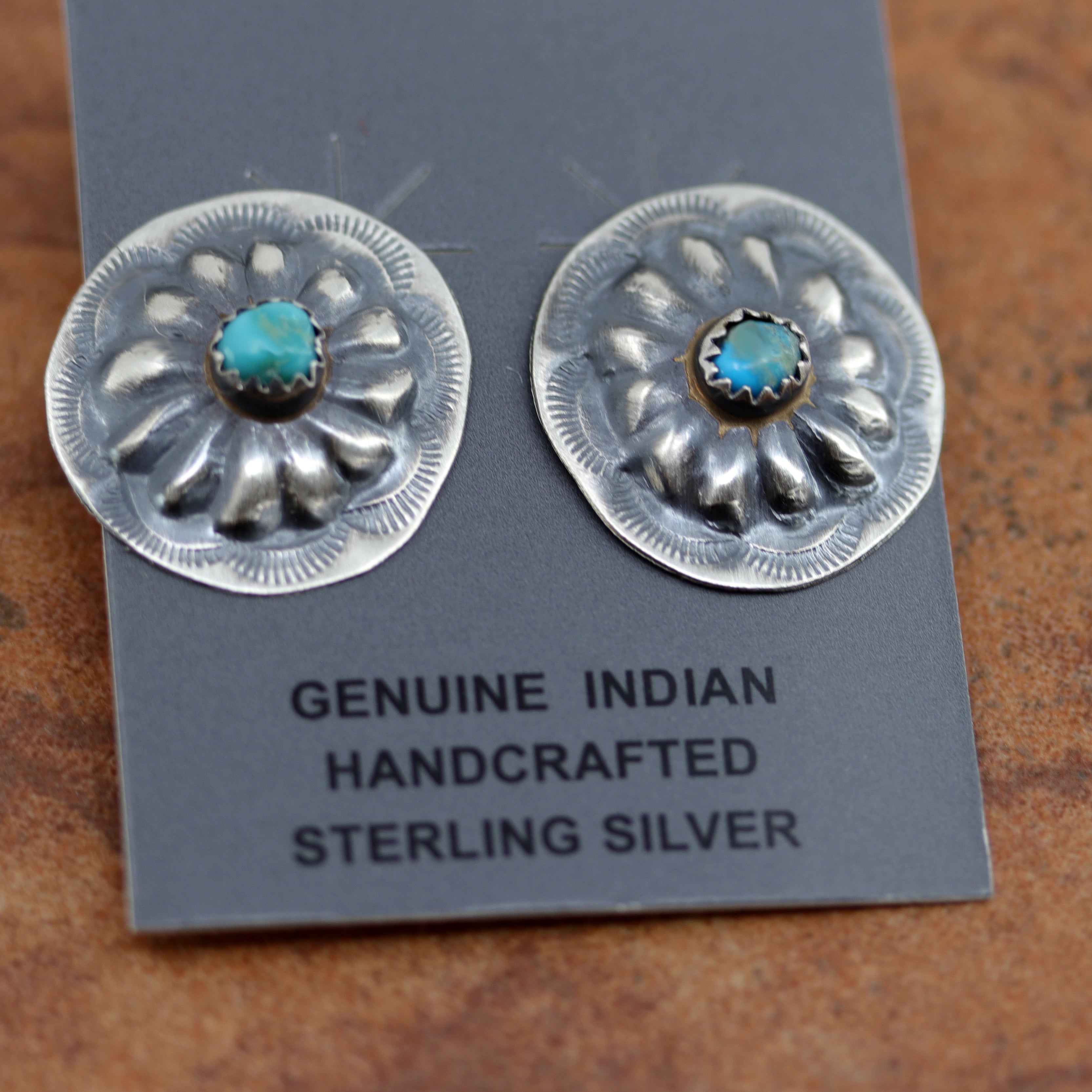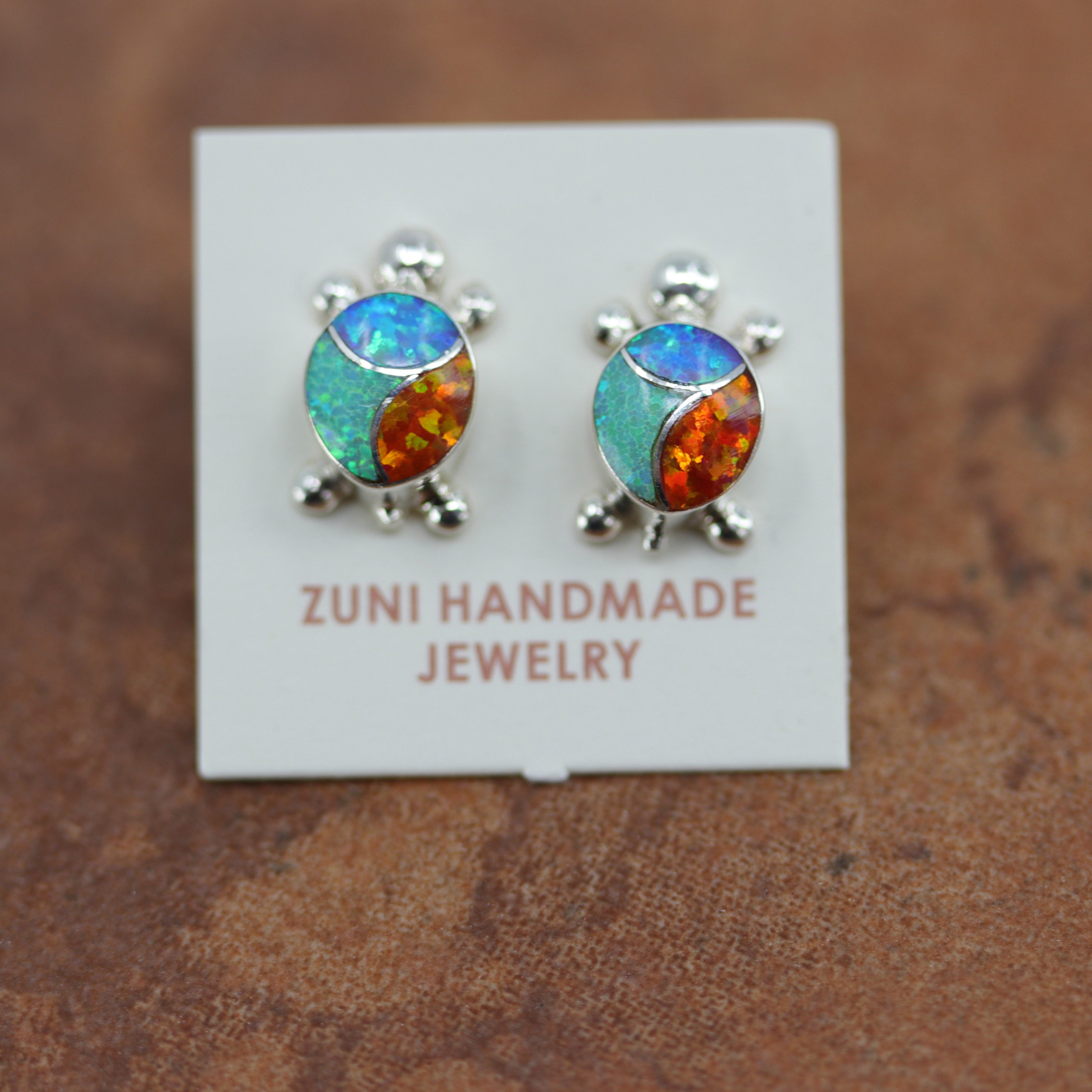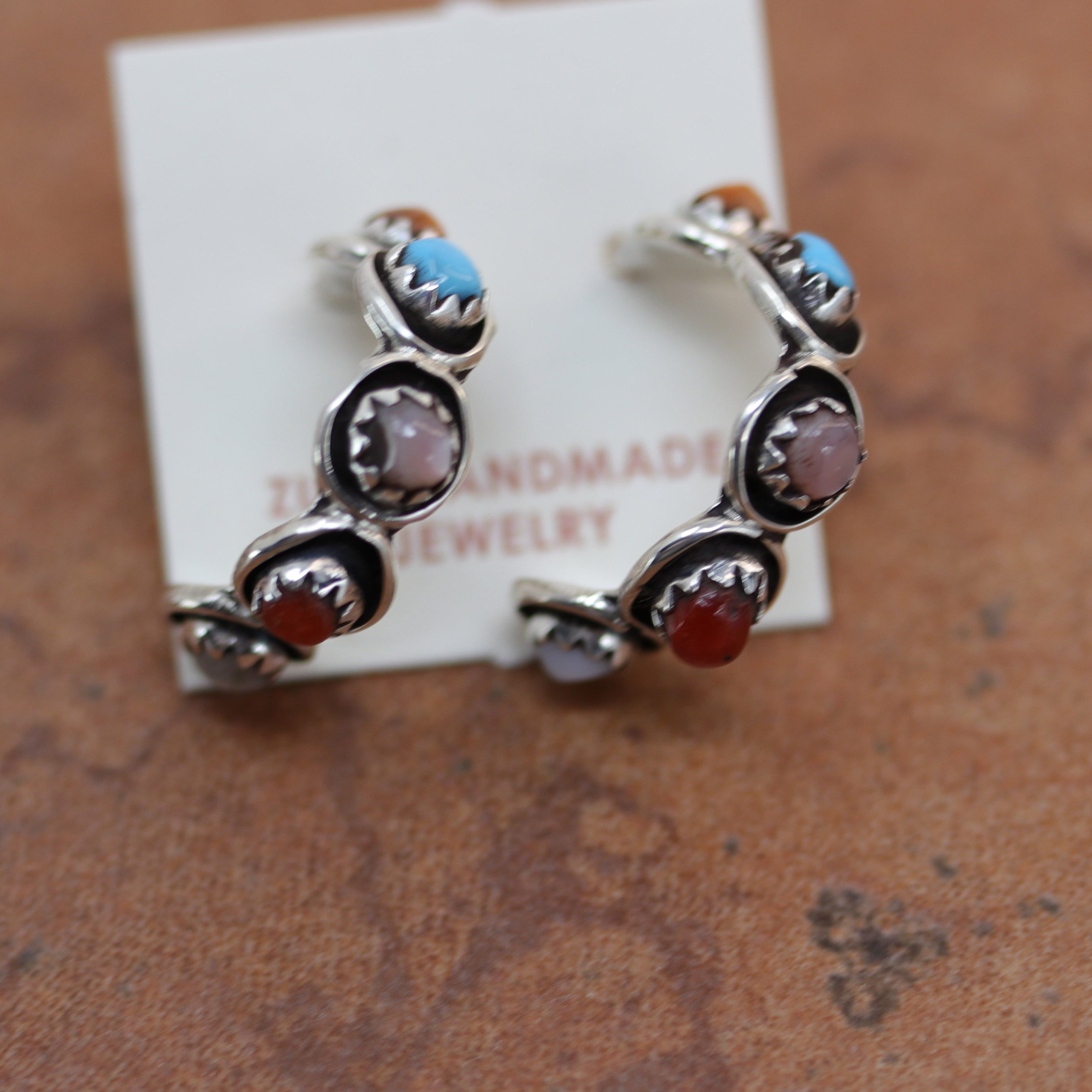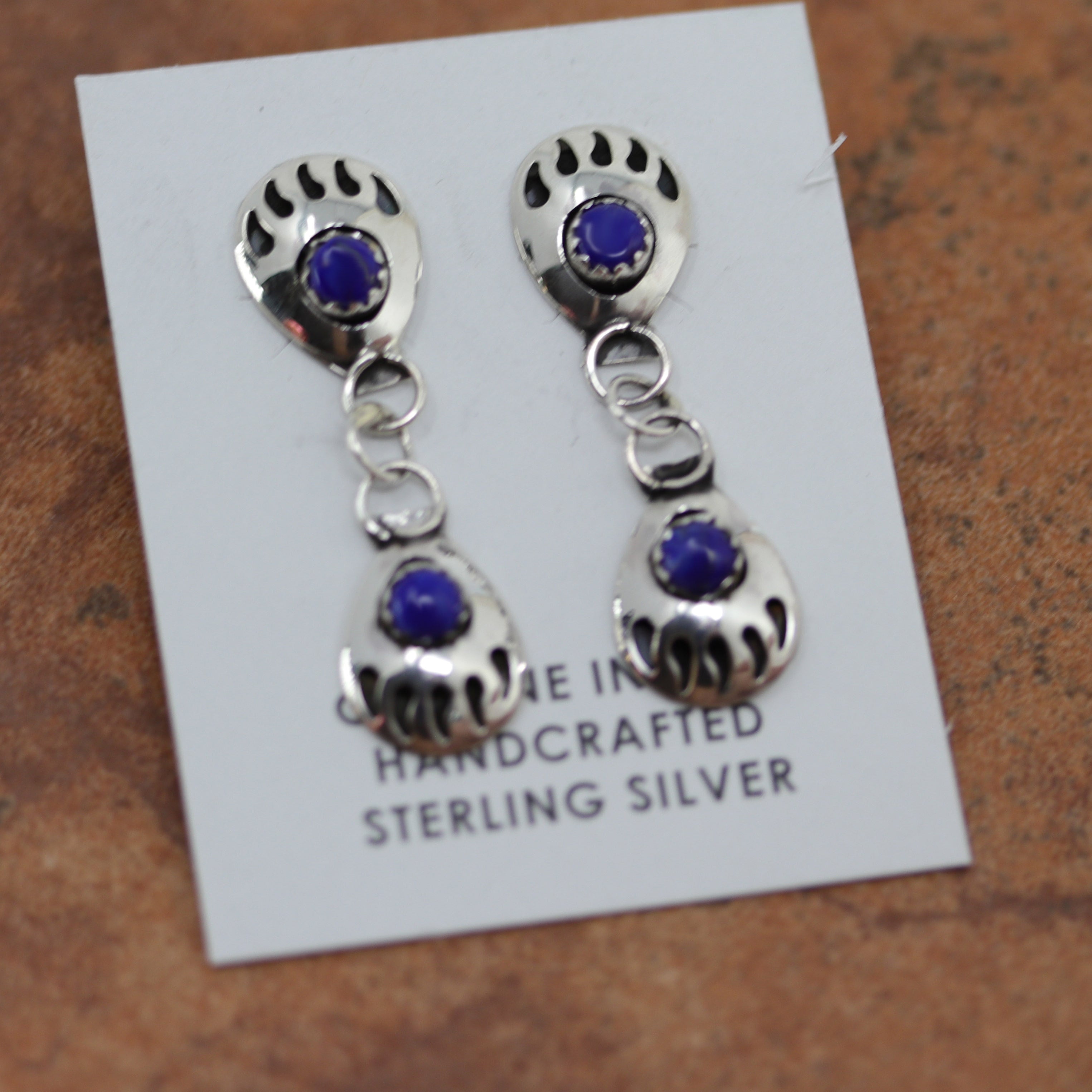 We proudly carry a large variety of sterling silver earrings. Our earrings showcase turquoise, coral, inlay, beadwork, onyx, lapis, spiny oyster, and other beautiful stones. We offer Navajo, Zuni, Native American, and Southwest designs. Our pieces feature post, hoop, Zia, bear paw, dangle, Spider, Petroglyph, nugget, cross, storyteller, Zuni inlay, and many more styles.