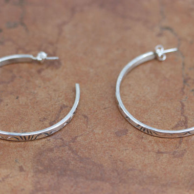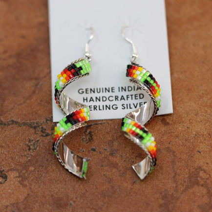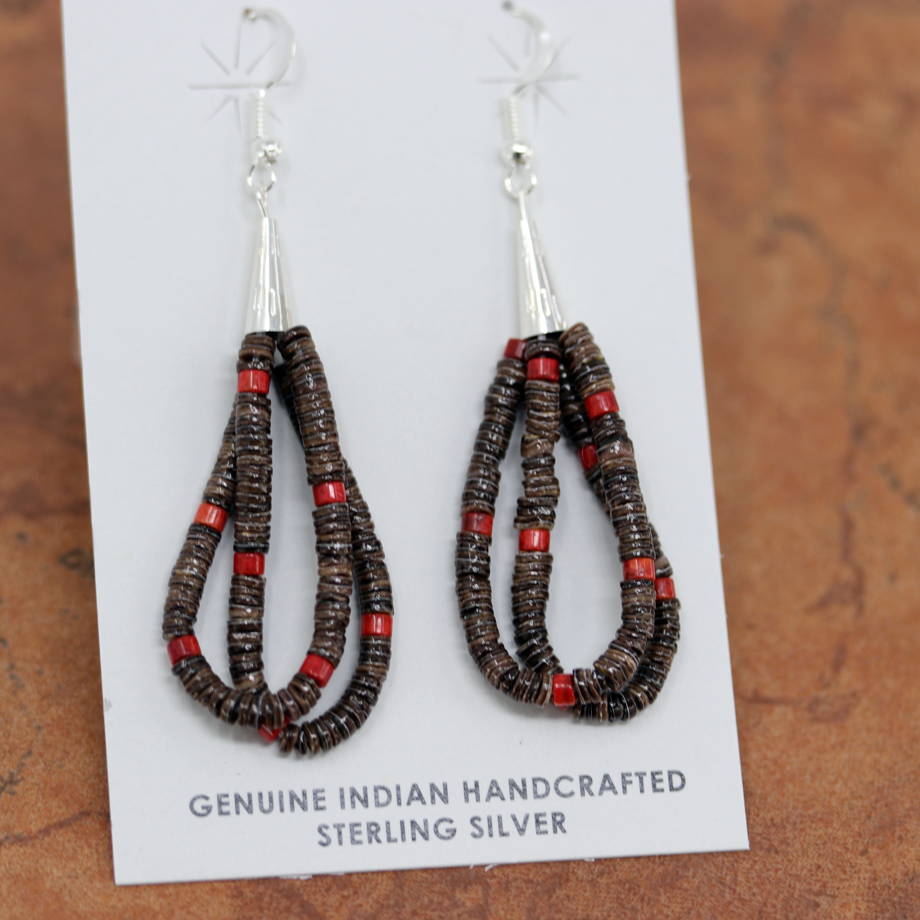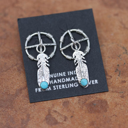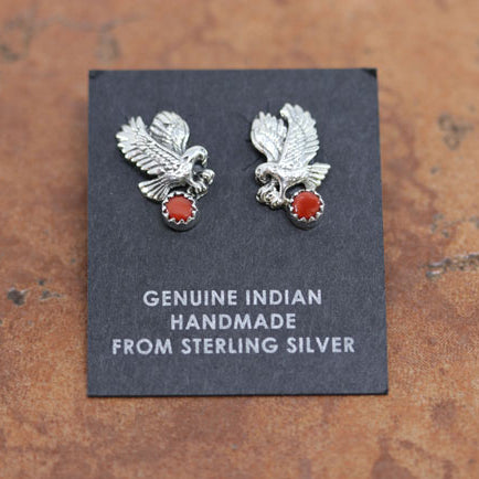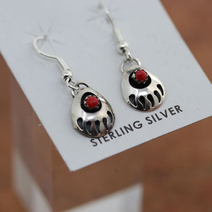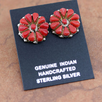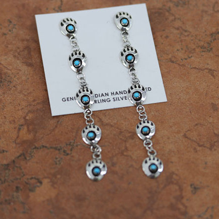 We proudly carry a large variety of sterling silver earrings. Our earrings showcase turquoise, coral, inlay, beadwork, onyx, lapis, spiny oyster, and other beautiful stones. We offer Navajo, Zuni, Native American, and Southwest designs. Our pieces feature post, hoop, Zia, bear paw, dangle, Spider, Petroglyph, nugget, cross, storyteller, Zuni inlay, and many more styles.