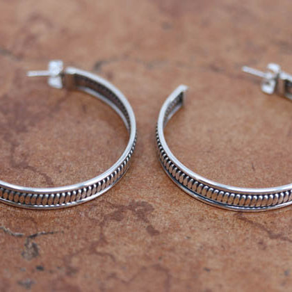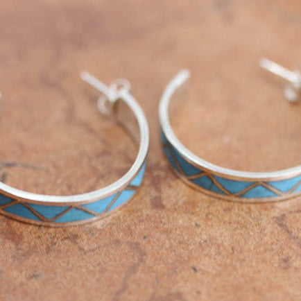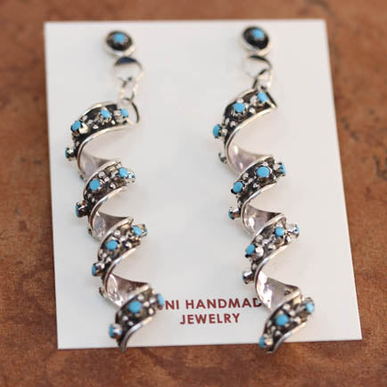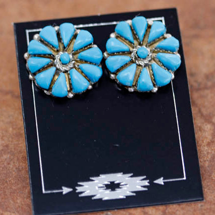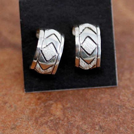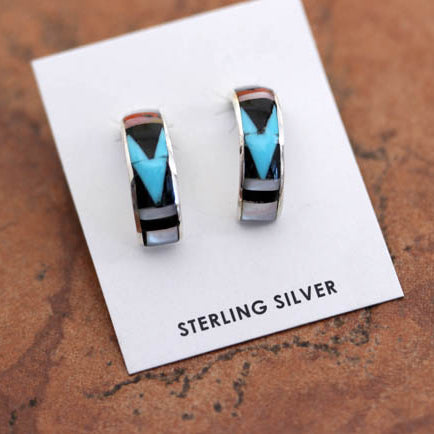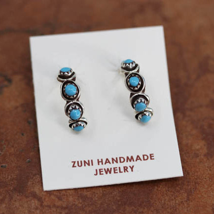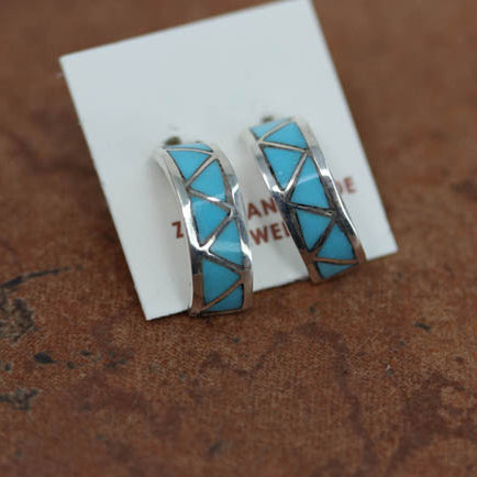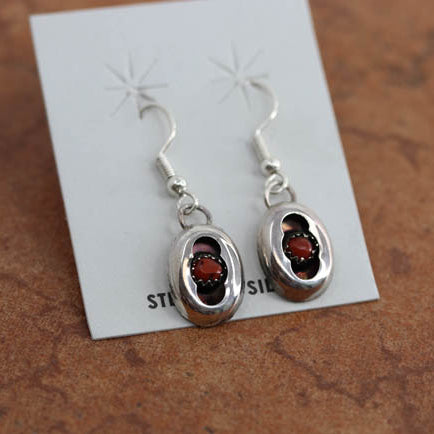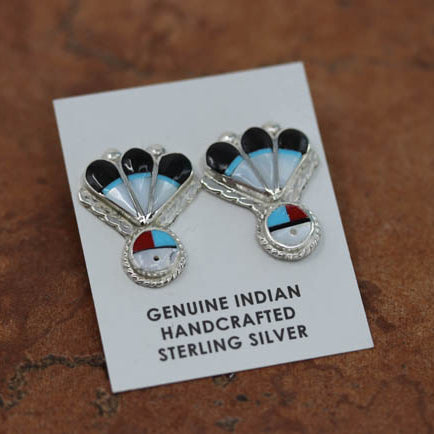 We proudly carry a large variety of sterling silver earrings. Our earrings showcase turquoise, coral, inlay, beadwork, onyx, lapis, spiny oyster, and other beautiful stones. We offer Navajo, Zuni, Native American, and Southwest designs. Our pieces feature post, hoop, Zia, bear paw, dangle, Spider, Petroglyph, nugget, cross, storyteller, Zuni inlay, and many more styles.
