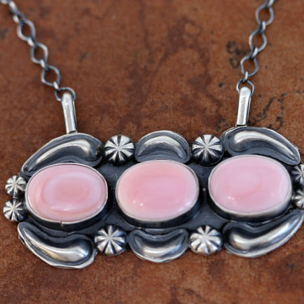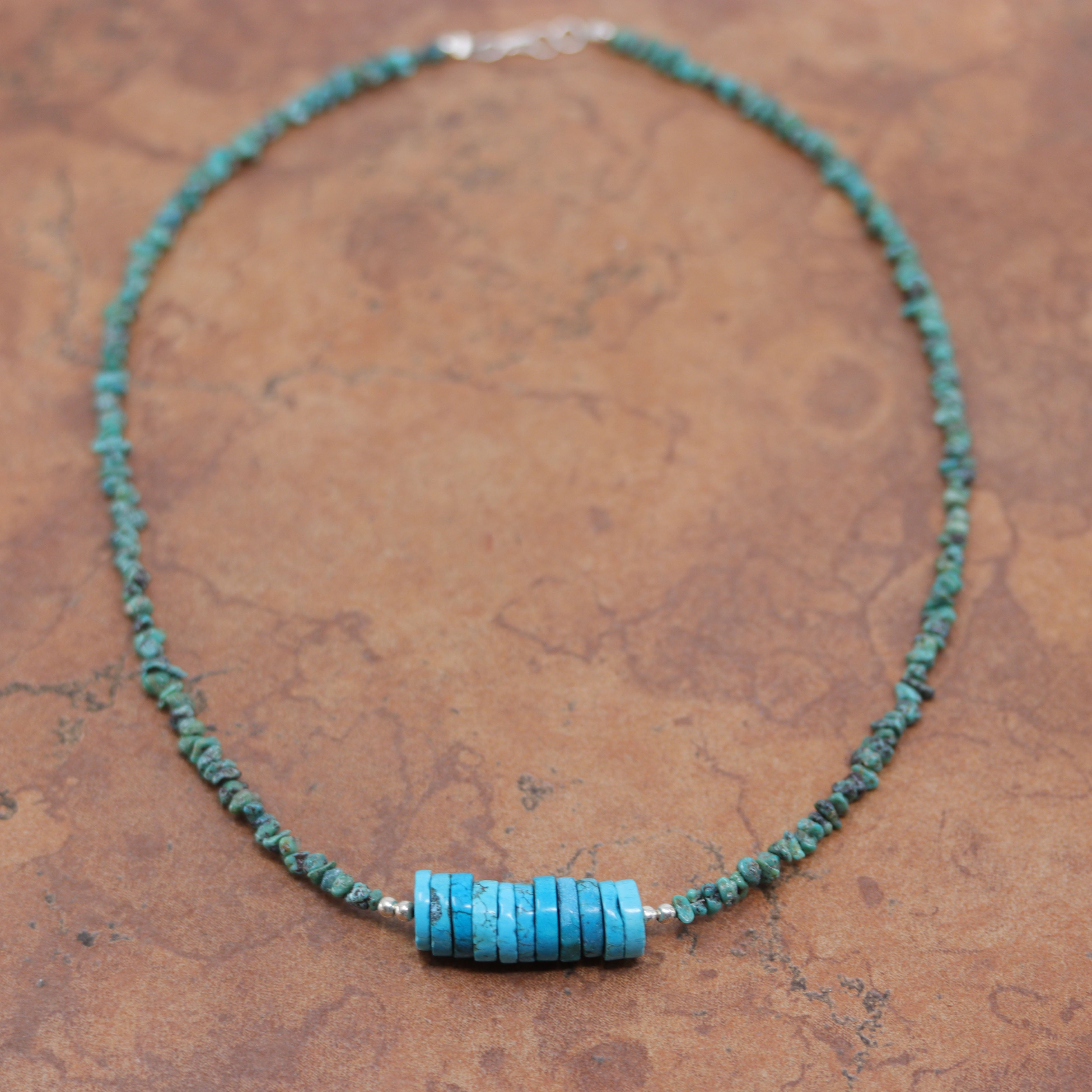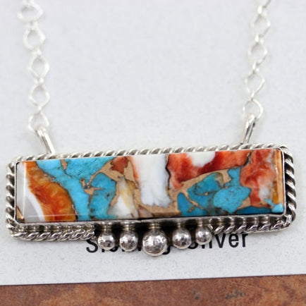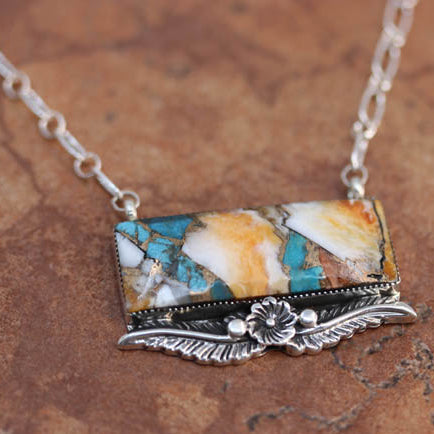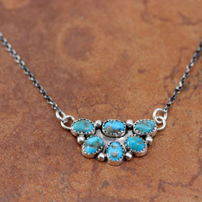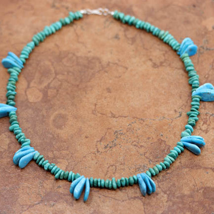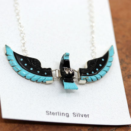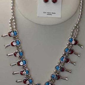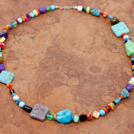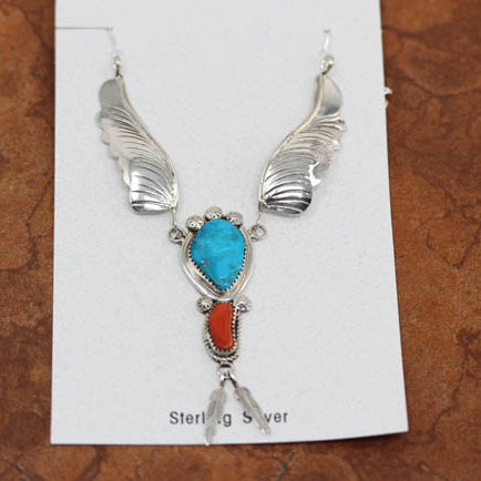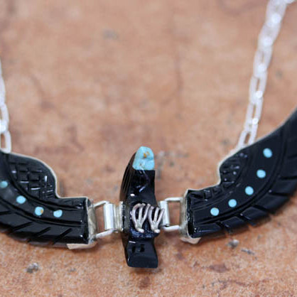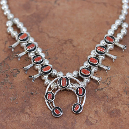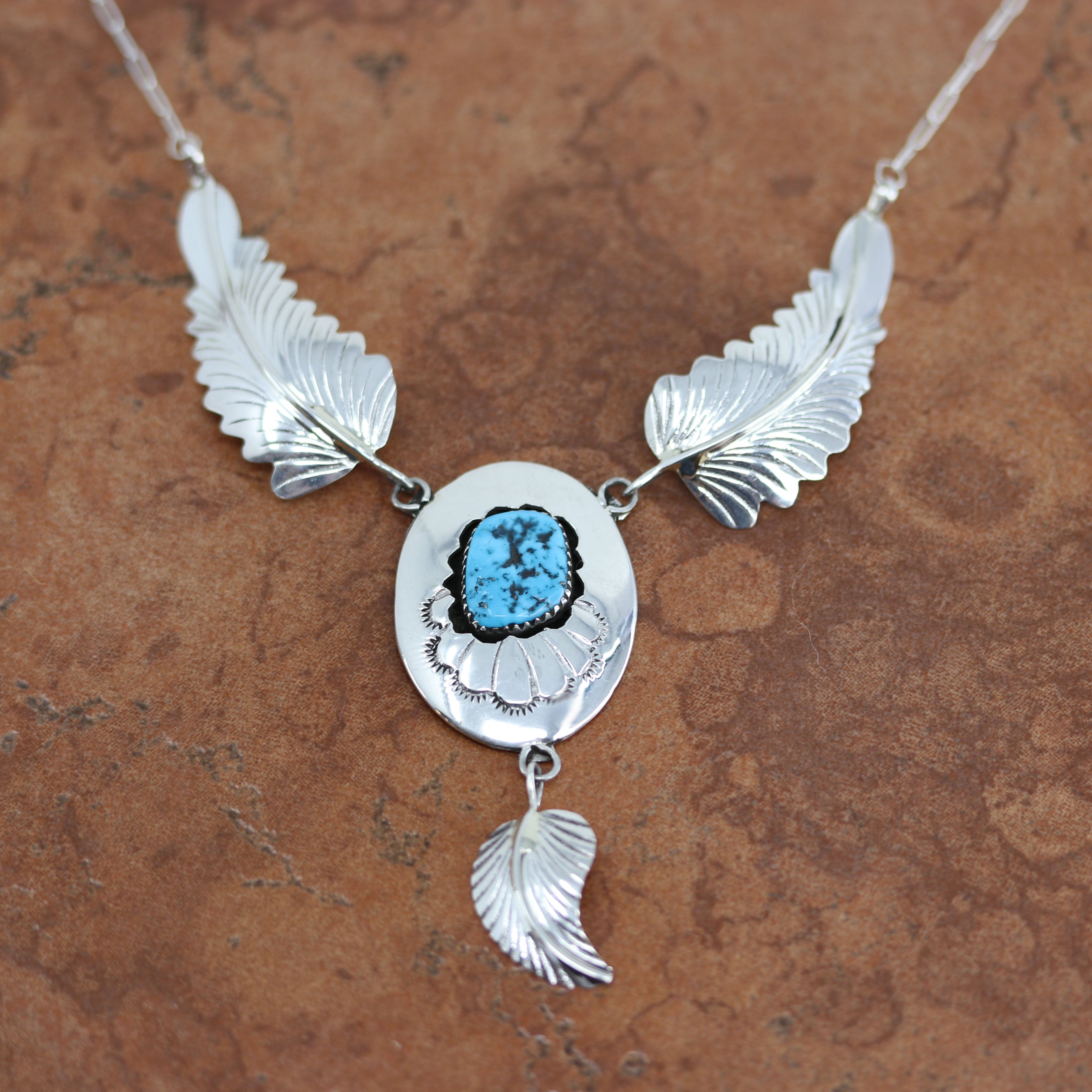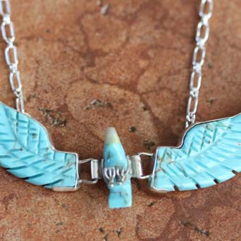 We would like to introduce you to a beautiful collection of necklaces. We offer Navajo, Zuni, Native American, and Southwest styles. Our sterling silver necklaces feature stones like turquoise, amber, red coral, lapis, black onyx, green gaspeite, Mojave Turquoise, spiny oyster, tiger eye, heishi, pearl, and many more. We have classic styles like dream catcher, squash blossom, feather, beaded, nugget, bar, dragonfly, choker, cross, cluster, chunky, Navajo pearl, multi-strand, Eagle, hearts, inlay, needlepoint, Sunface, and Zia.