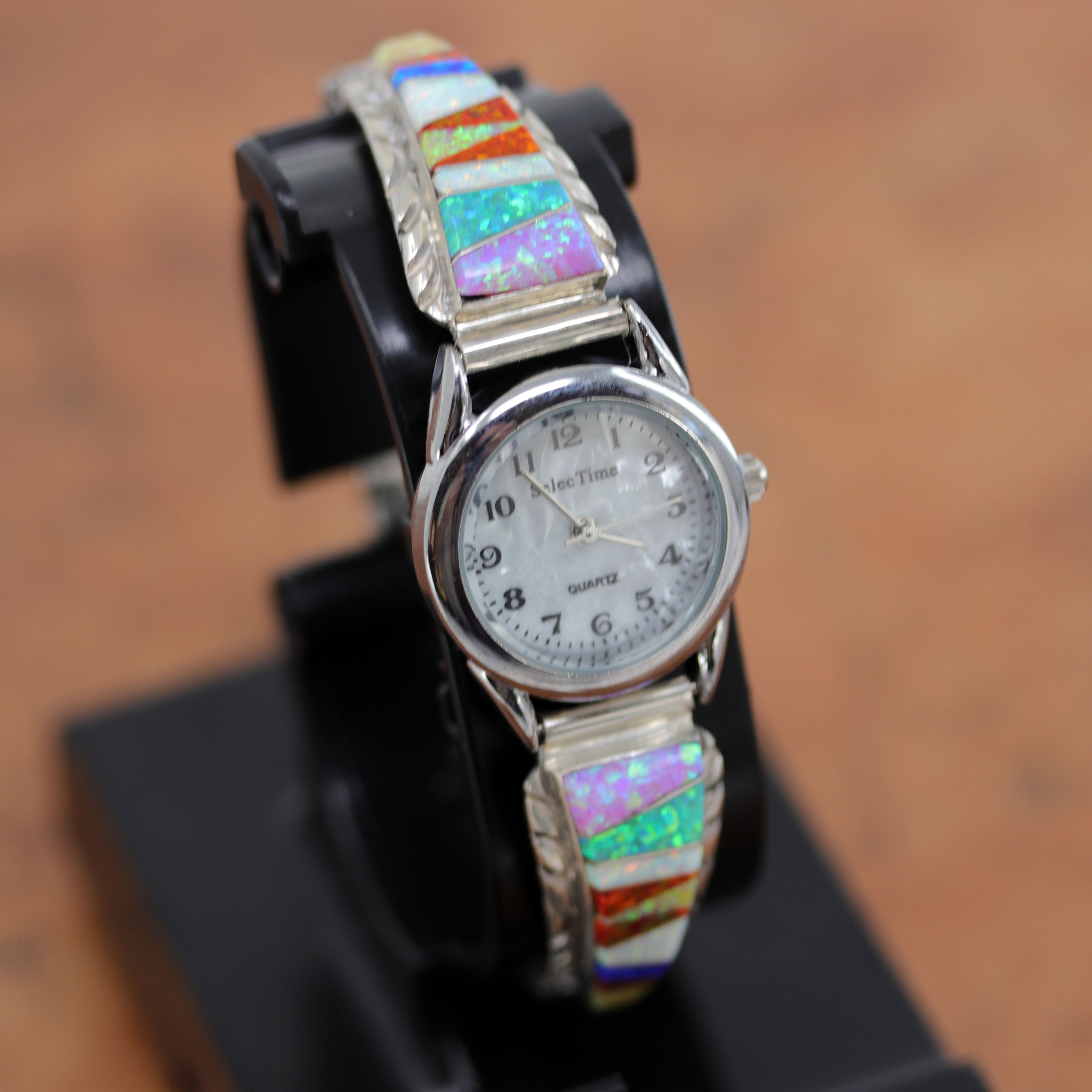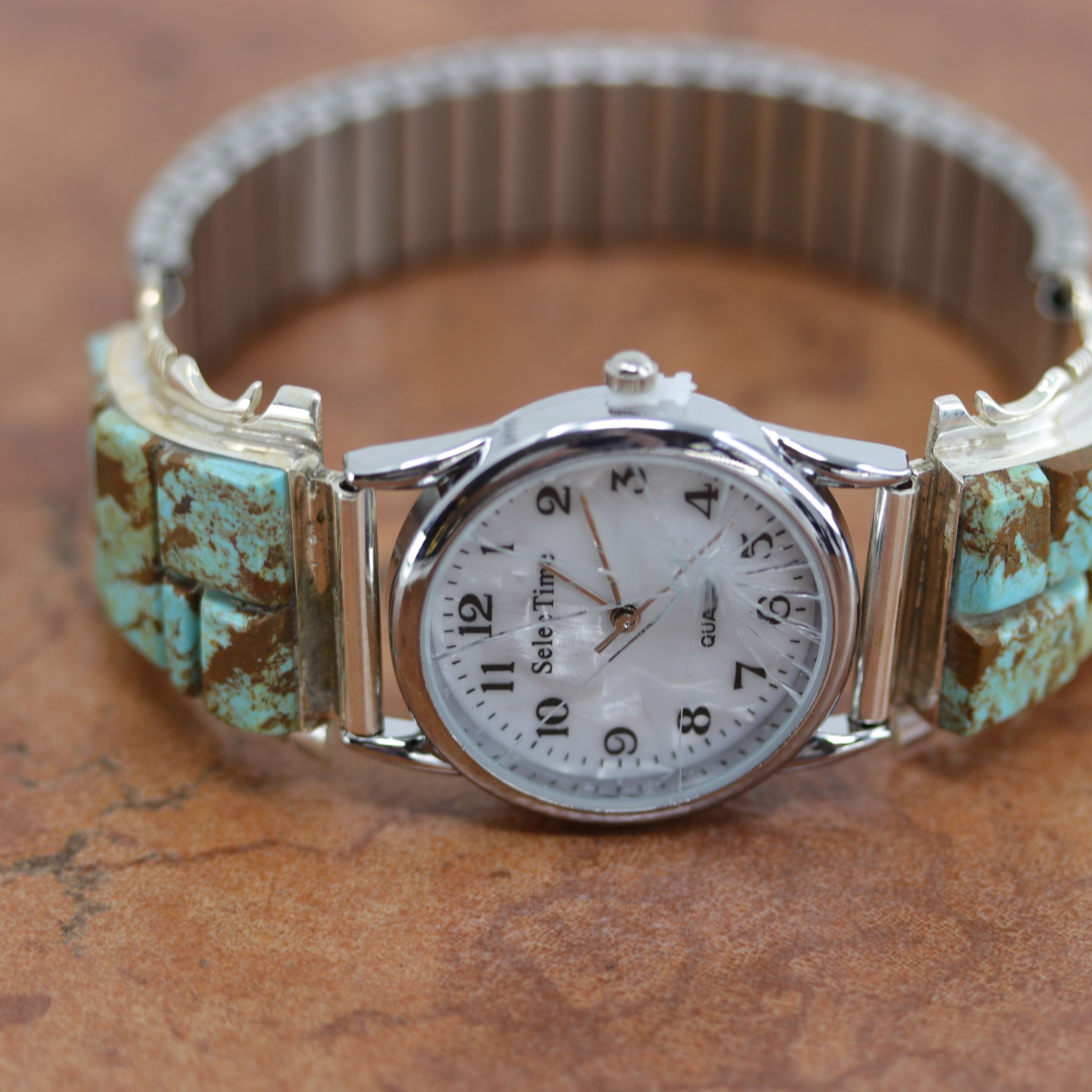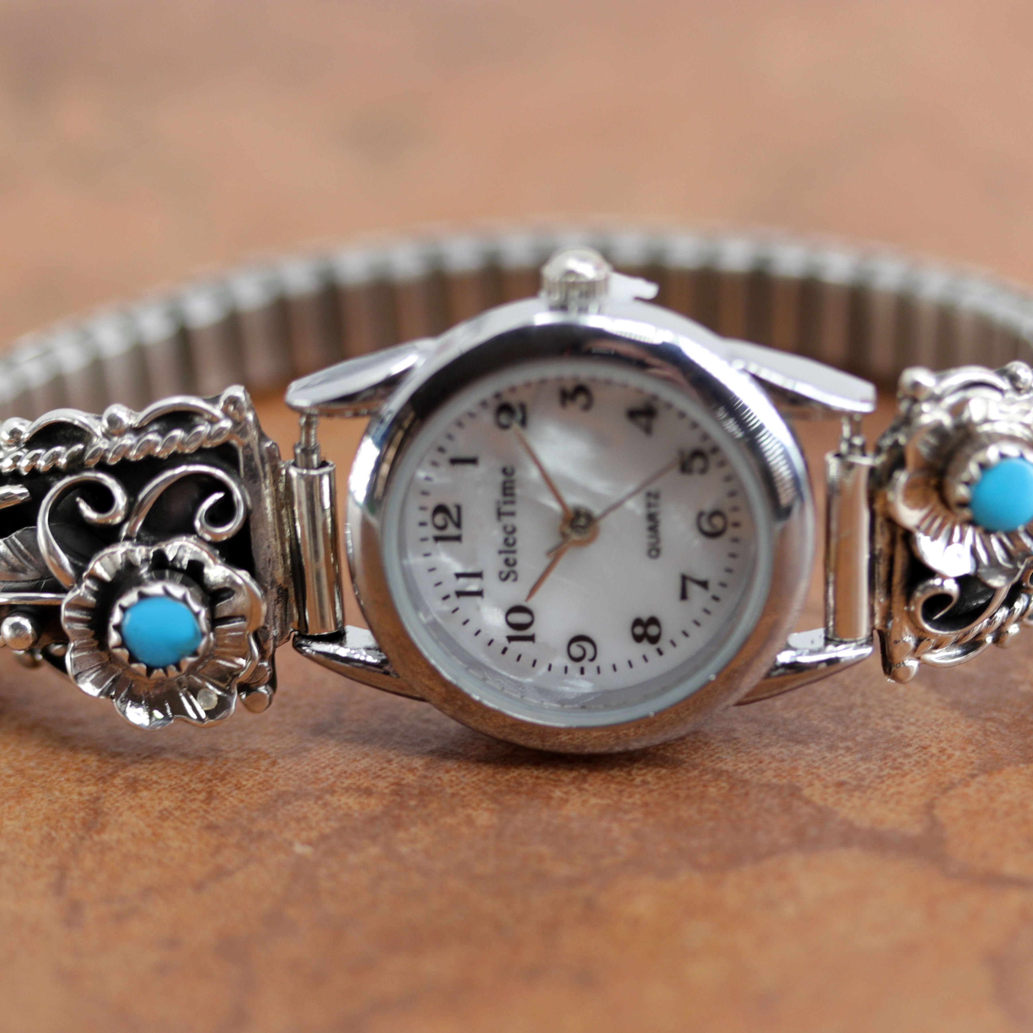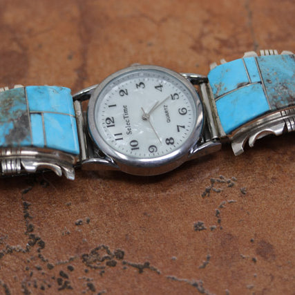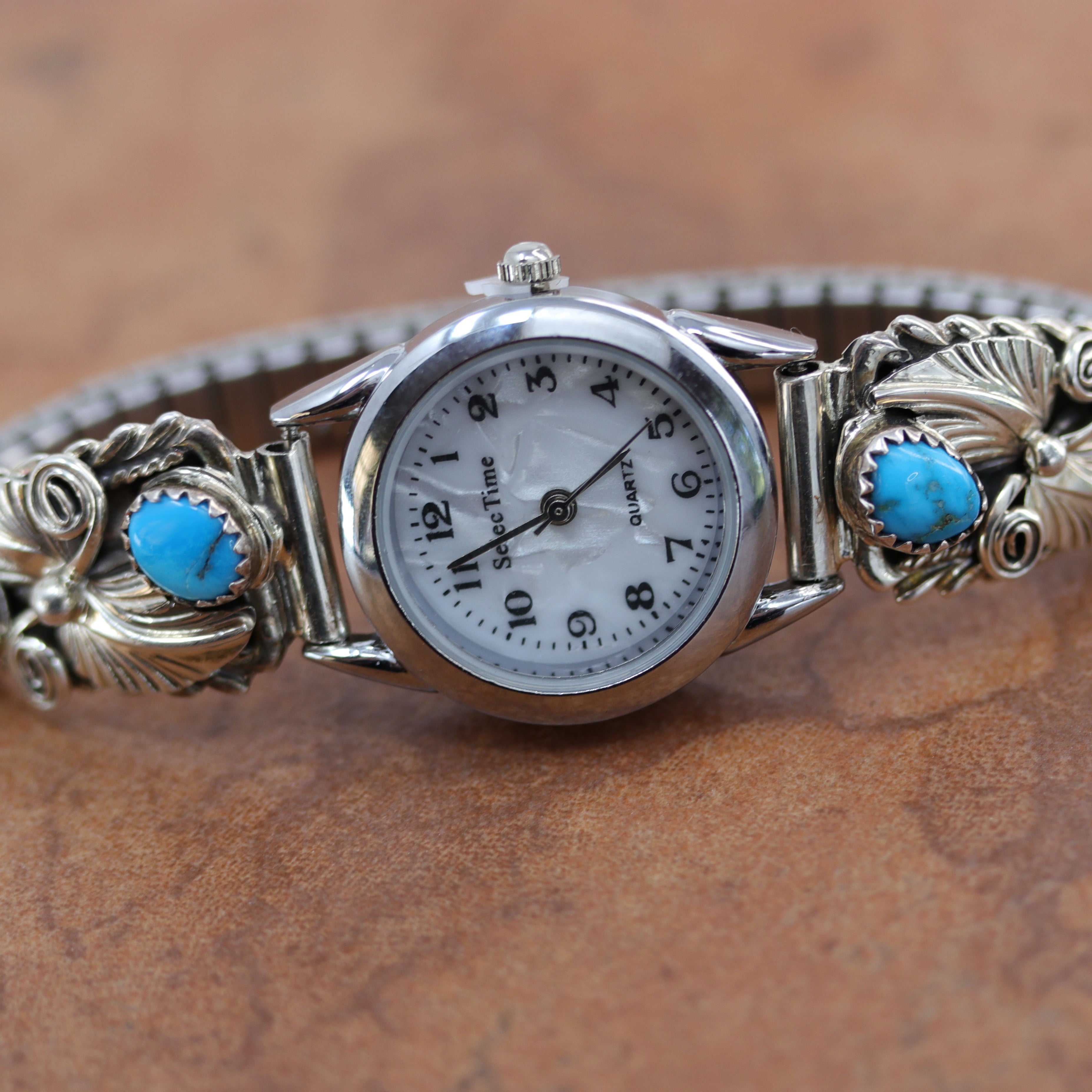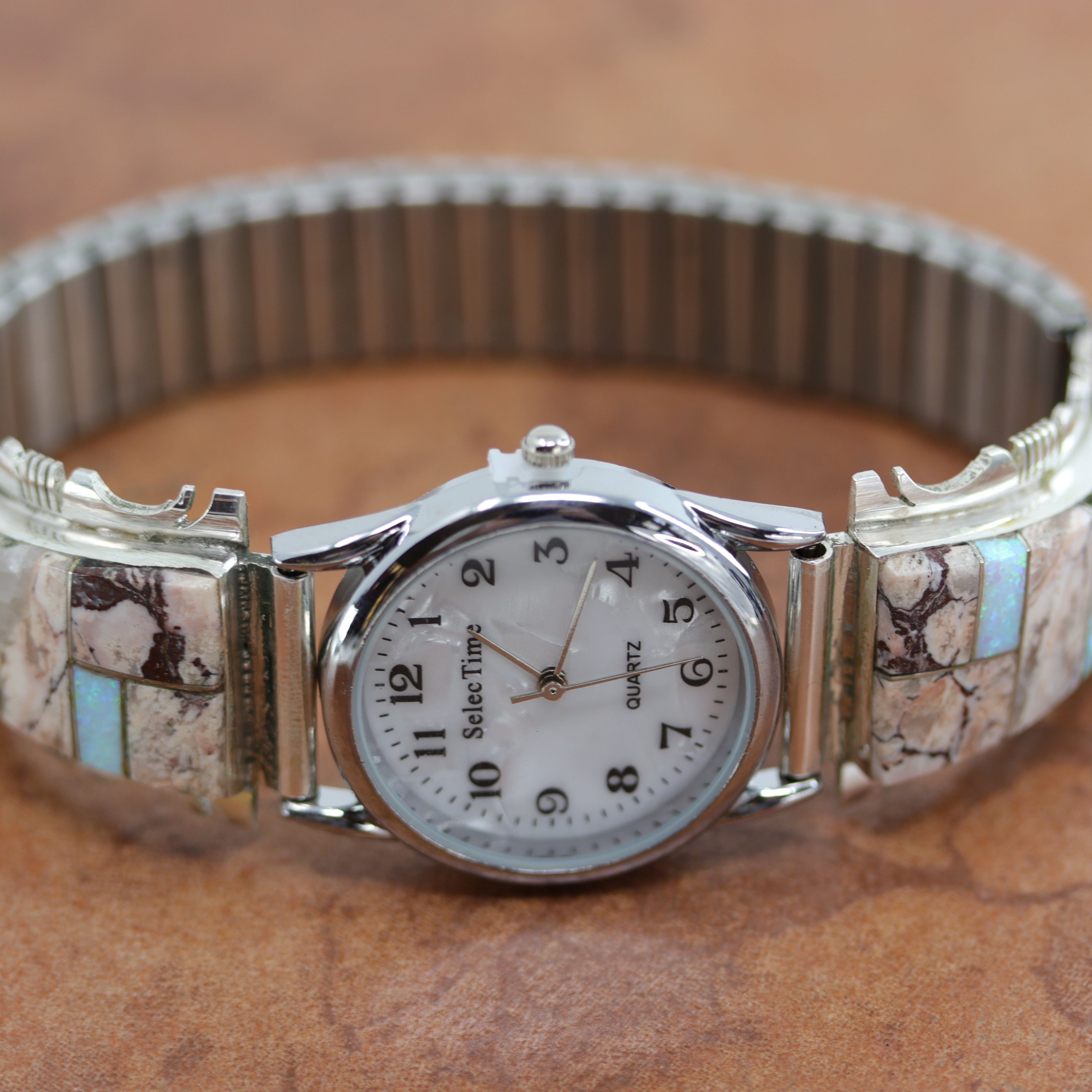 A beautiful collection of men's and women's Navajo, Zuni, Native American, and Southwest watches. Our designs feature watch bracelets, stretchband, leather, Kokopelli, Eagle, inlay, Sunface, cuff, and more. They have stones like turquoise, coral, mother of pearl, onyx, lapis, multi-stone inlay, malachite, and mother of pearl.