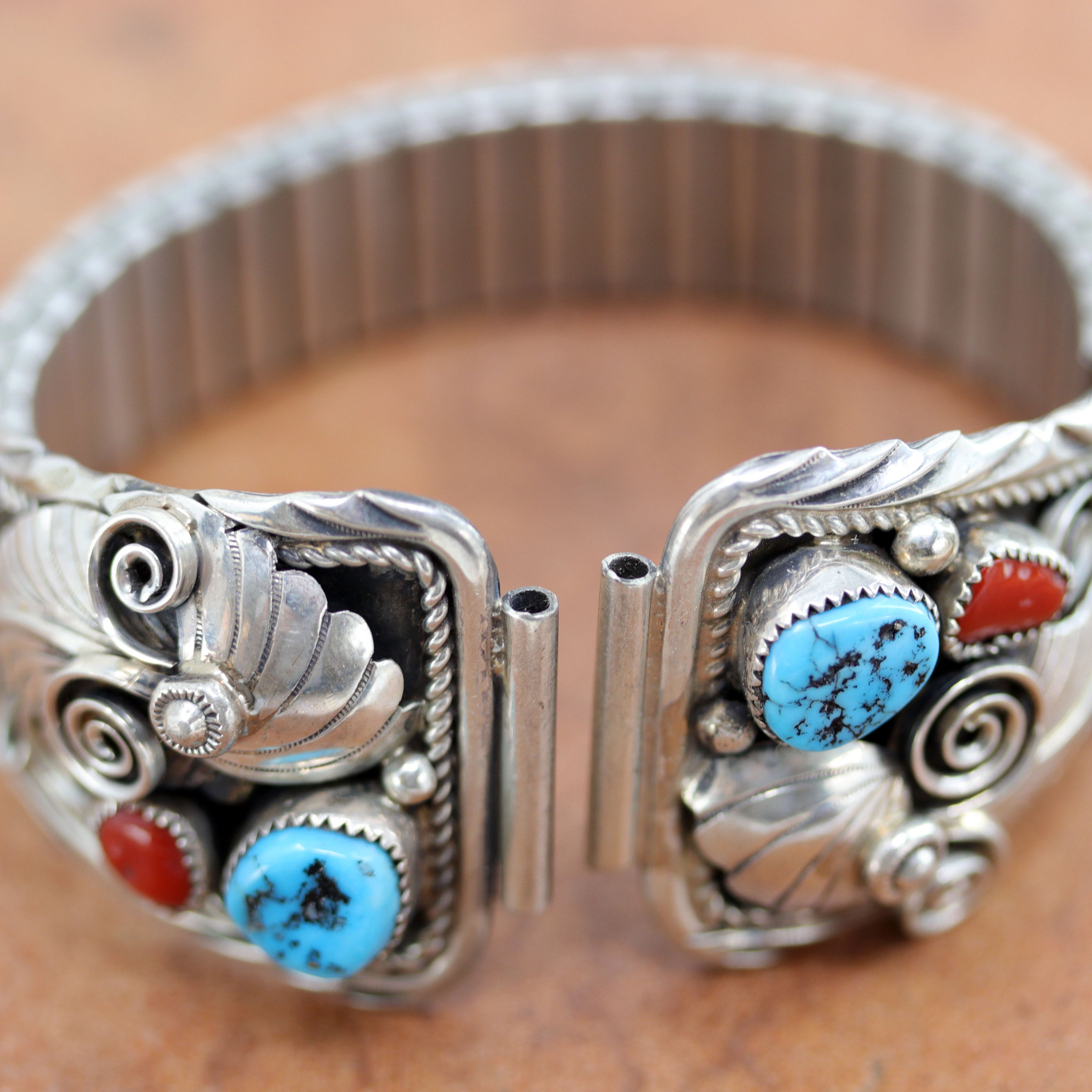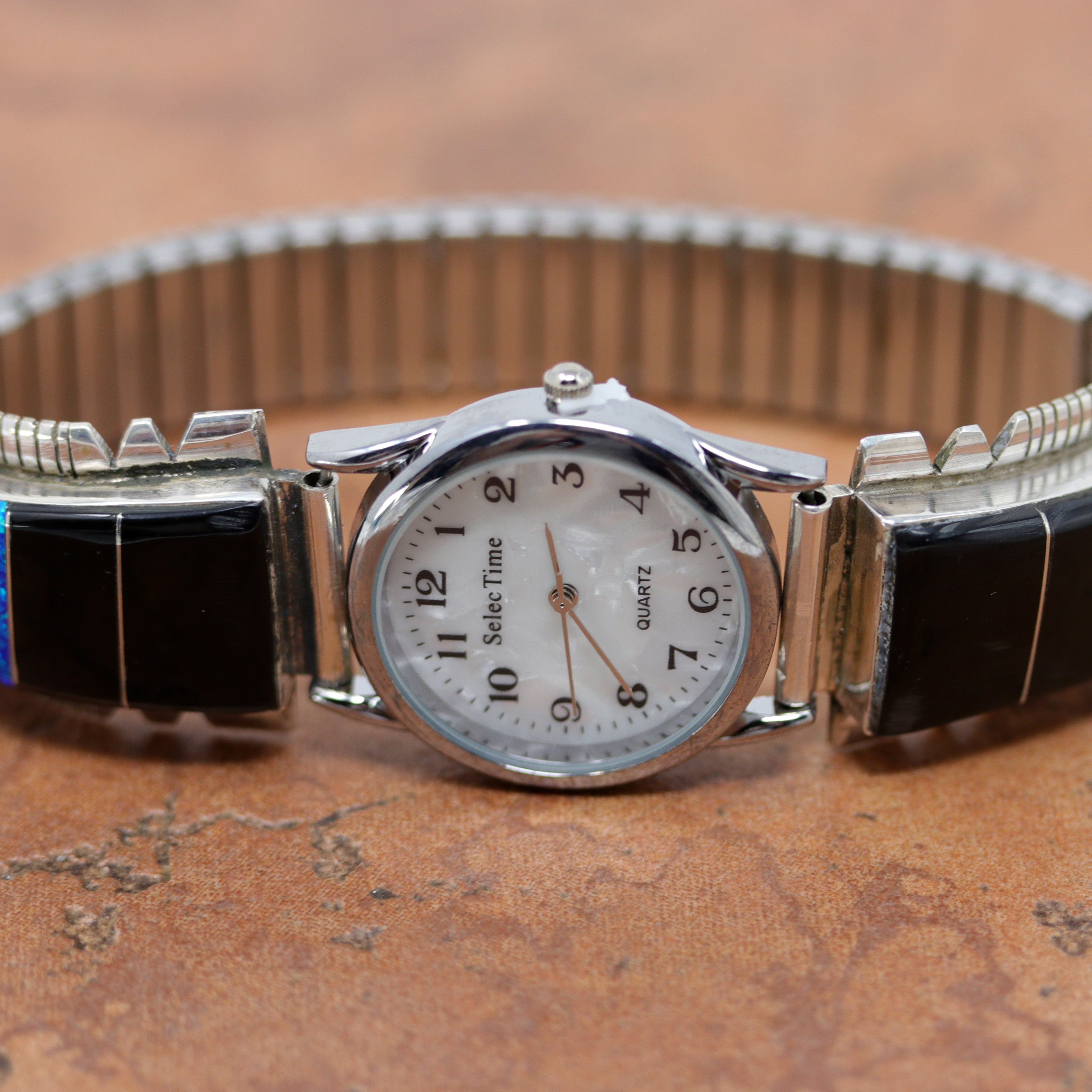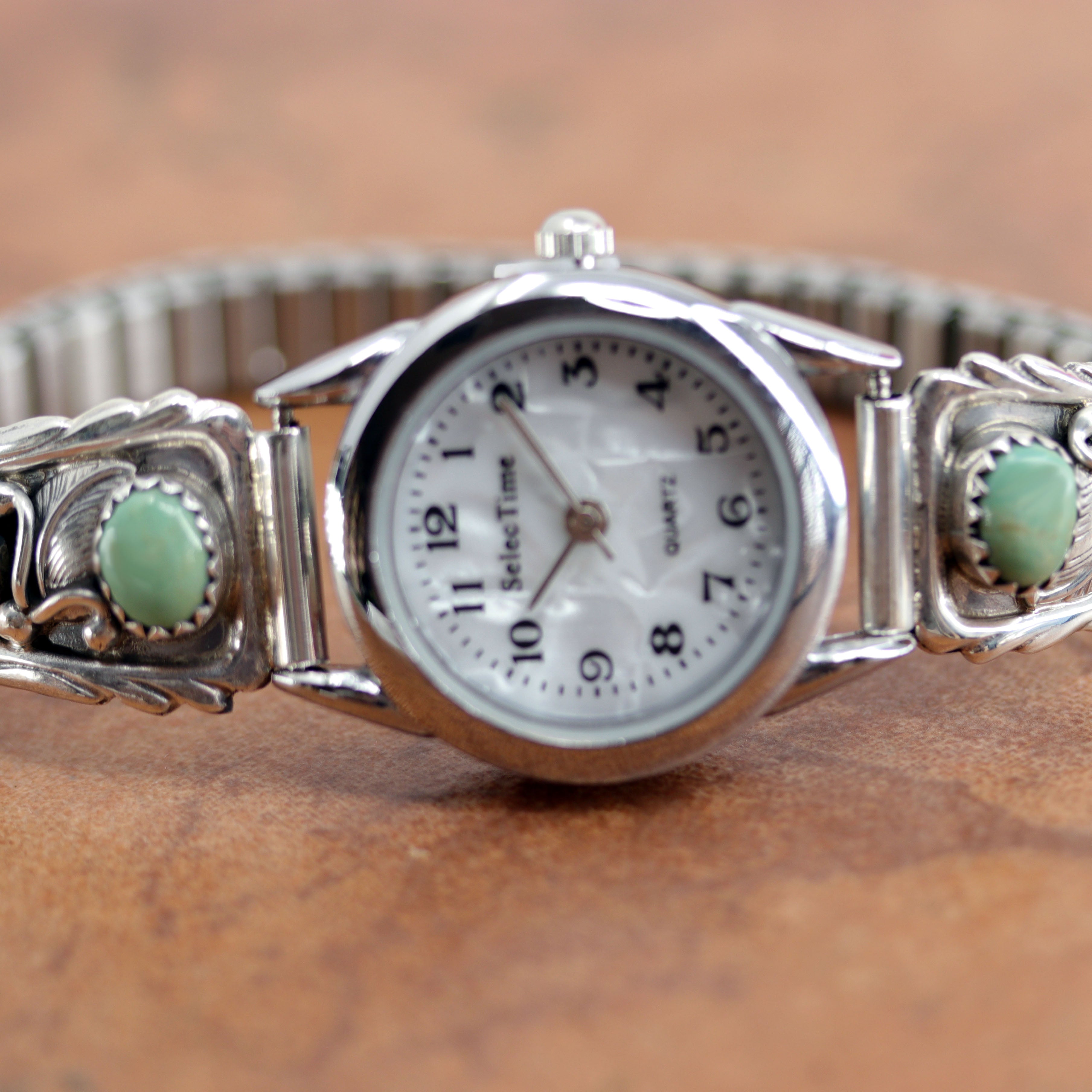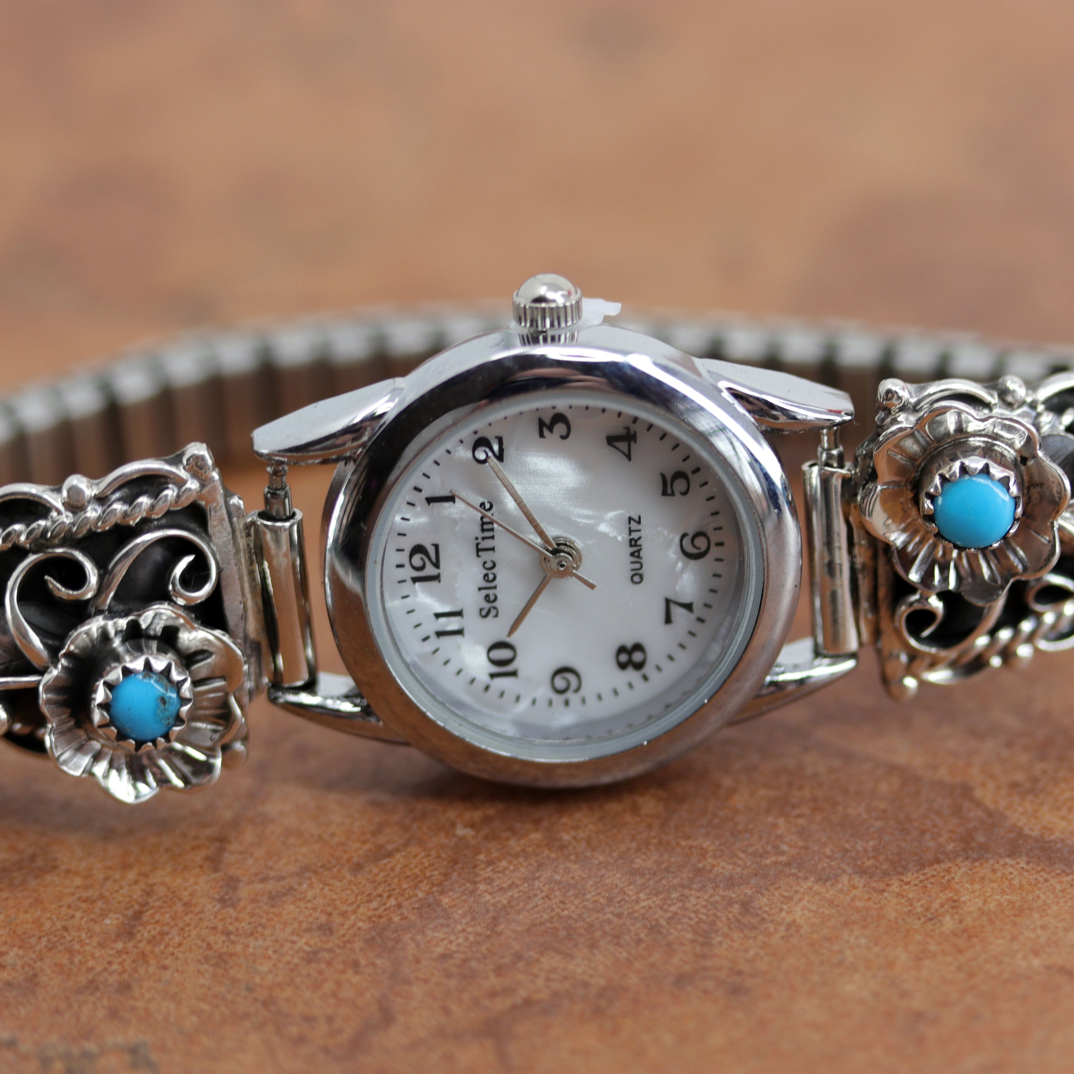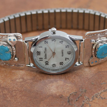 A beautiful collection of men's and women's Navajo, Zuni, Native American, and Southwest watches. Our designs feature watch bracelets, stretchband, leather, Kokopelli, Eagle, inlay, Sunface, cuff, and more. They have stones like turquoise, coral, mother of pearl, onyx, lapis, multi-stone inlay, malachite, and mother of pearl.