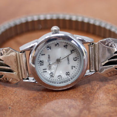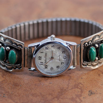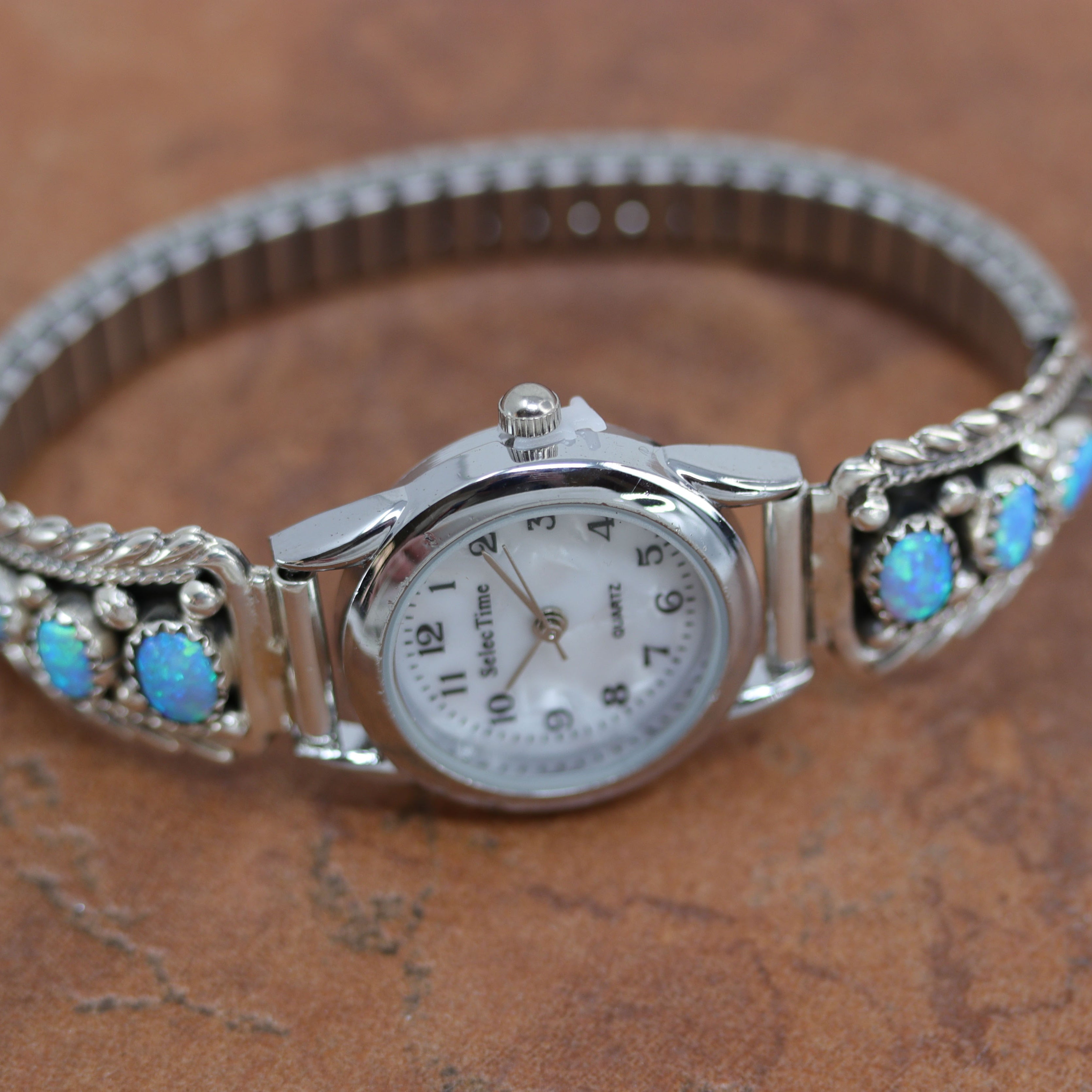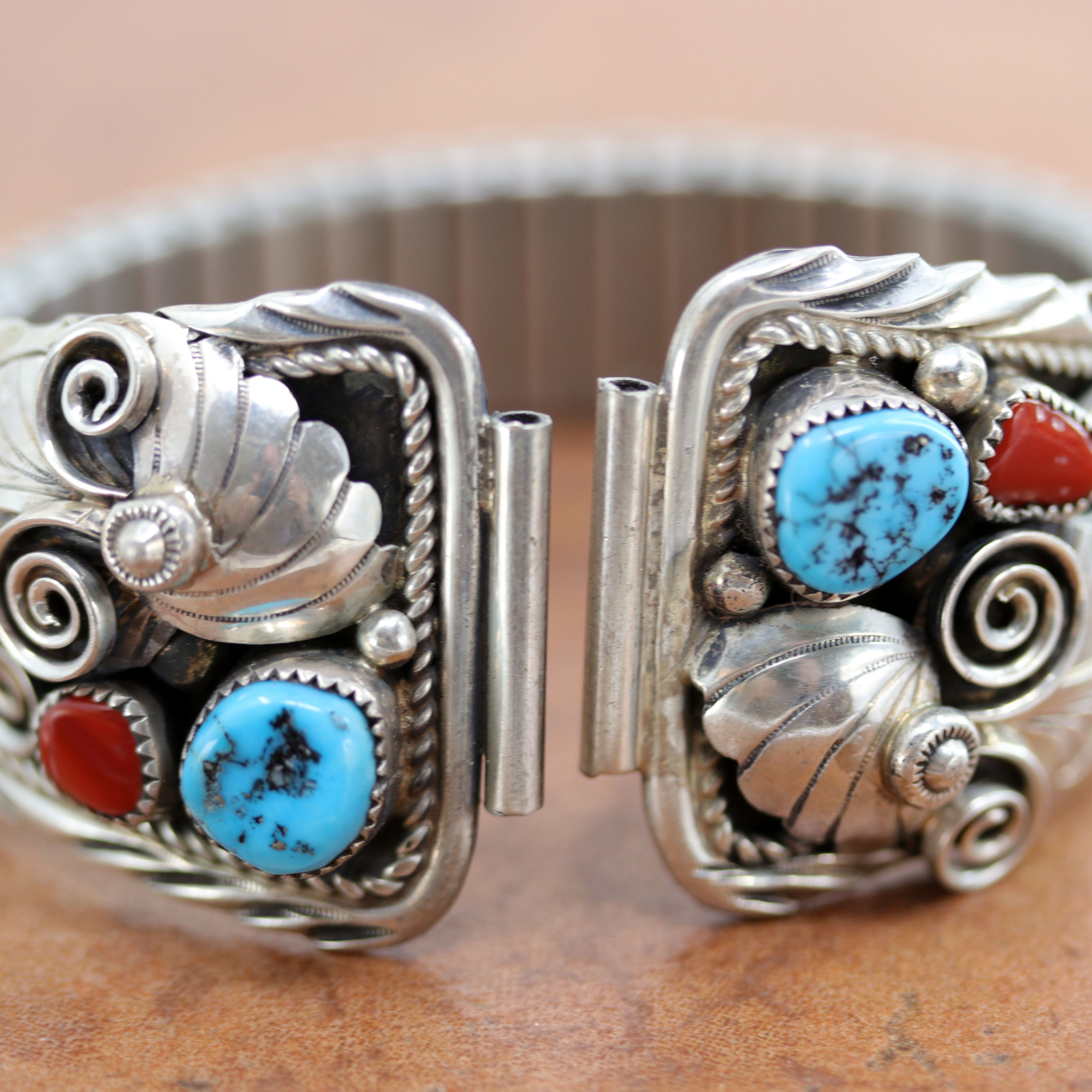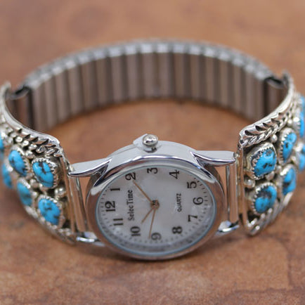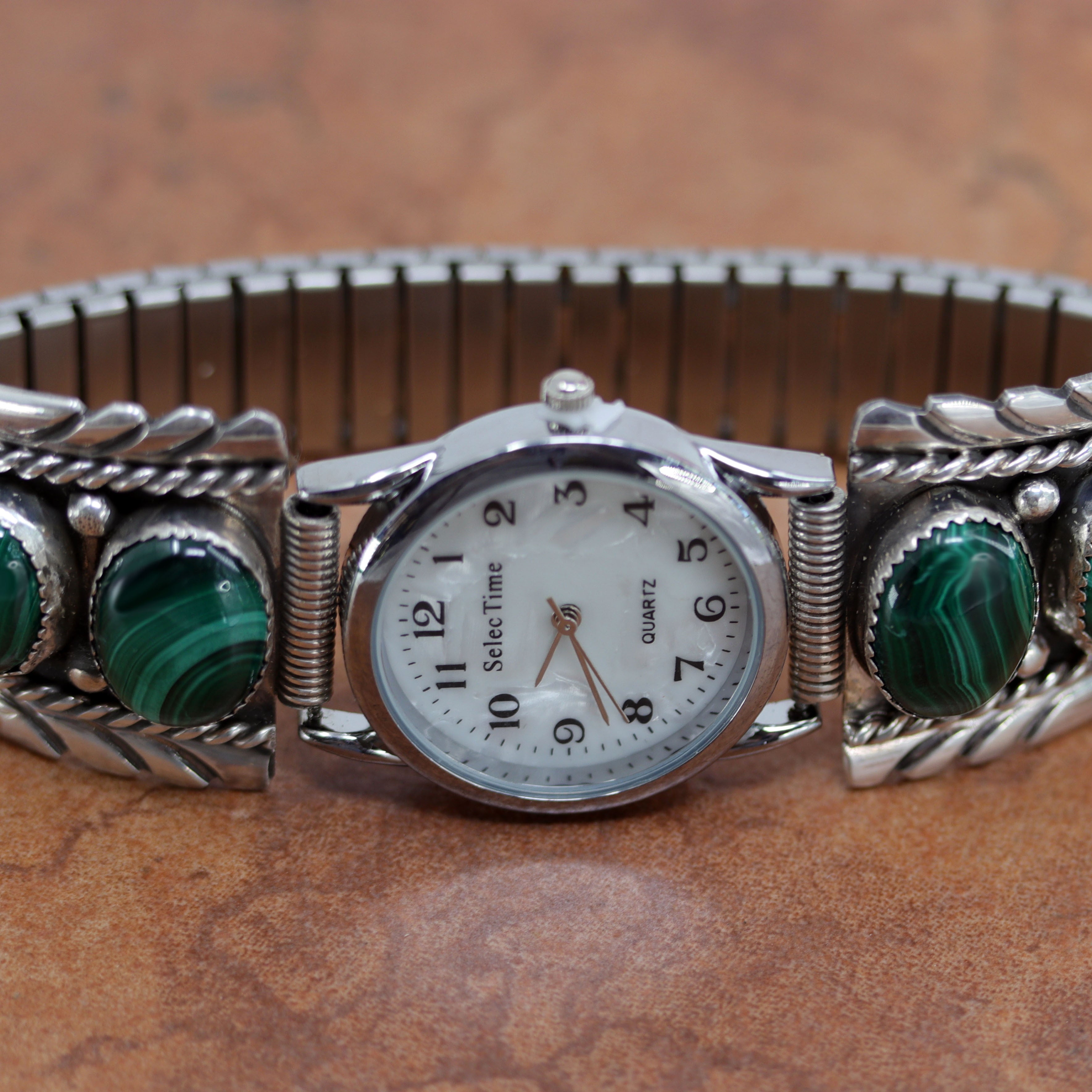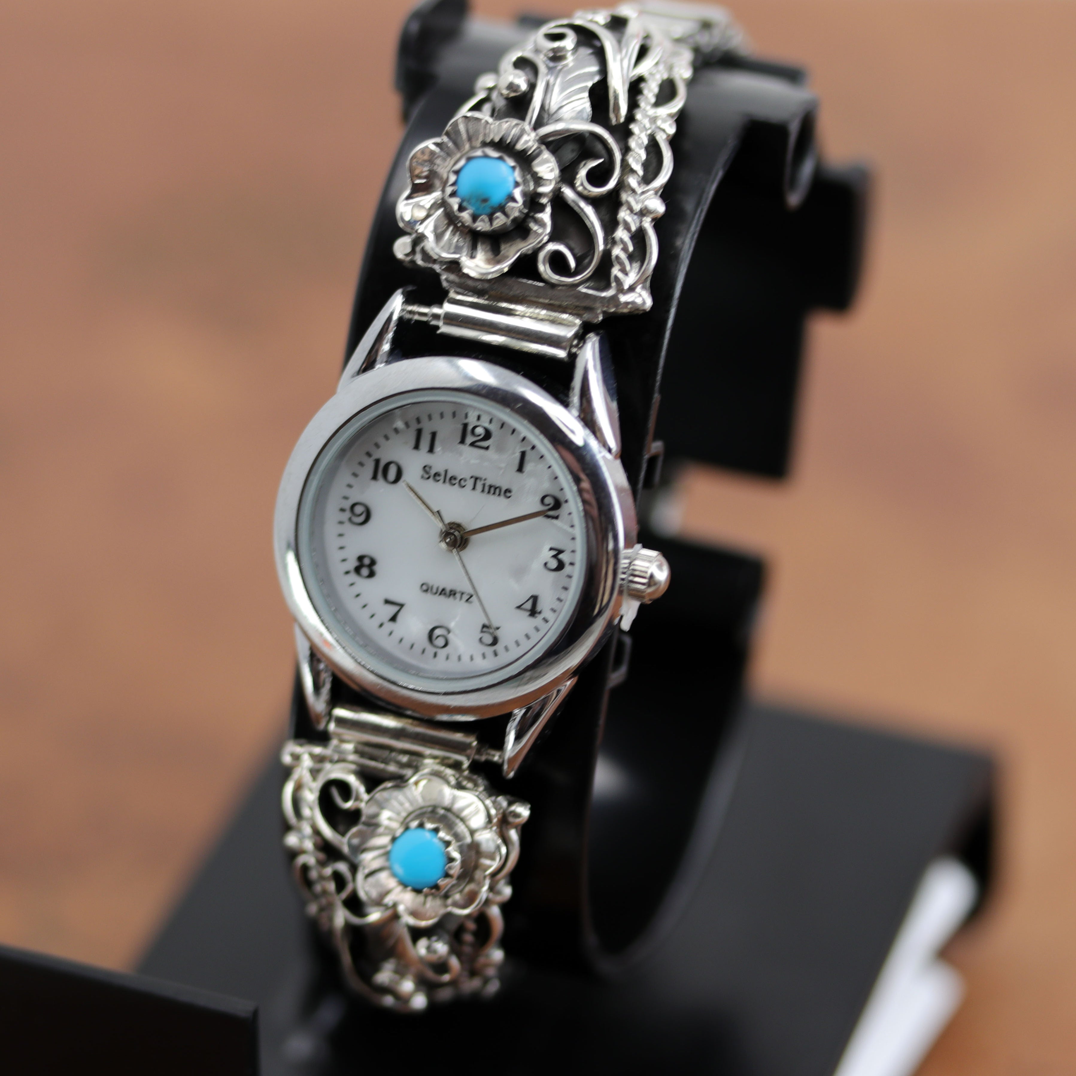 A beautiful collection of men's and women's Navajo, Zuni, Native American, and Southwest watches. Our designs feature watch bracelets, stretchband, leather, Kokopelli, Eagle, inlay, Sunface, cuff, and more. They have stones like turquoise, coral, mother of pearl, onyx, lapis, multi-stone inlay, malachite, and mother of pearl.