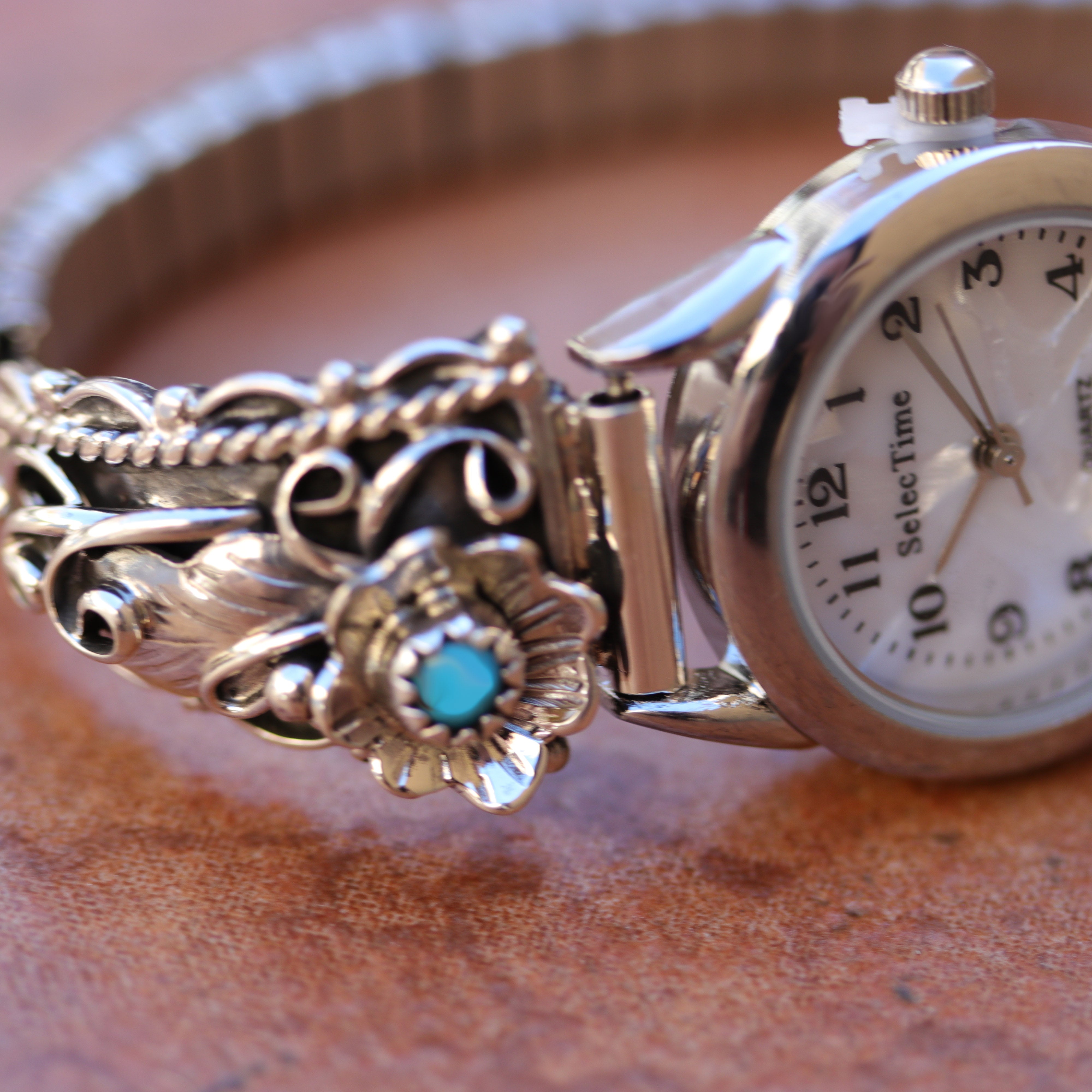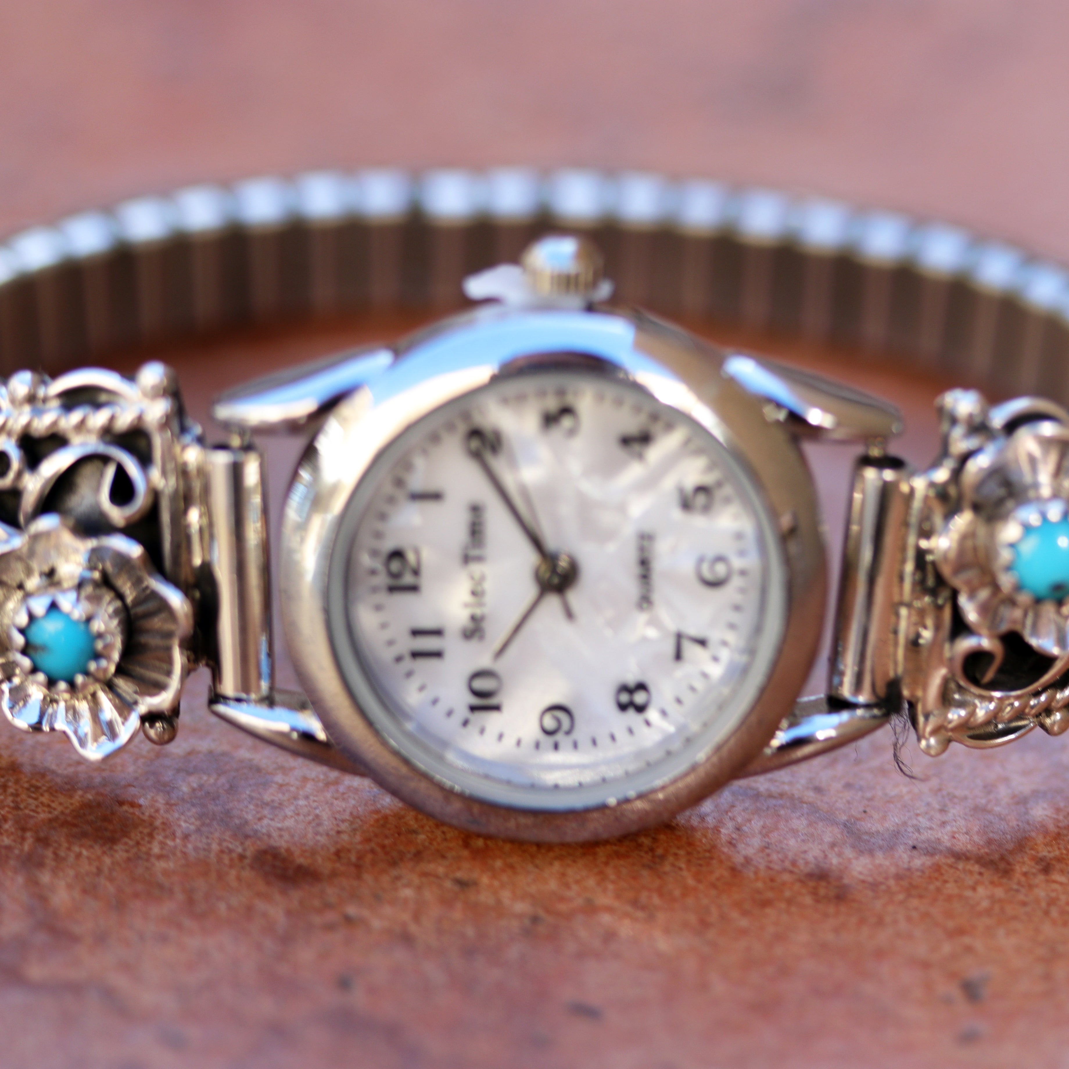 A beautiful collection of men's and women's Navajo, Zuni, Native American, and Southwest watches. Our designs feature watch bracelets, stretchband, leather, Kokopelli, Eagle, inlay, Sunface, cuff, and more. They have stones like turquoise, coral, mother of pearl, onyx, lapis, multi-stone inlay, malachite, and mother of pearl.