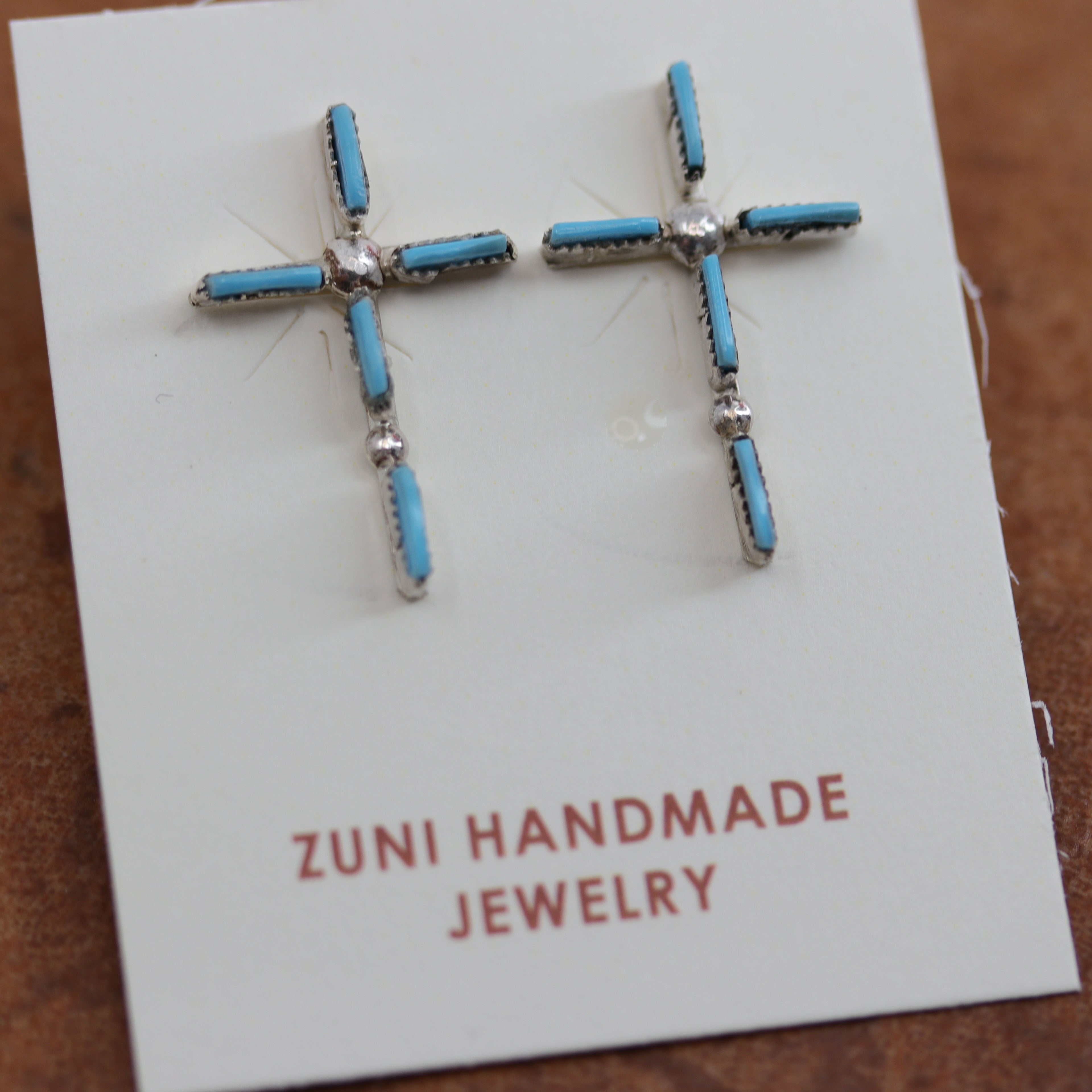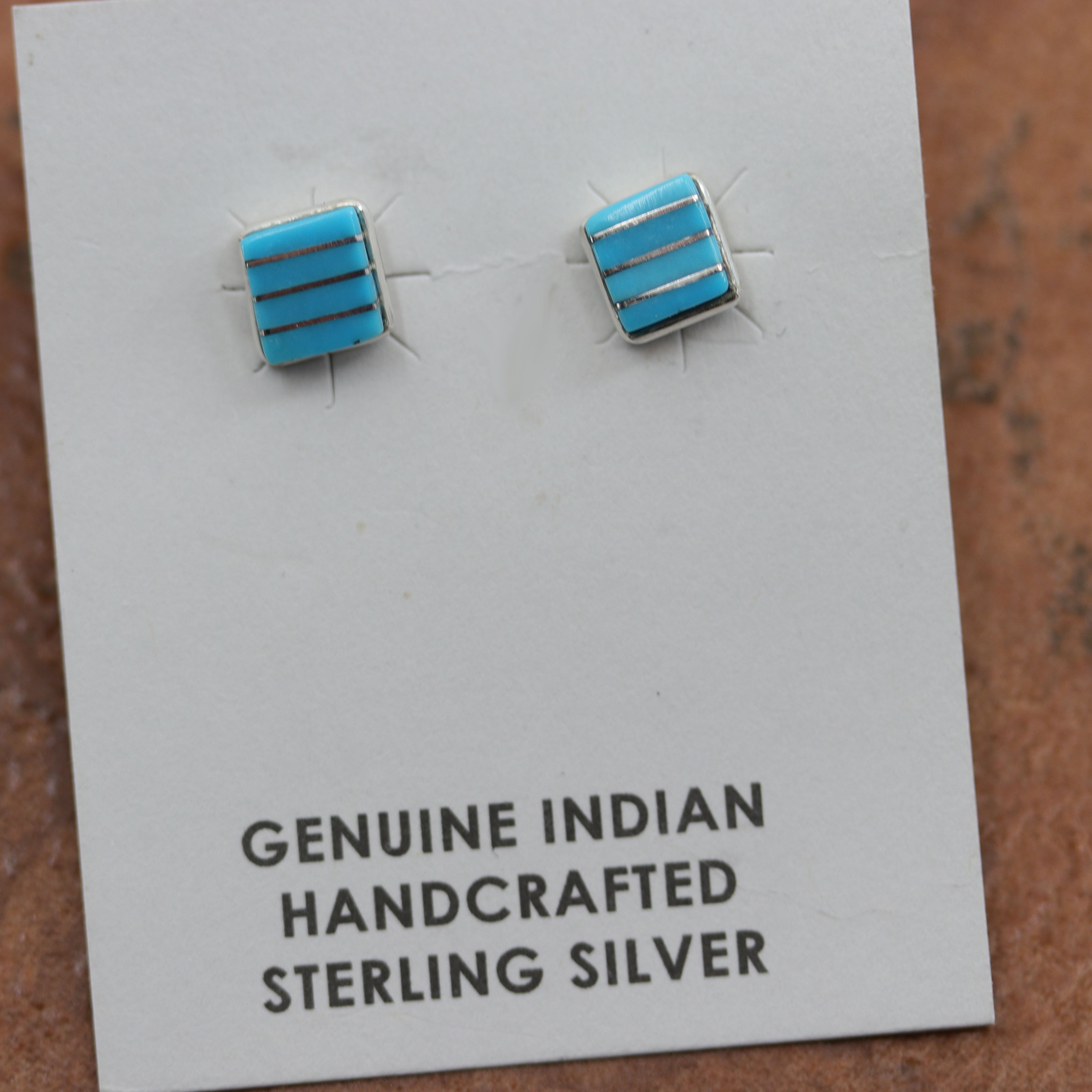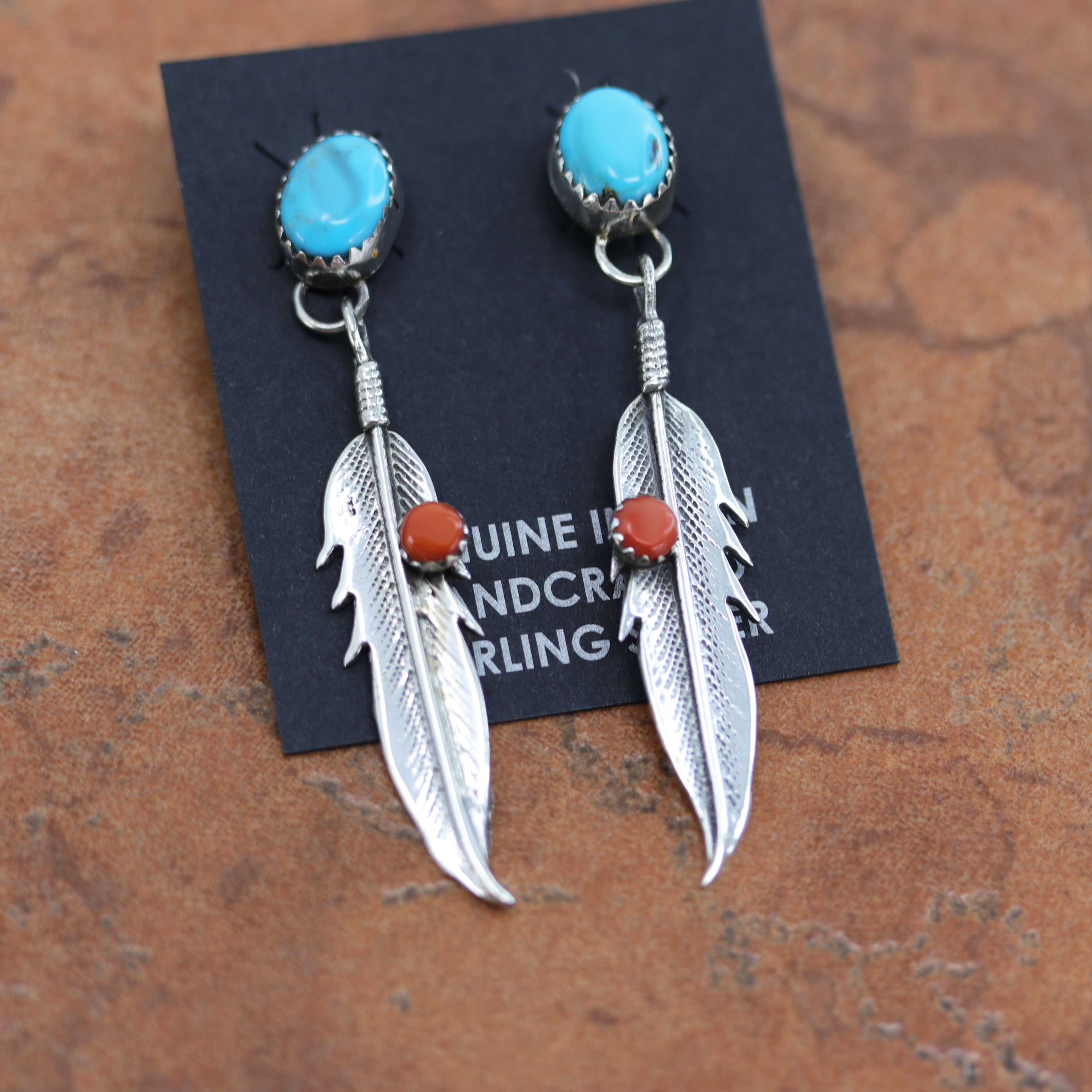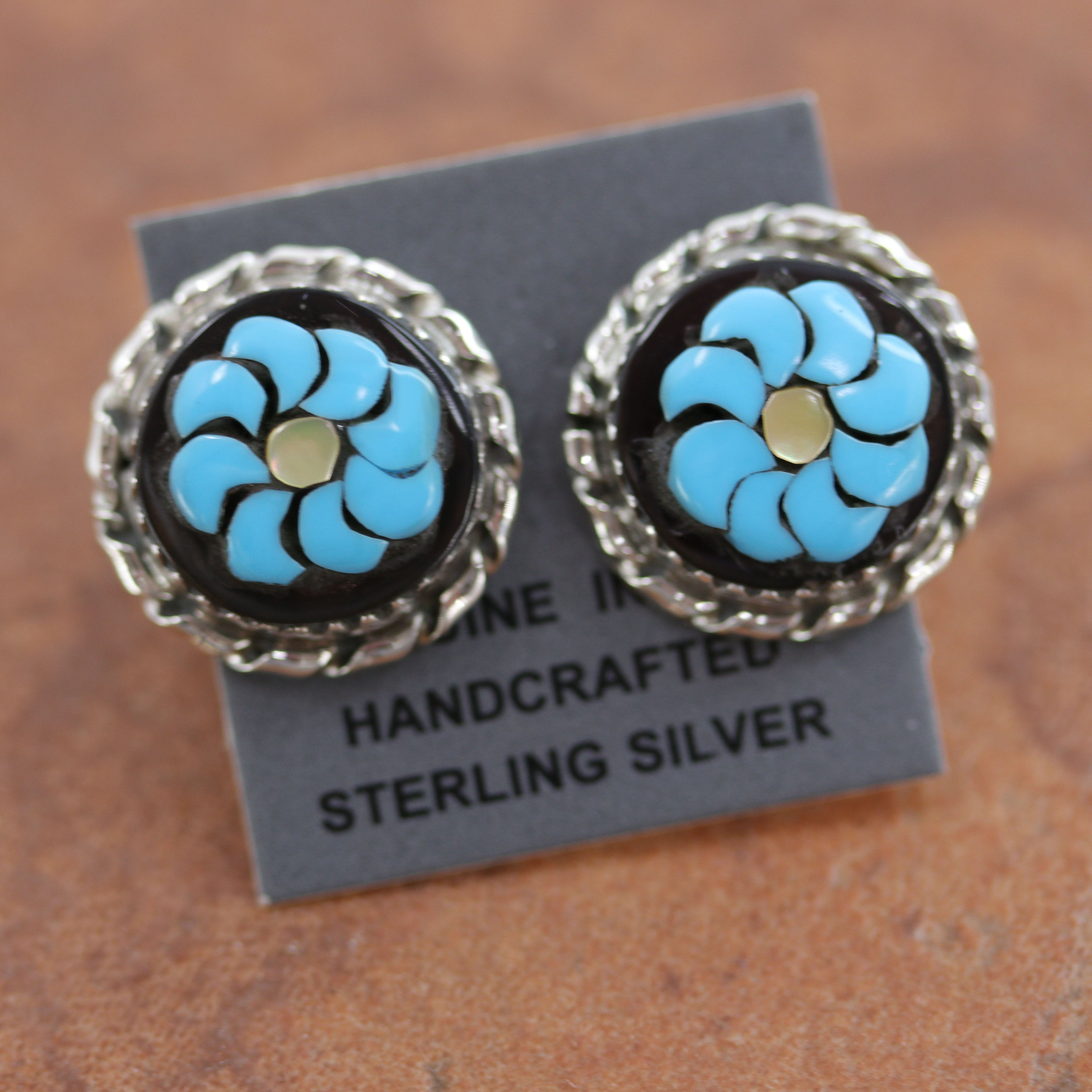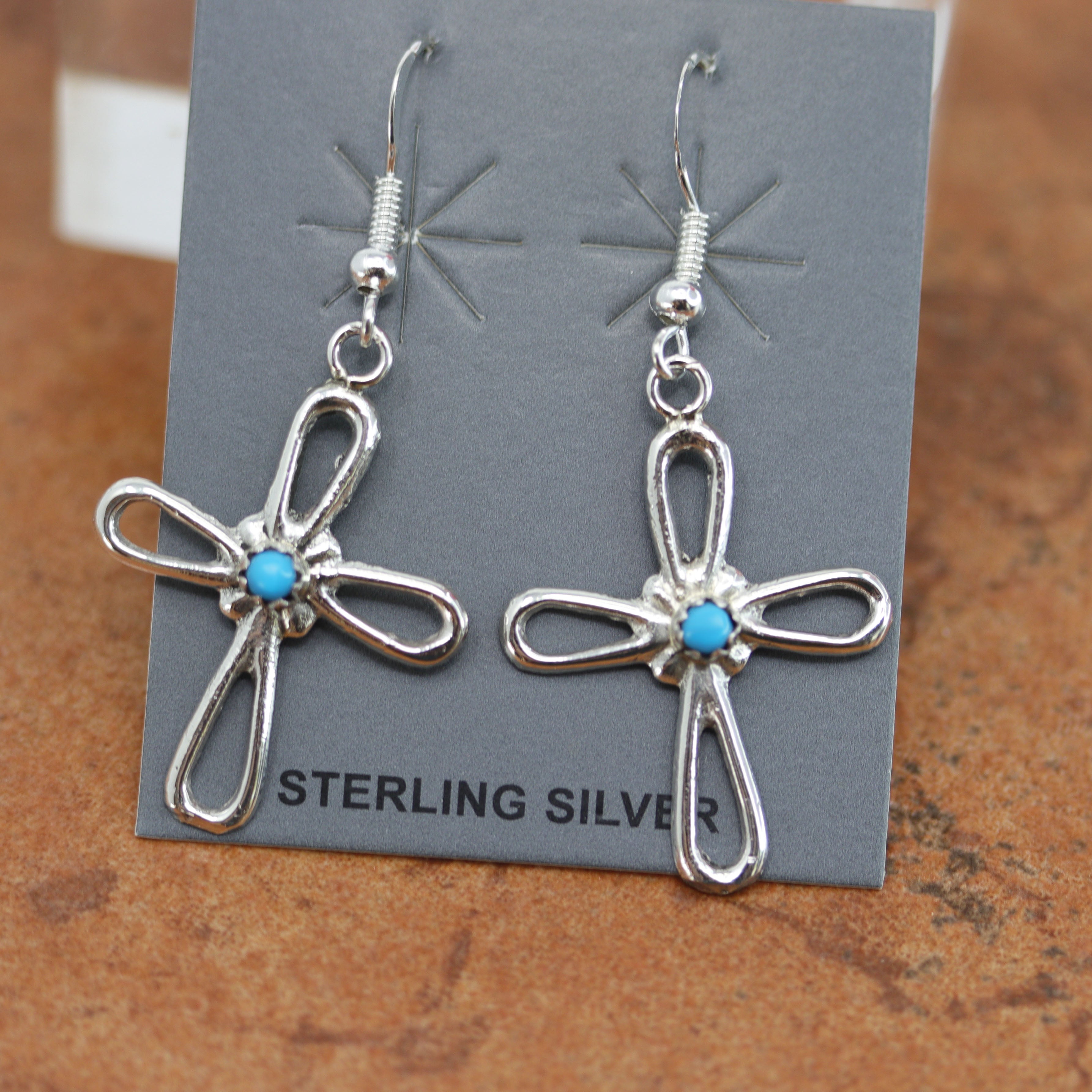 We proudly carry a large variety of sterling silver earrings. Our earrings showcase turquoise, coral, inlay, beadwork, onyx, lapis, spiny oyster, and other beautiful stones. We offer Navajo, Zuni, Native American, and Southwest designs. Our pieces feature post, hoop, Zia, bear paw, dangle, Spider, Petroglyph, nugget, cross, storyteller, Zuni inlay, and many more styles.