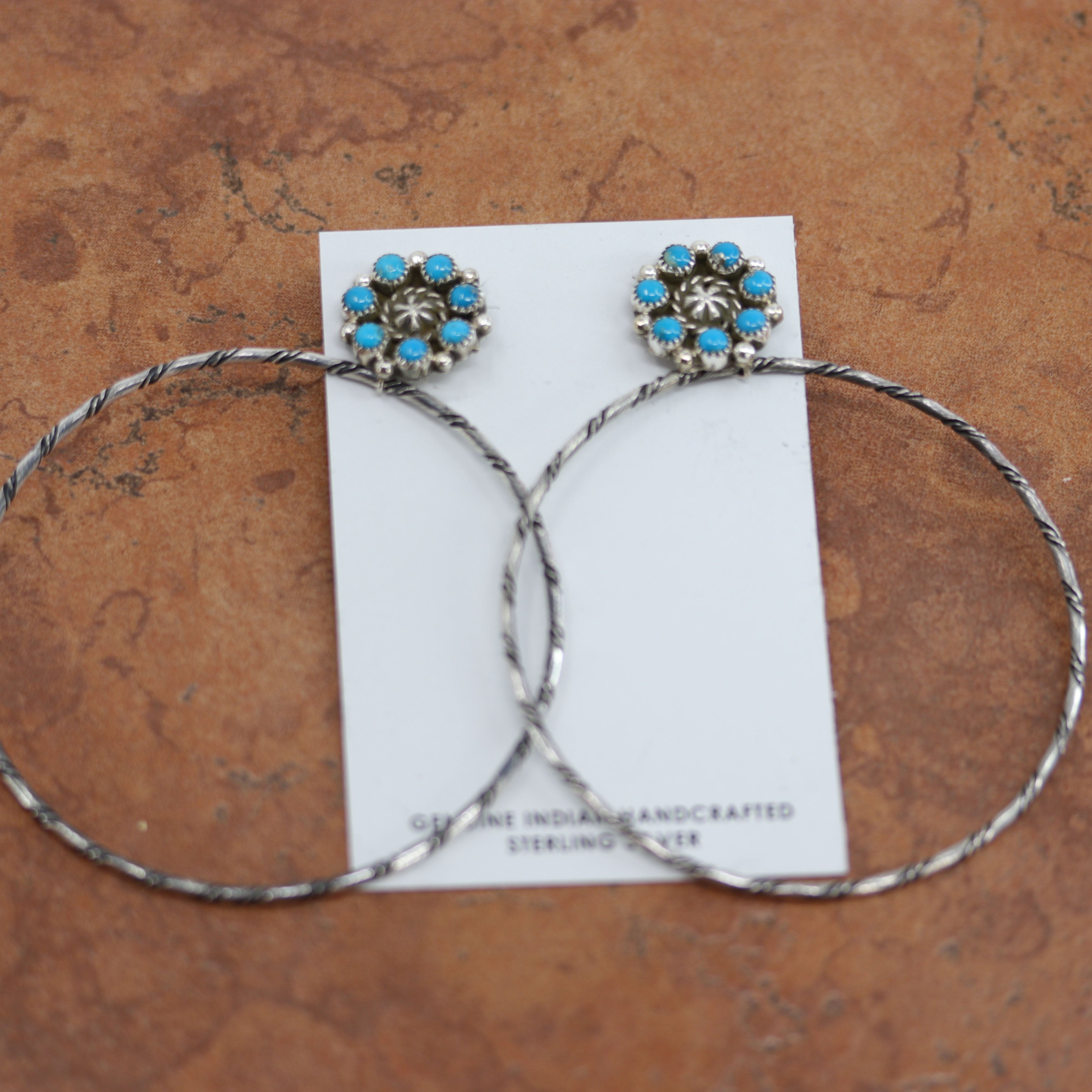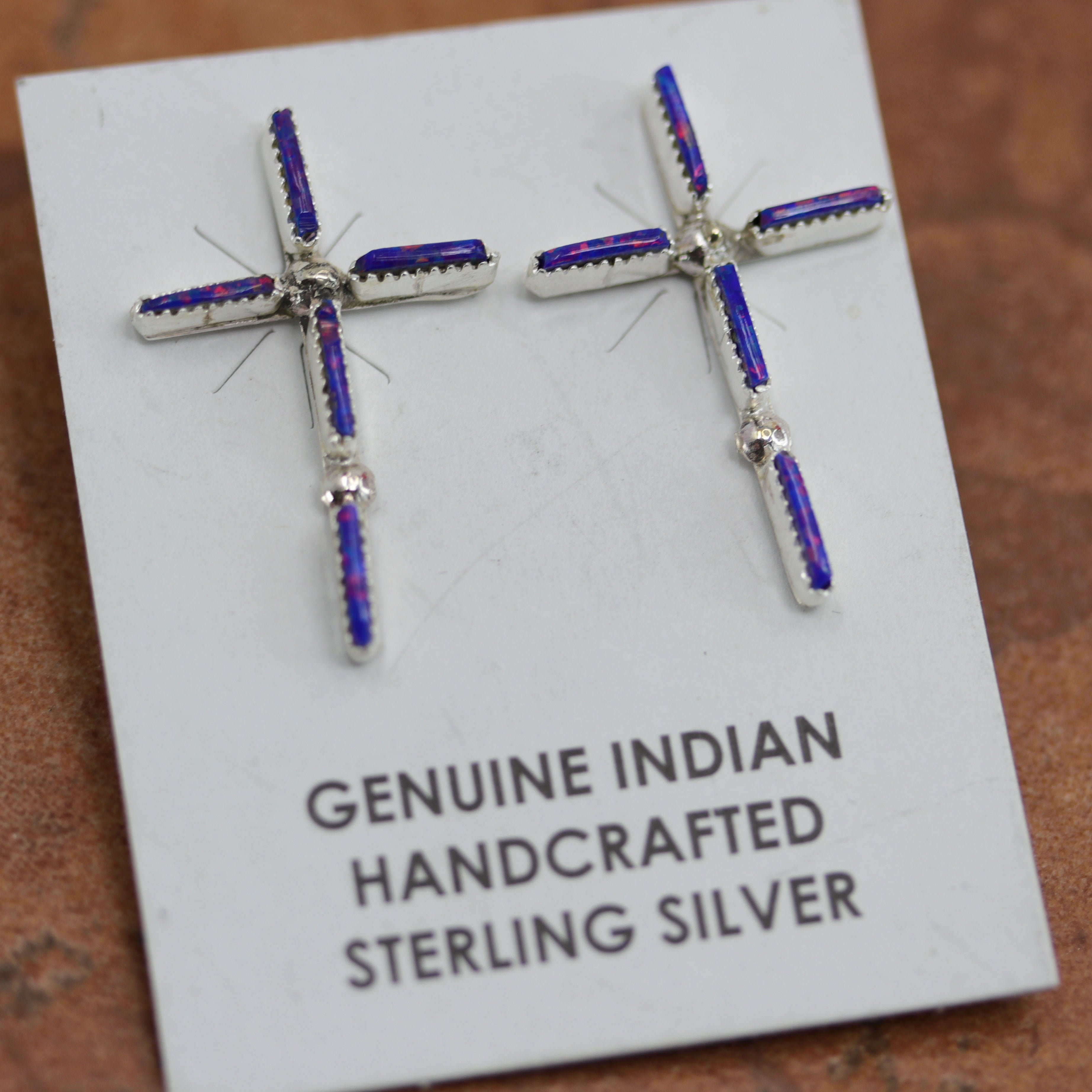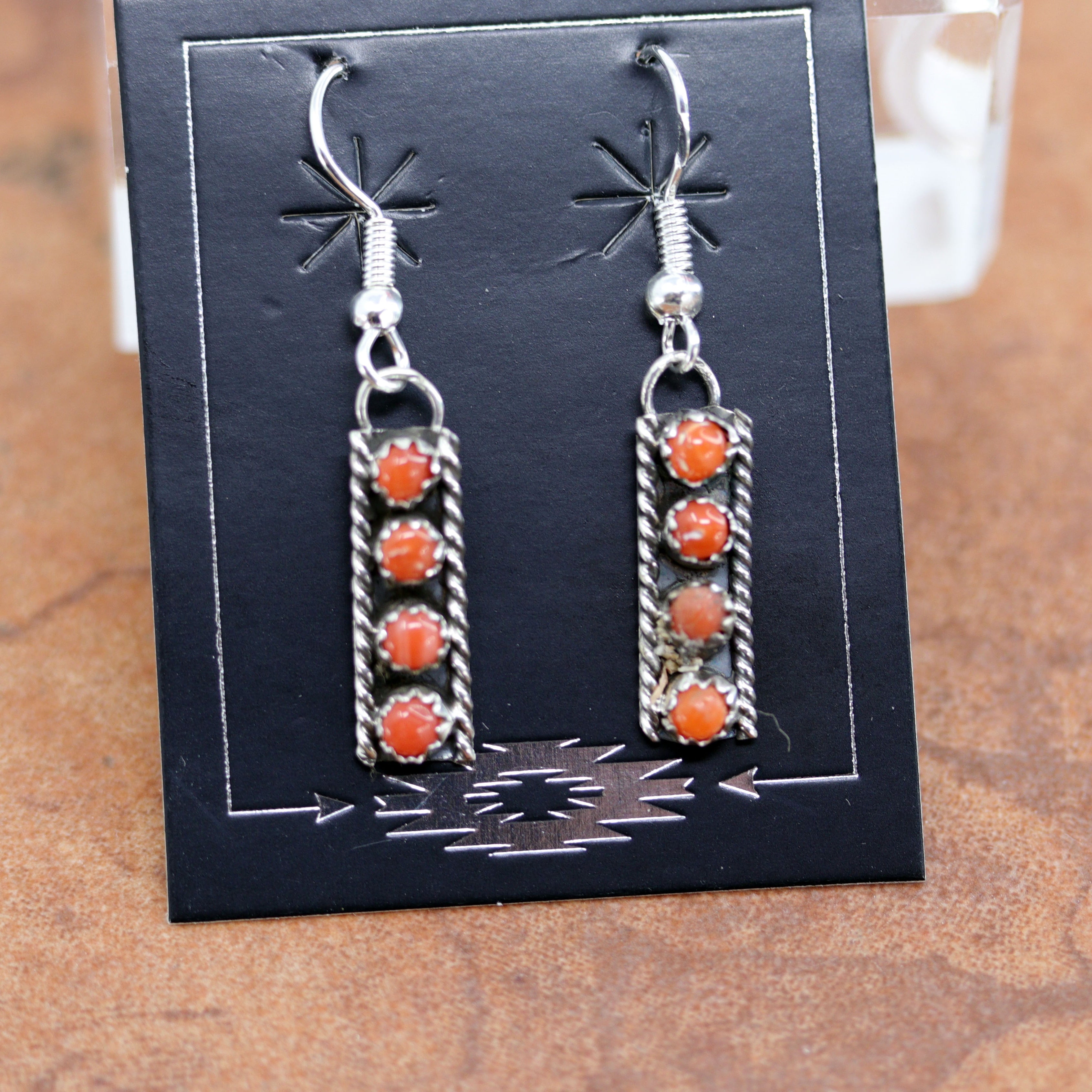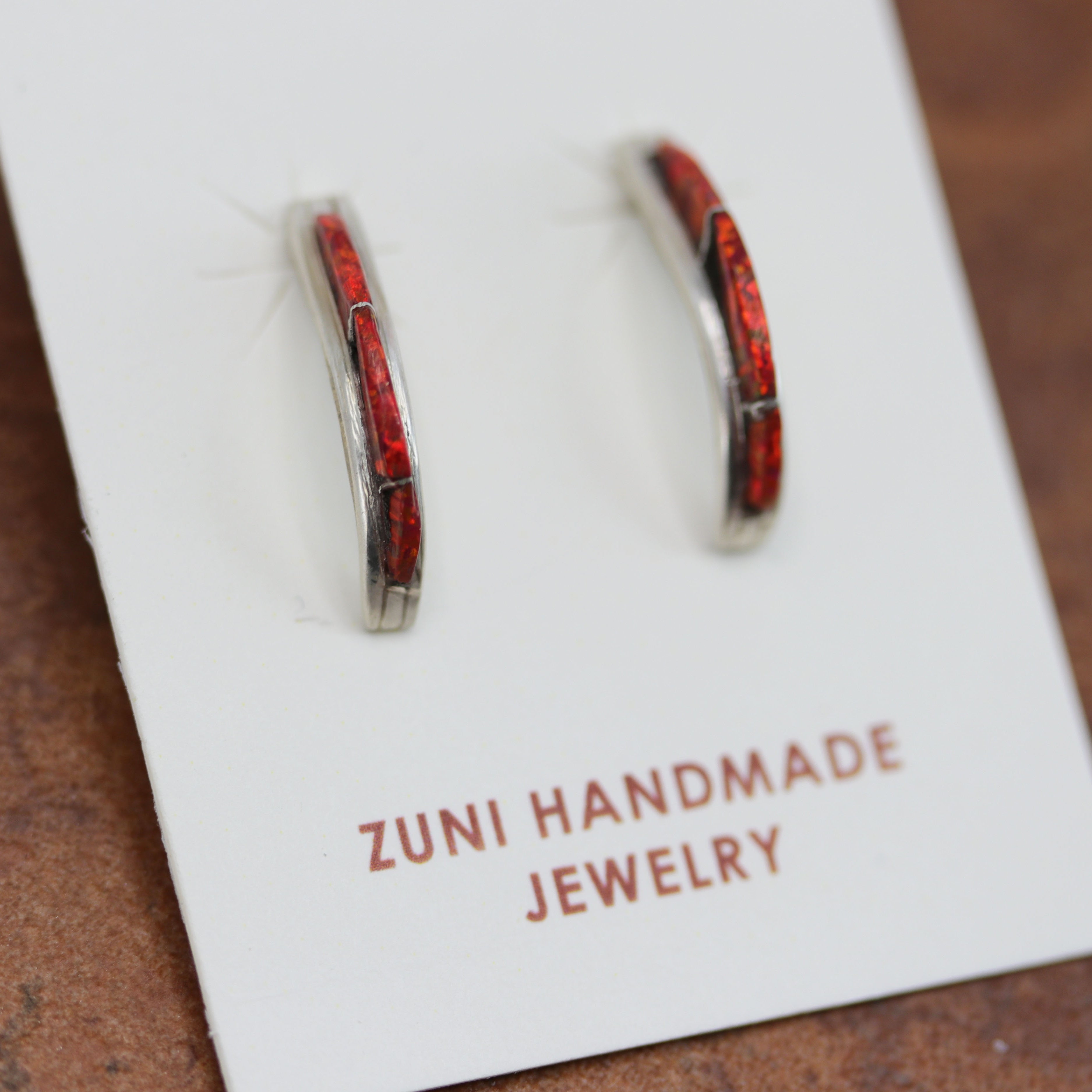 We proudly carry a large variety of sterling silver earrings. Our earrings showcase turquoise, coral, inlay, beadwork, onyx, lapis, spiny oyster, and other beautiful stones. We offer Navajo, Zuni, Native American, and Southwest designs. Our pieces feature post, hoop, Zia, bear paw, dangle, Spider, Petroglyph, nugget, cross, storyteller, Zuni inlay, and many more styles.
