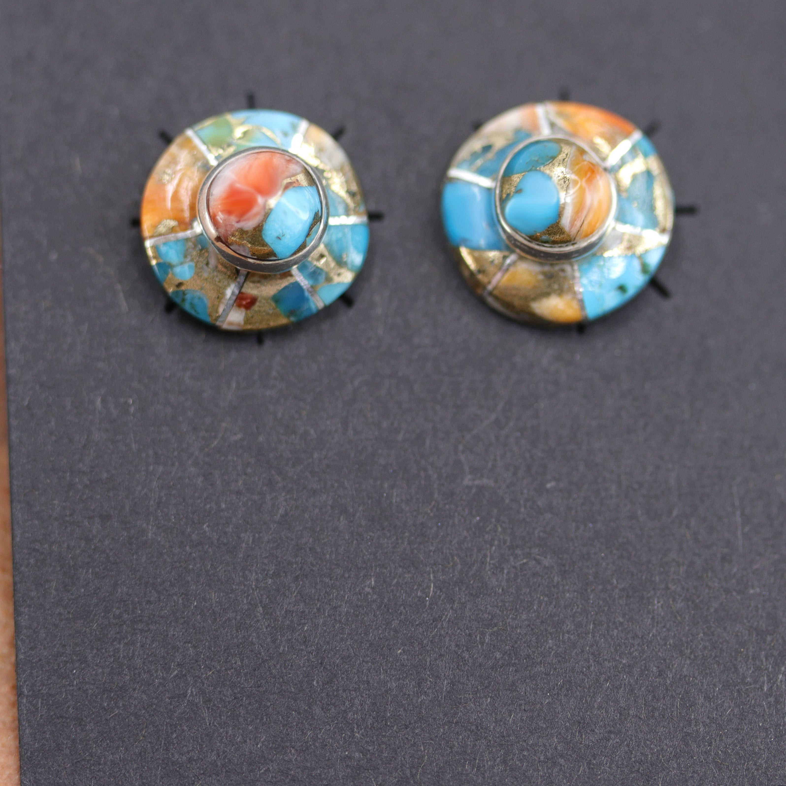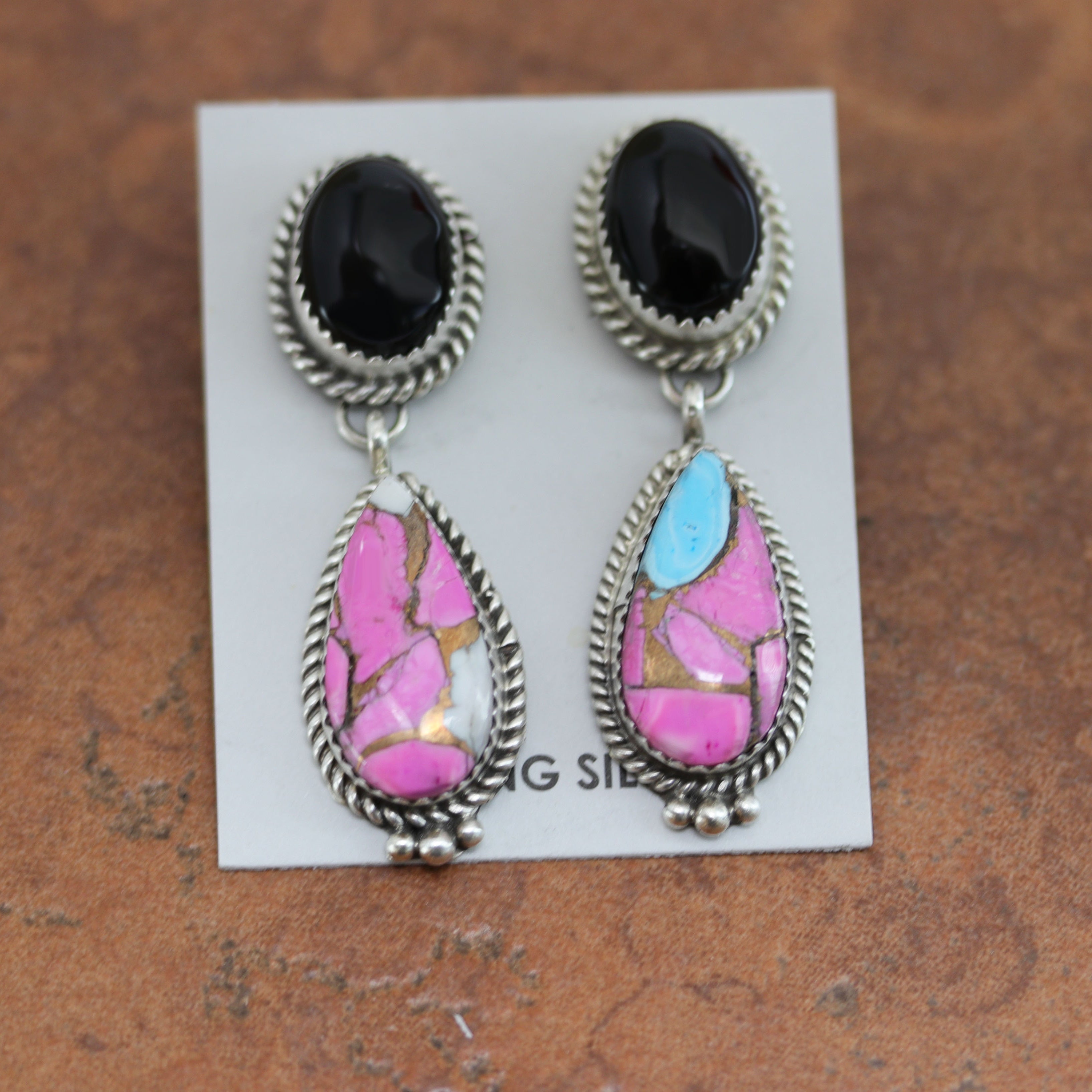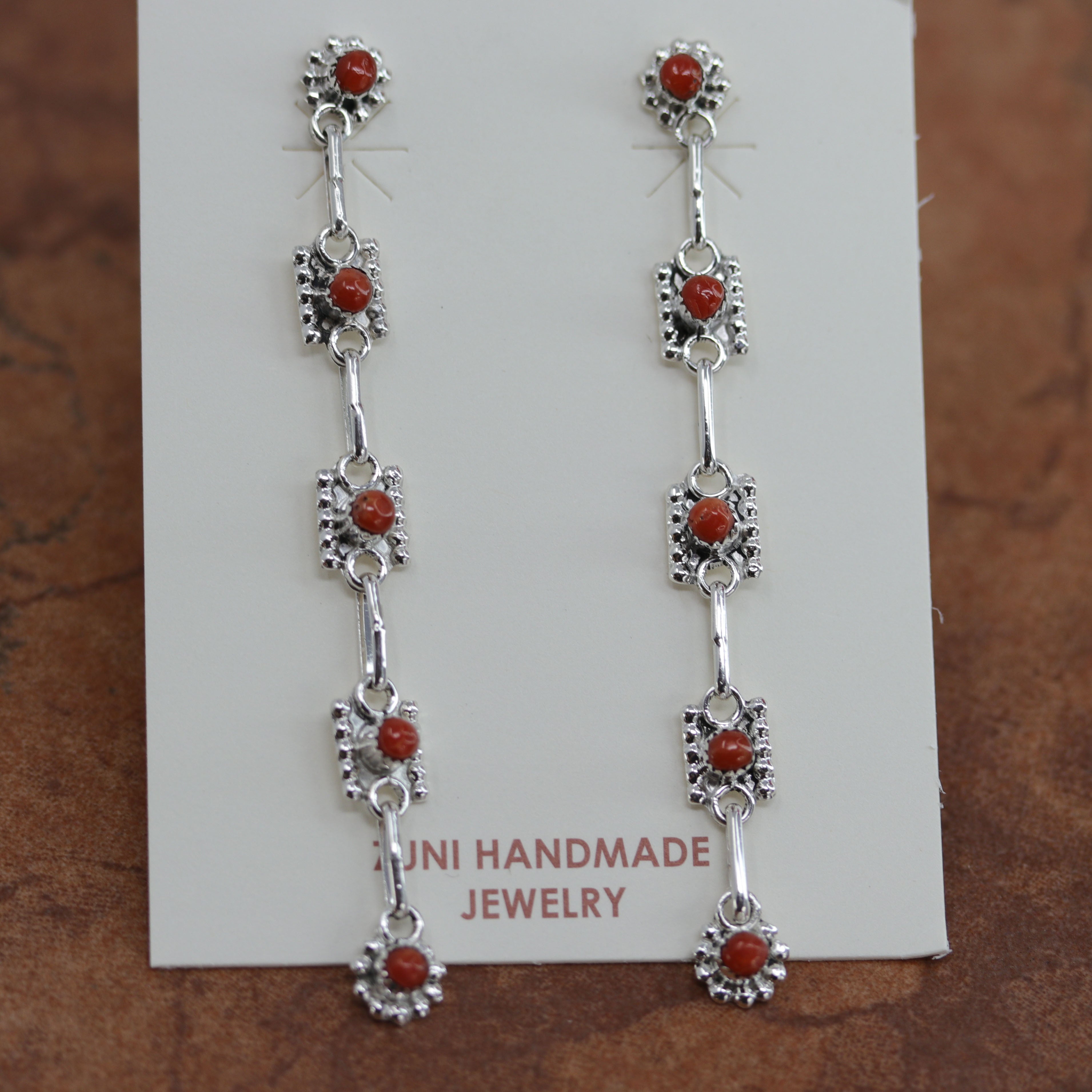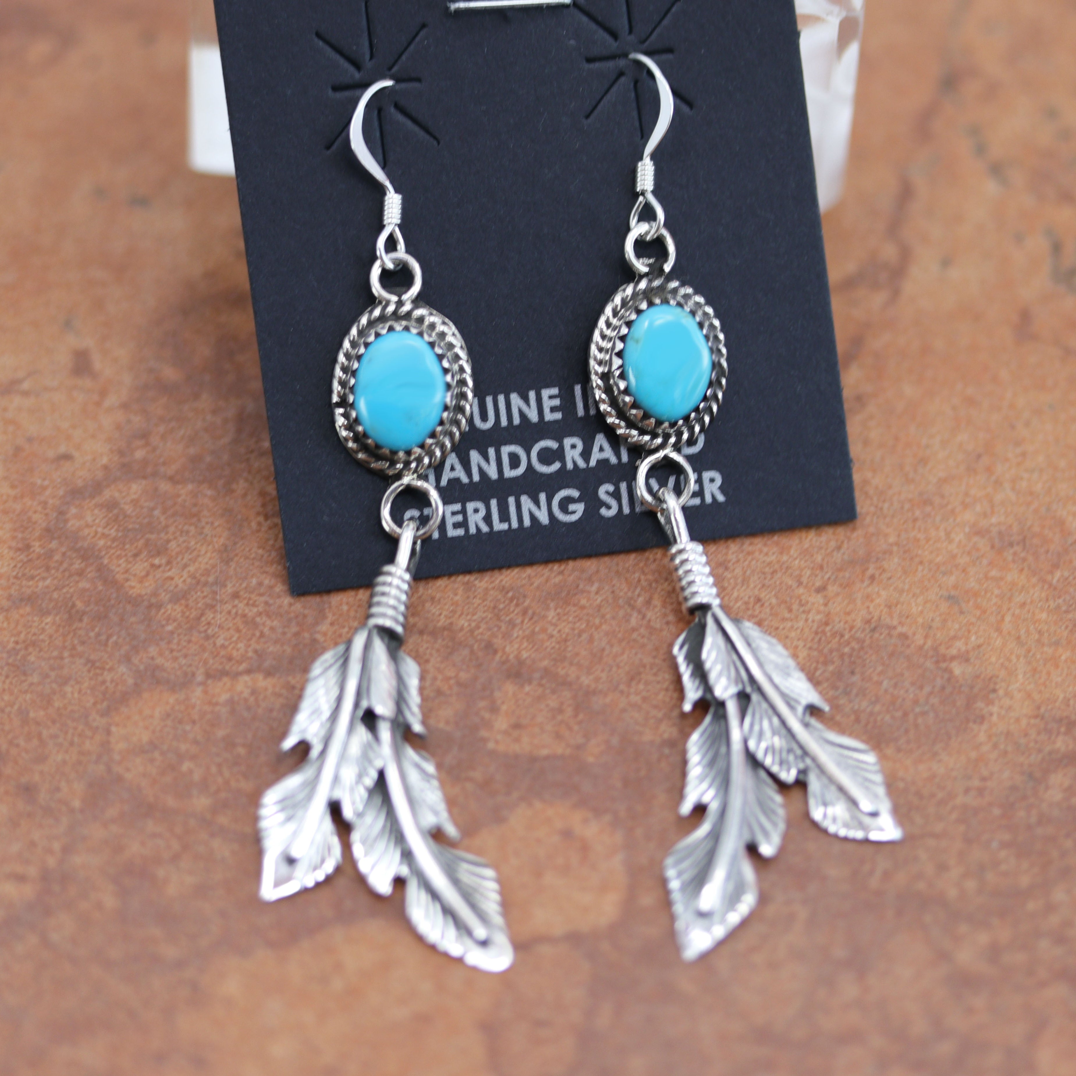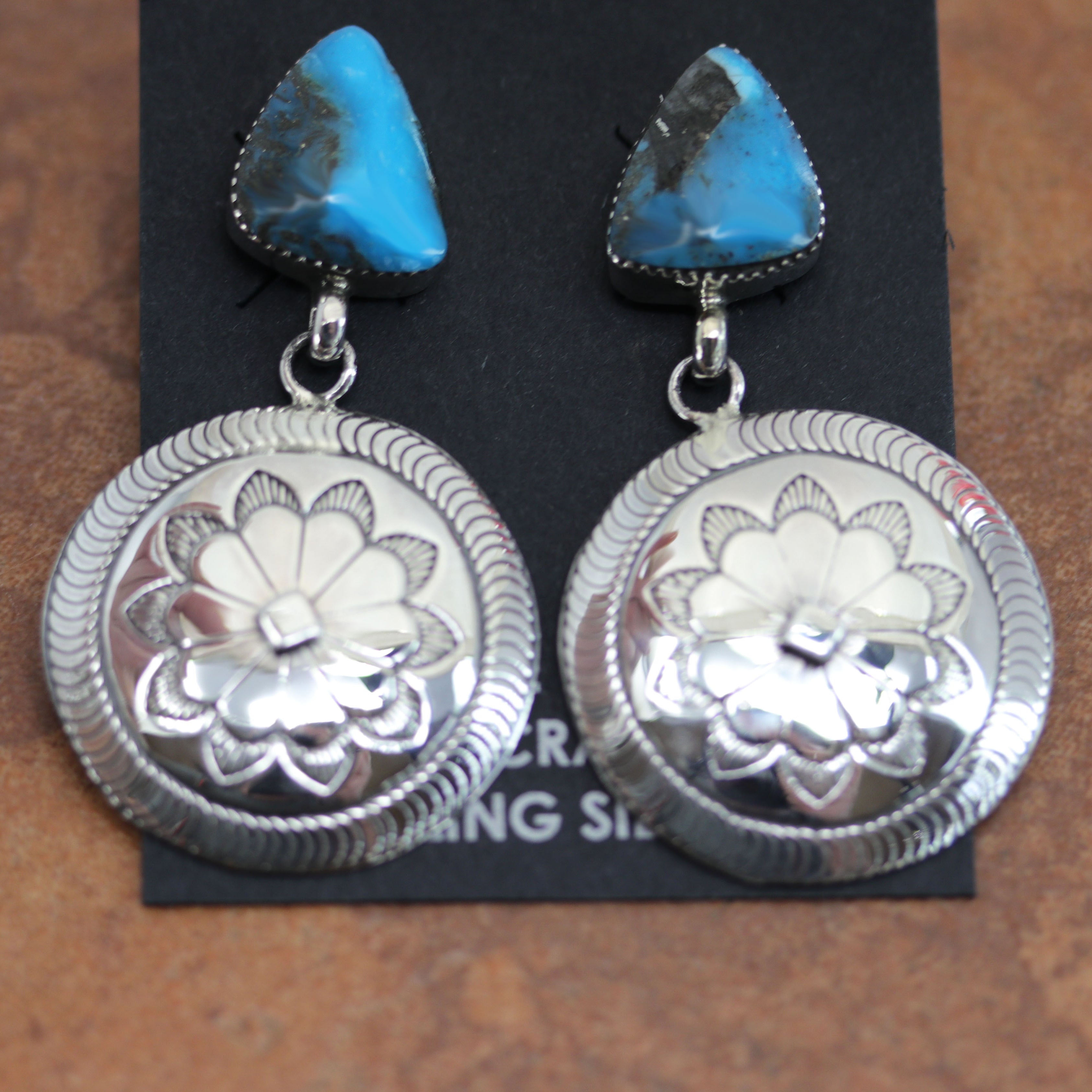 We proudly carry a large variety of sterling silver earrings. Our earrings showcase turquoise, coral, inlay, beadwork, onyx, lapis, spiny oyster, and other beautiful stones. We offer Navajo, Zuni, Native American, and Southwest designs. Our pieces feature post, hoop, Zia, bear paw, dangle, Spider, Petroglyph, nugget, cross, storyteller, Zuni inlay, and many more styles.