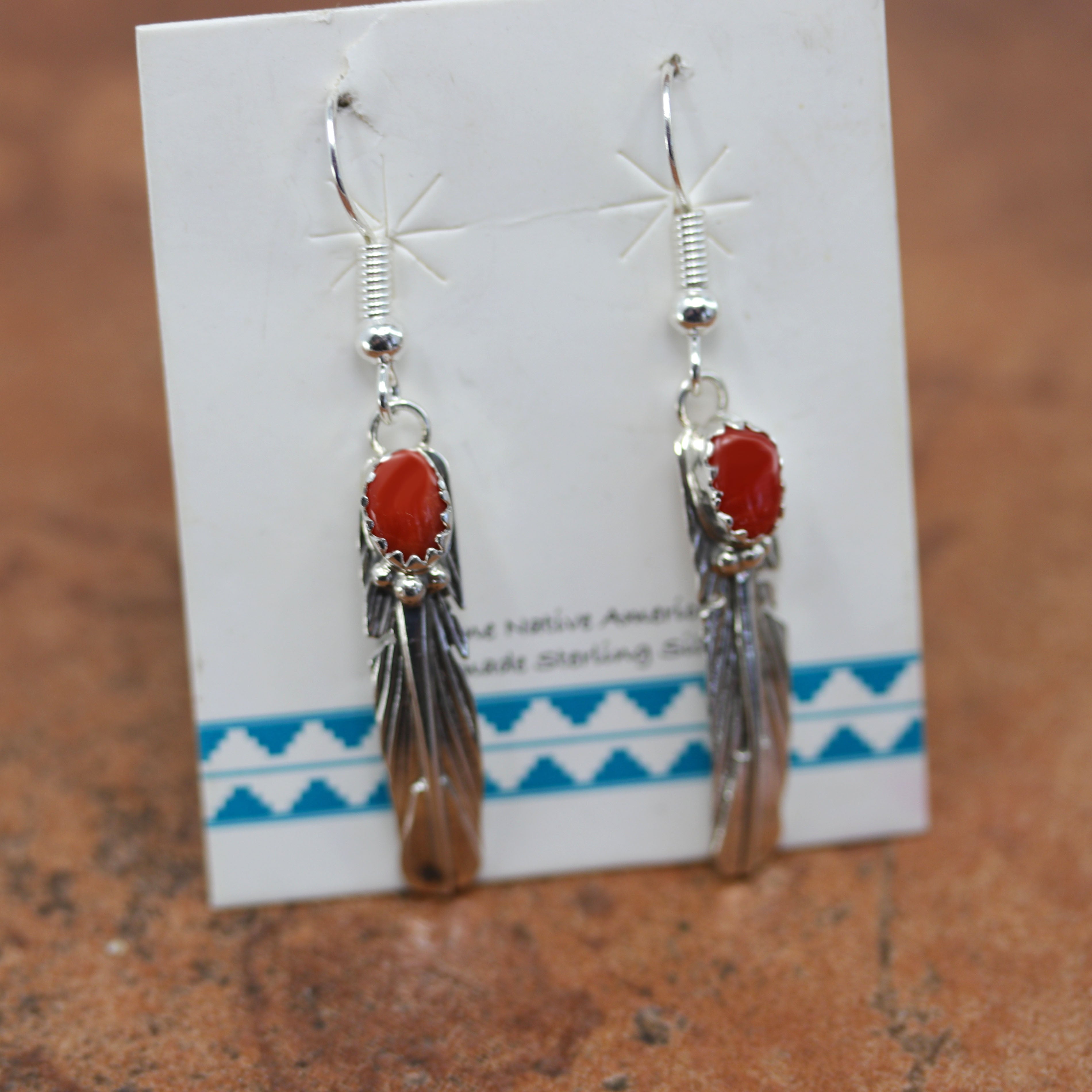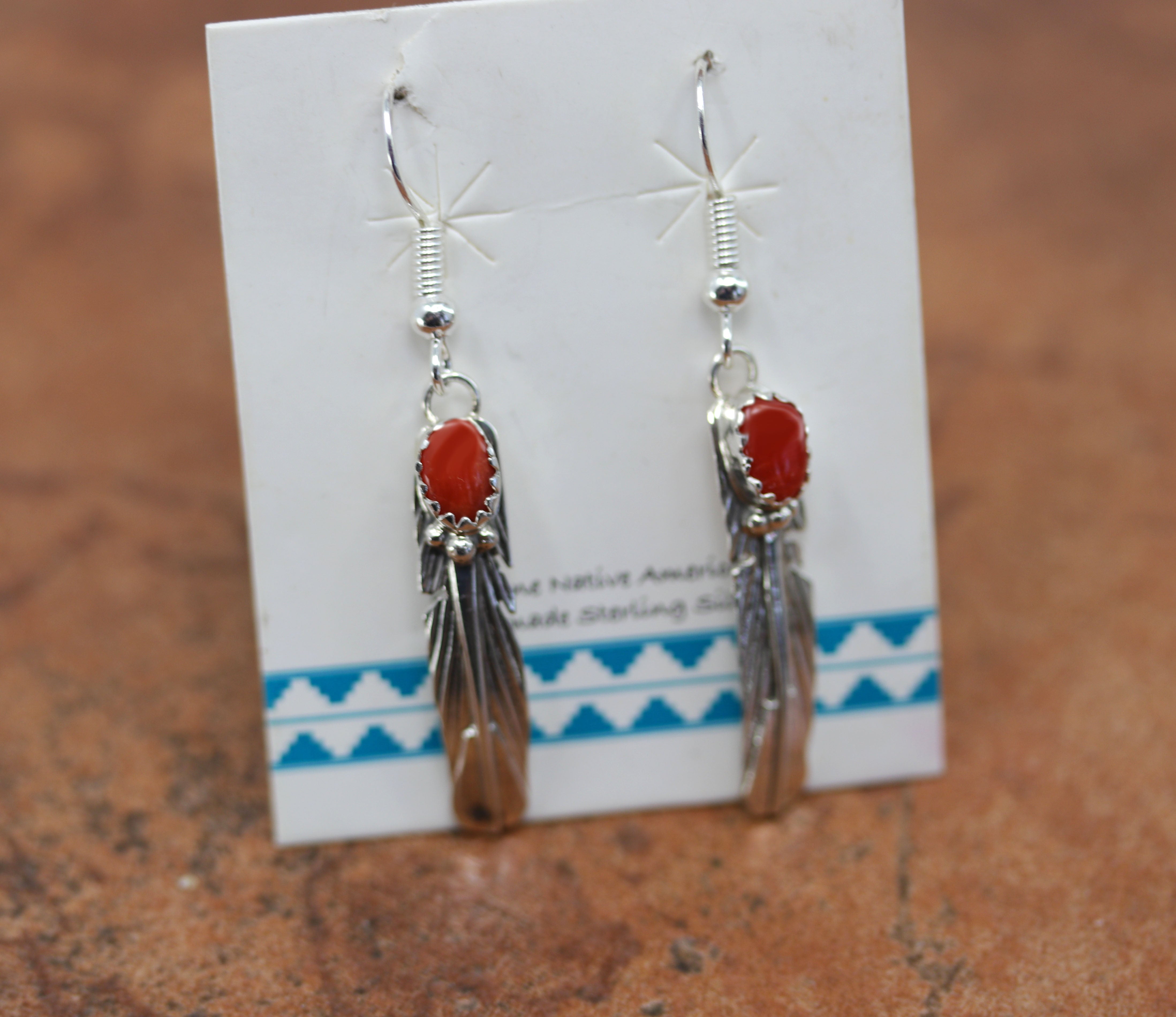 We proudly carry a large variety of sterling silver earrings. Our earrings showcase turquoise, coral, inlay, beadwork, onyx, lapis, spiny oyster, and other beautiful stones. We offer Navajo, Zuni, Native American, and Southwest designs. Our pieces feature post, hoop, Zia, bear paw, dangle, Spider, Petroglyph, nugget, cross, storyteller, Zuni inlay, and many more styles.