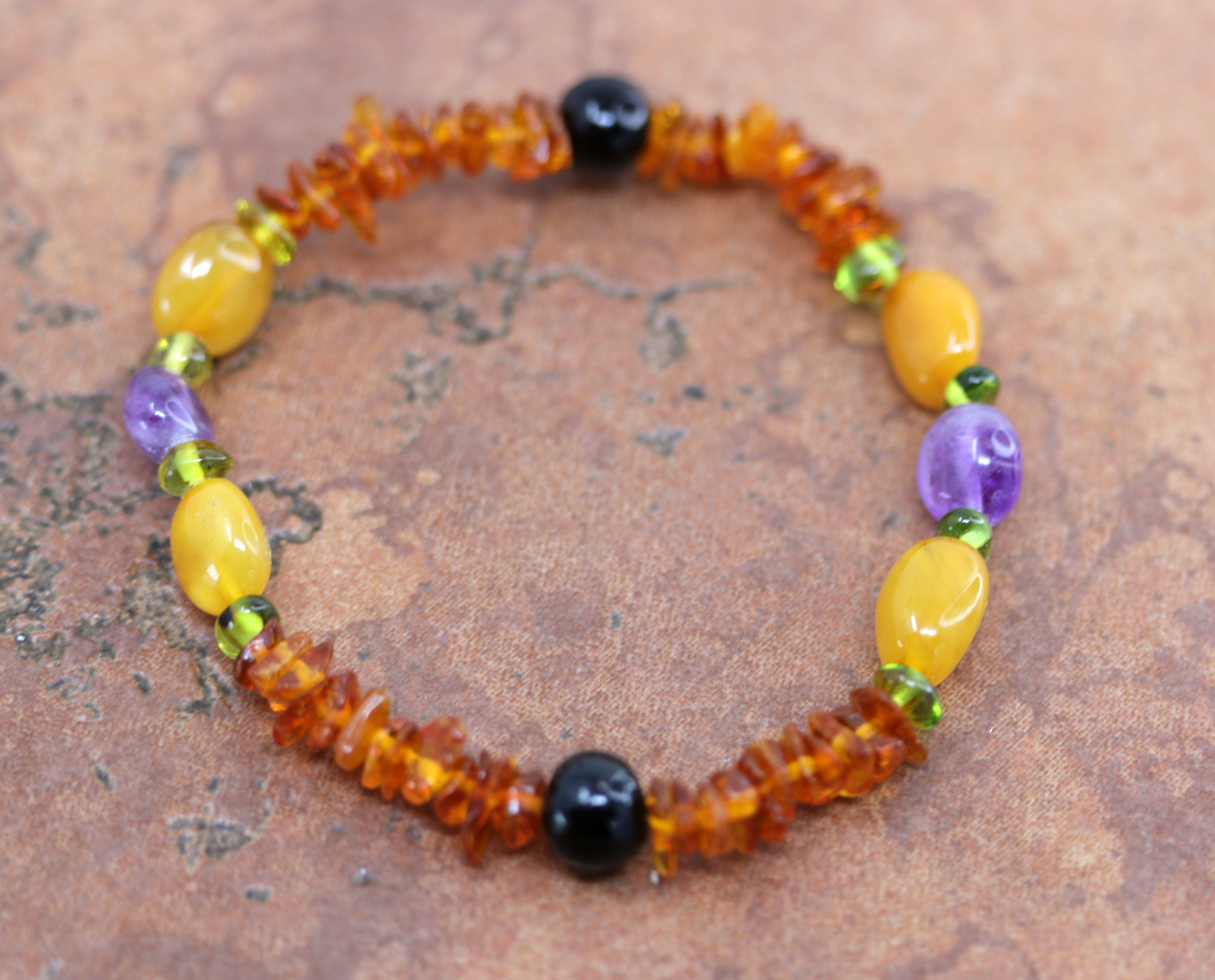 Amethyst Baltic Amber Stretch Bracelet