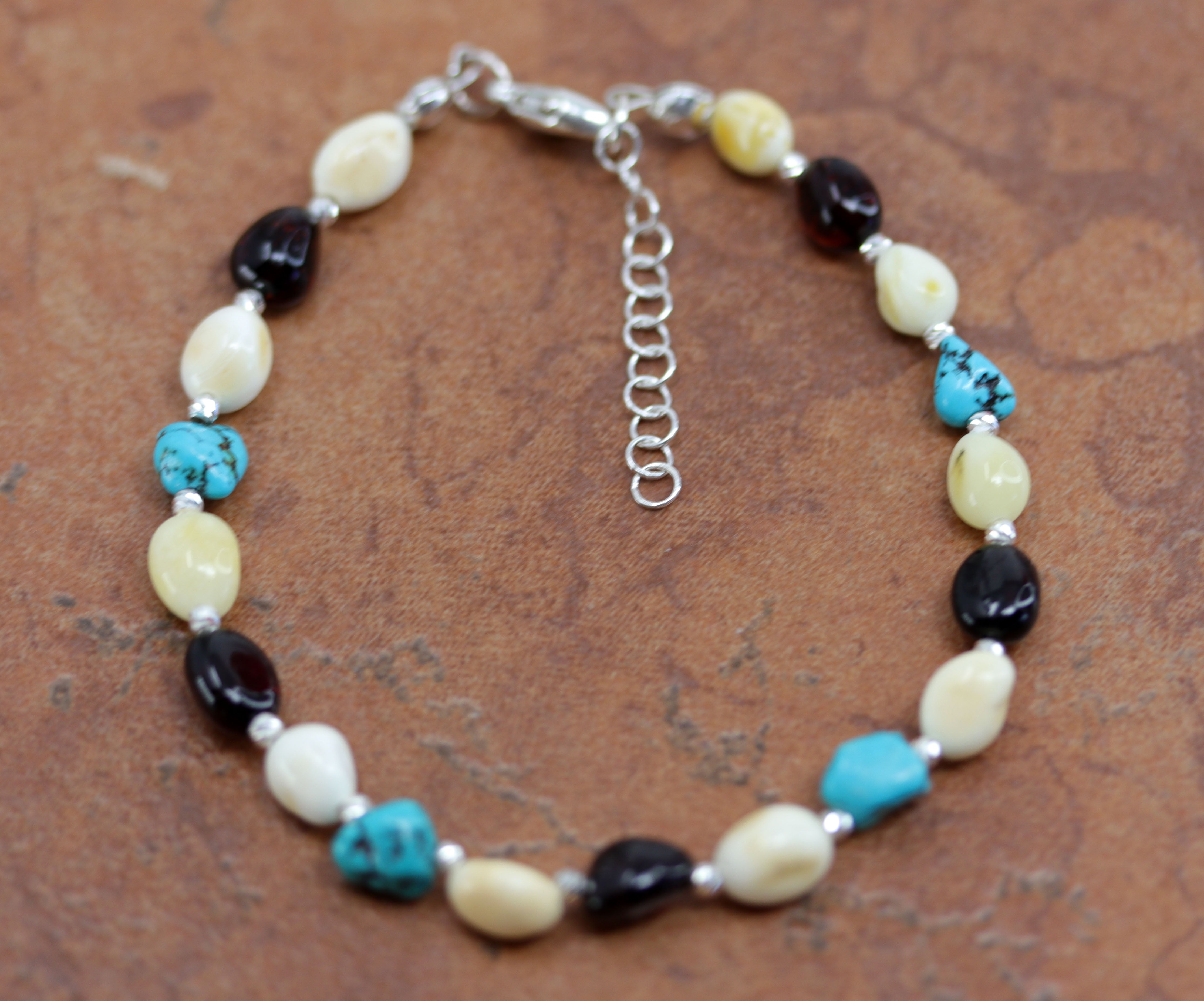 Baltic Amber Turquoise Sterling Silver Clasp Bracelet