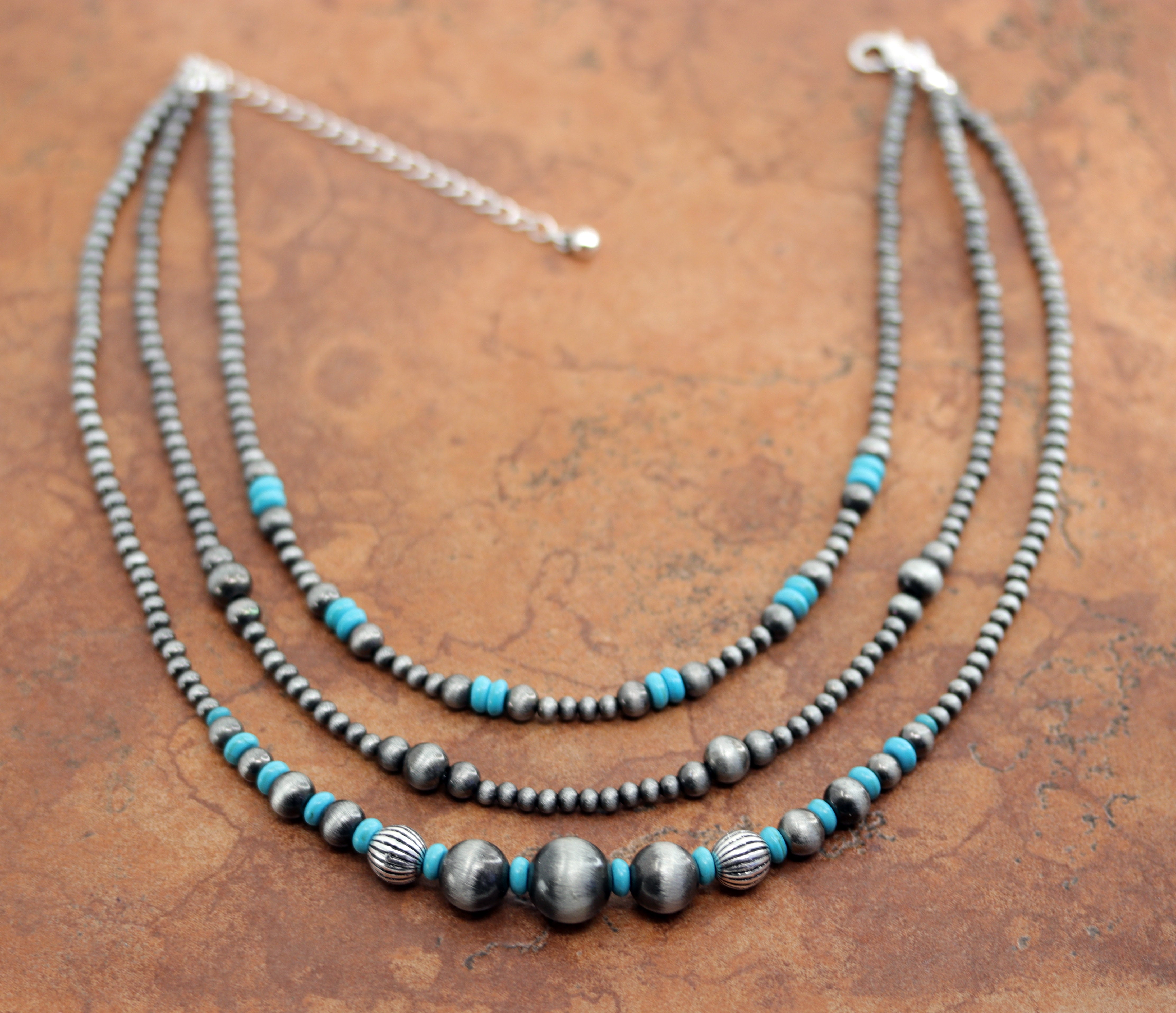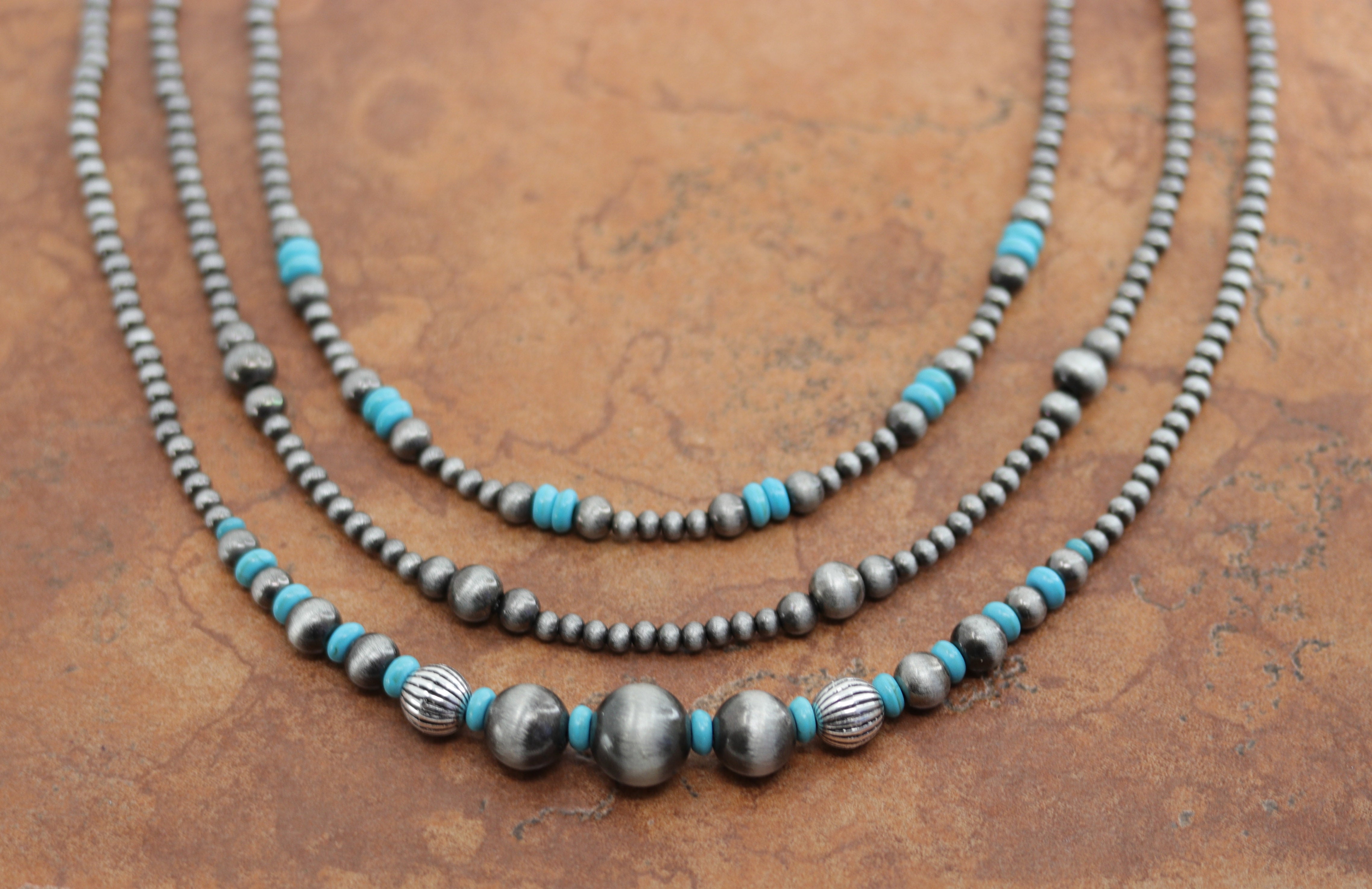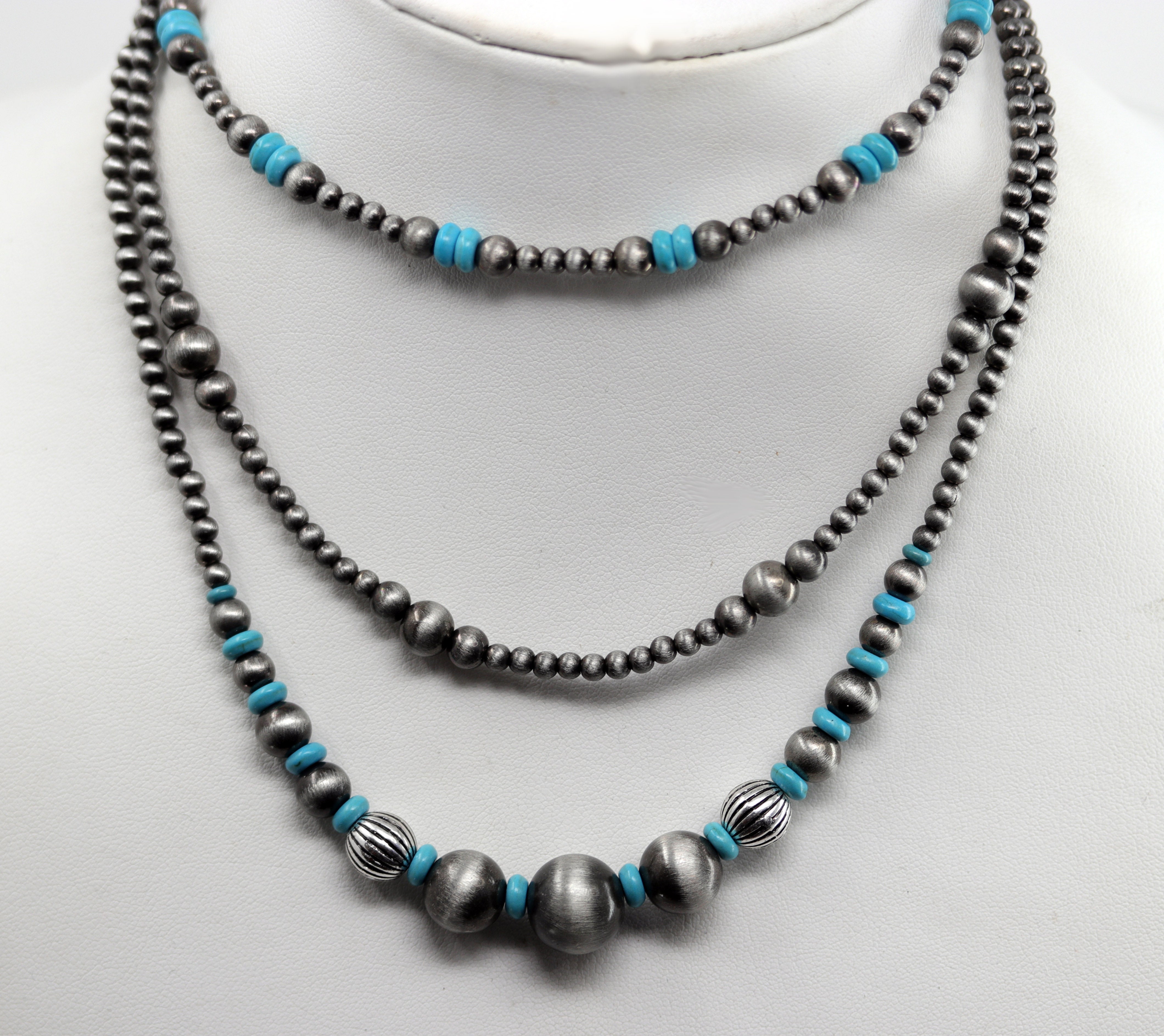 Cowgirl Pearl Style Layred 3 Strand Turquoise Necklace
