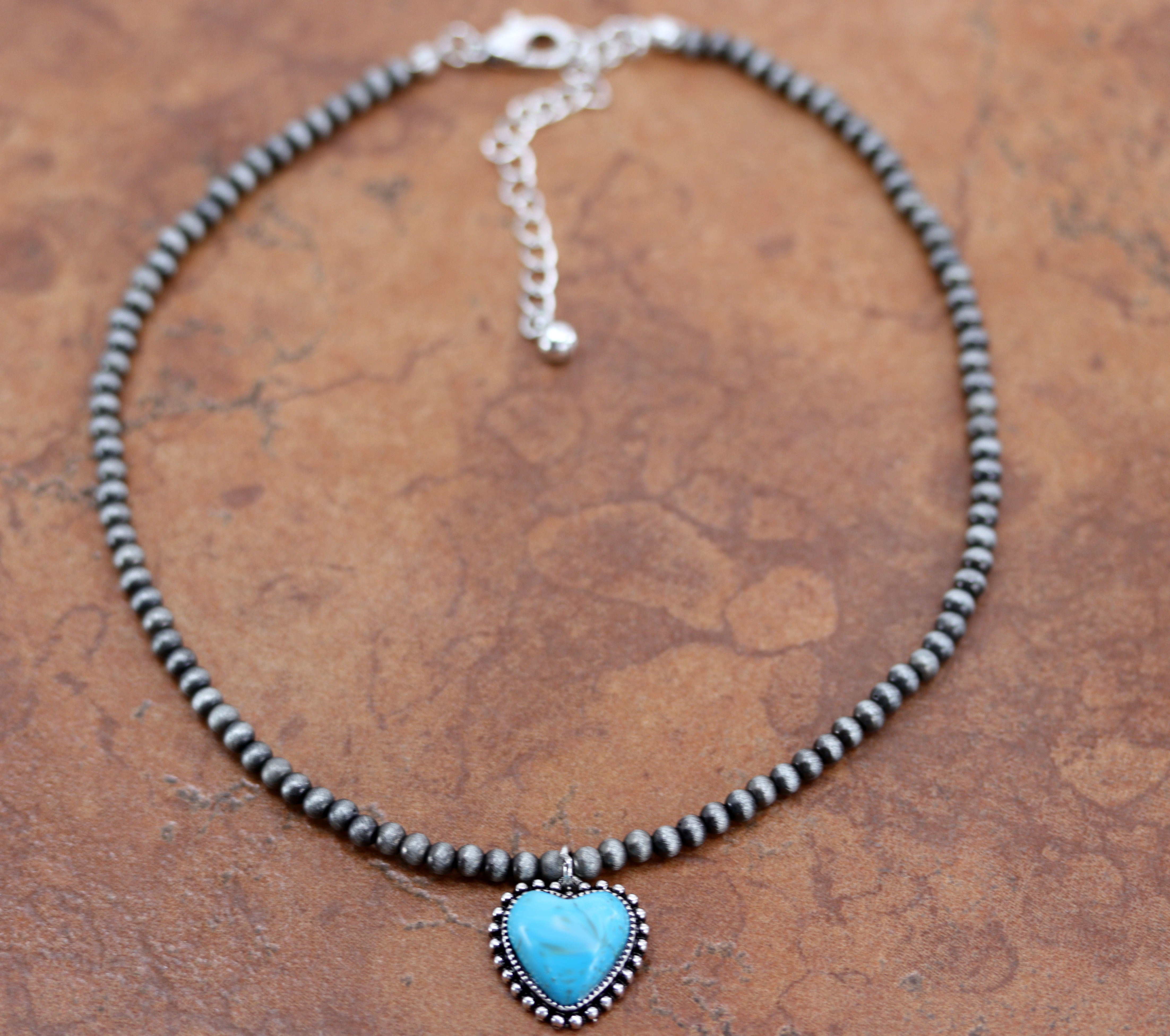 Cowgirl Pearl Style Turquoise Heart Necklace