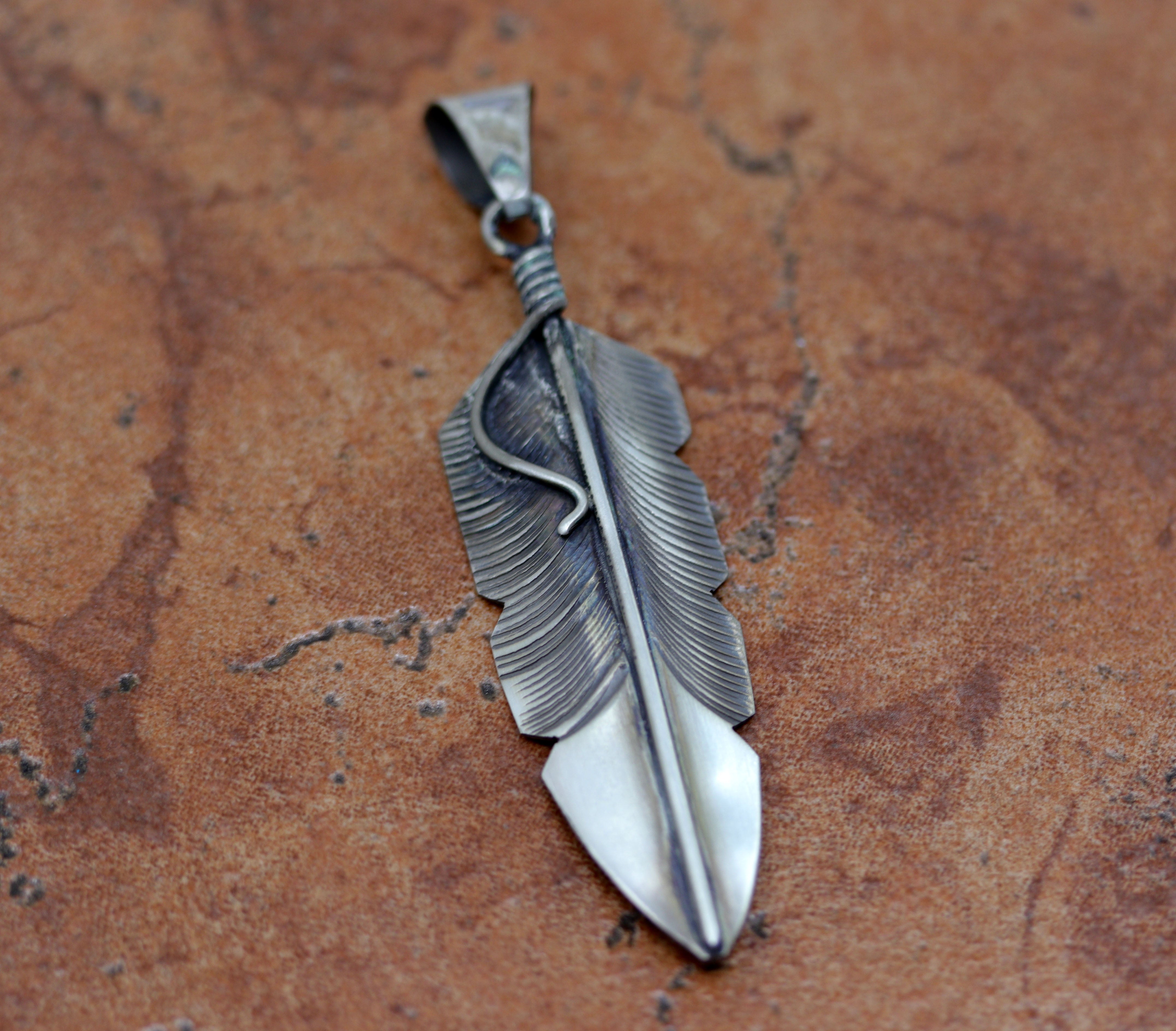 Navajo Silver Feather Pendant