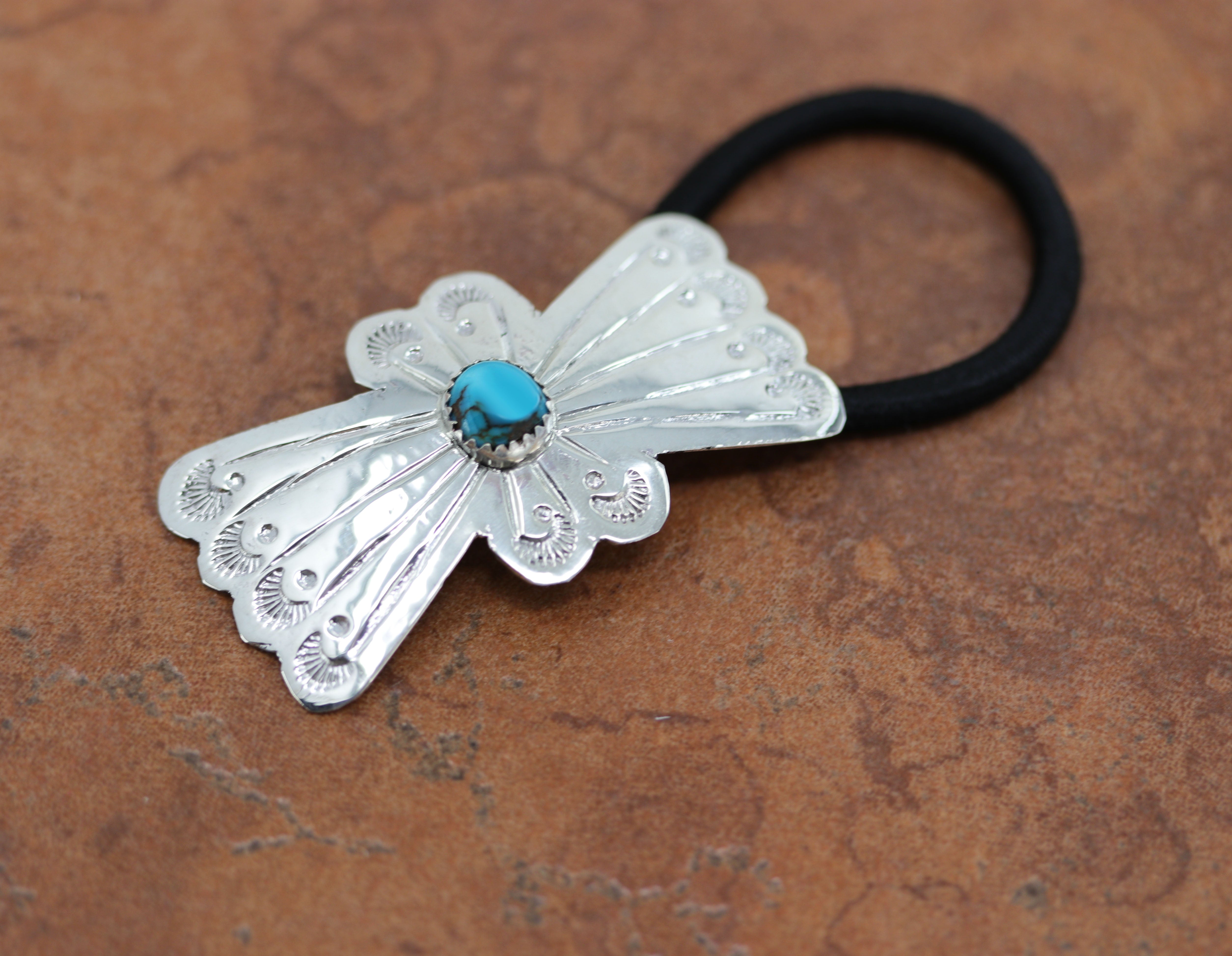 Navajo Silver Turquoise Butterfly Hair Tie