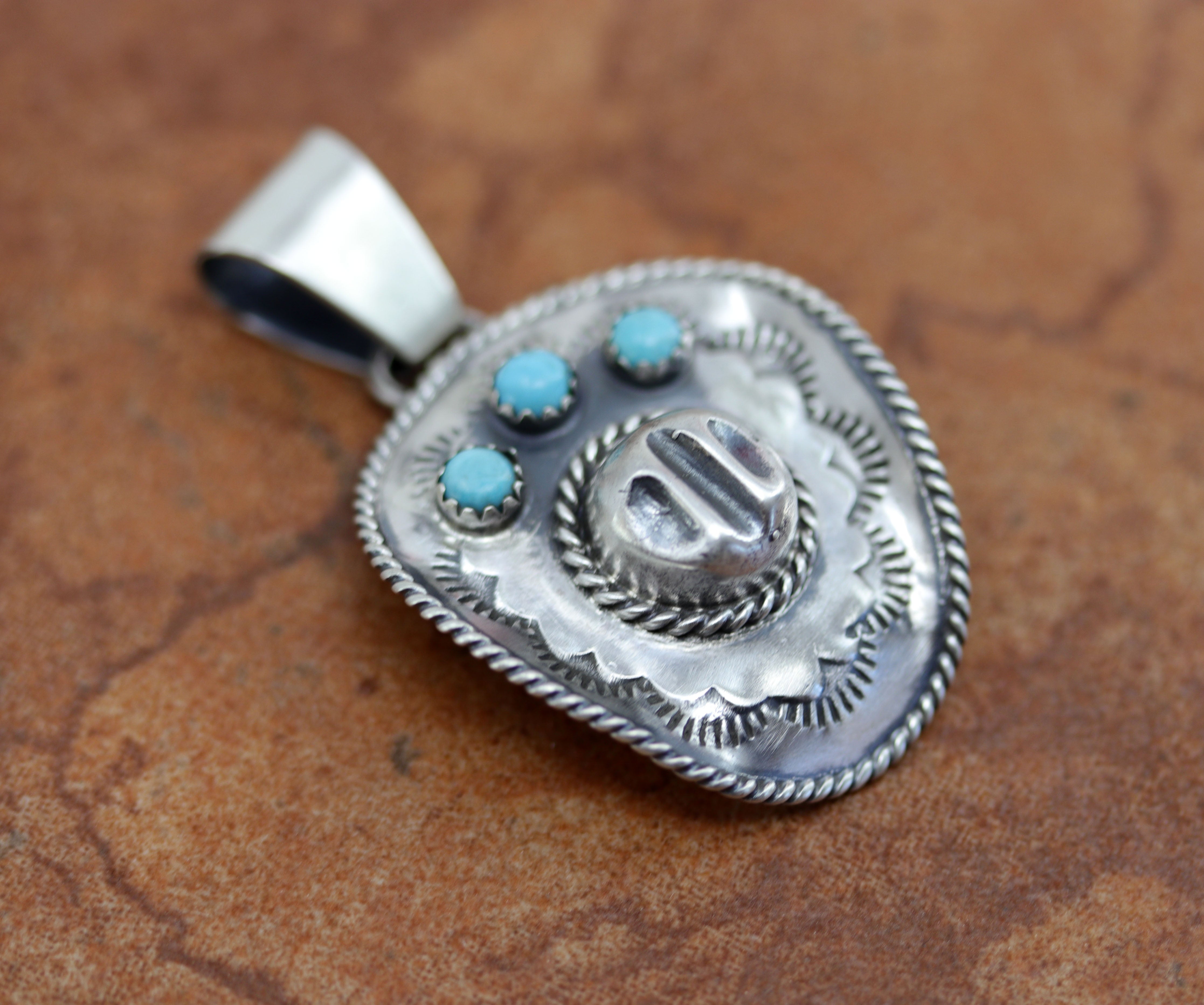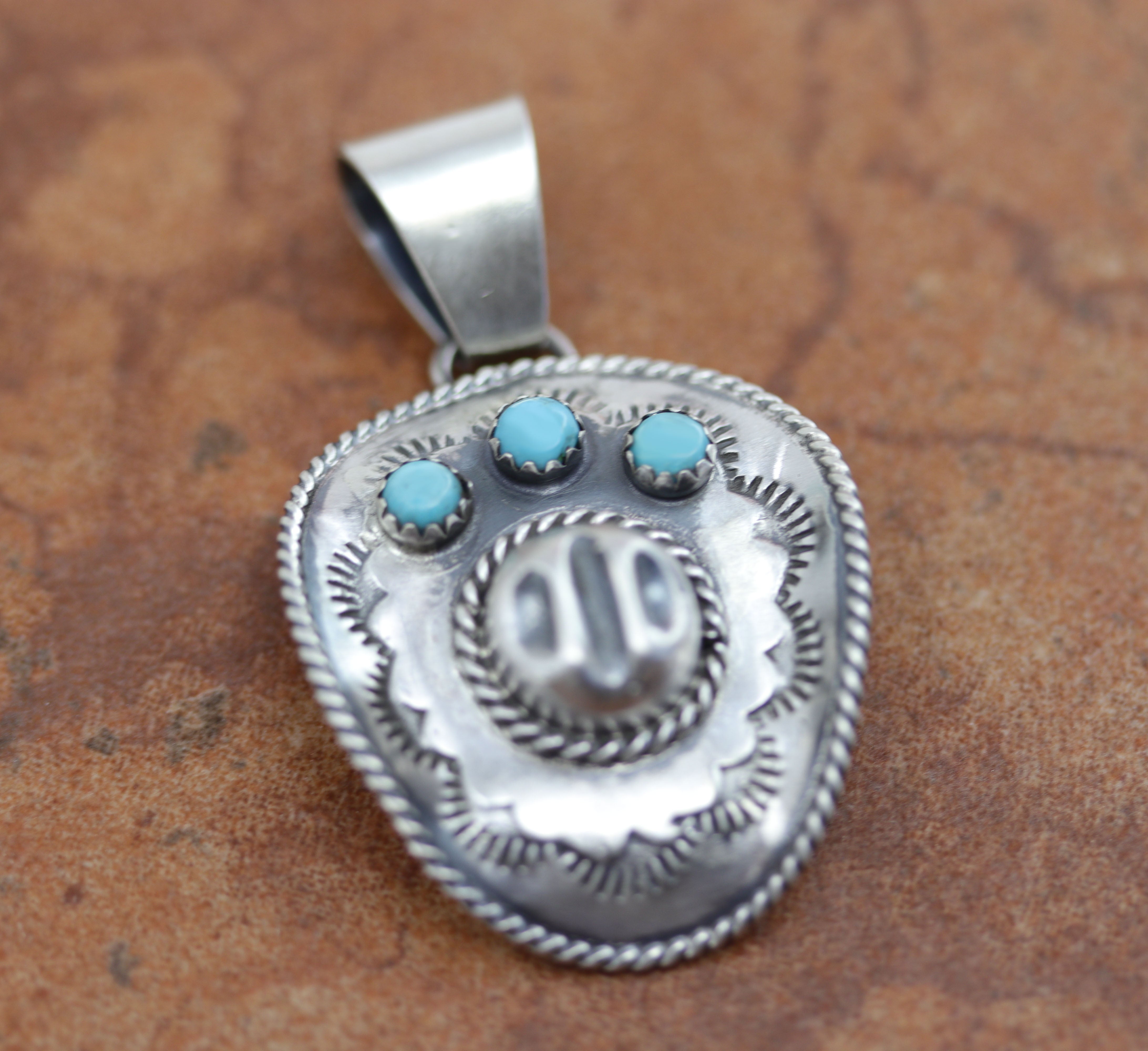 Navajo Silver Turquoise Cowboy Hat Pendant