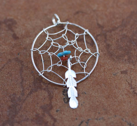 Navajo Silver Turquoise Dream Catcher Pendant