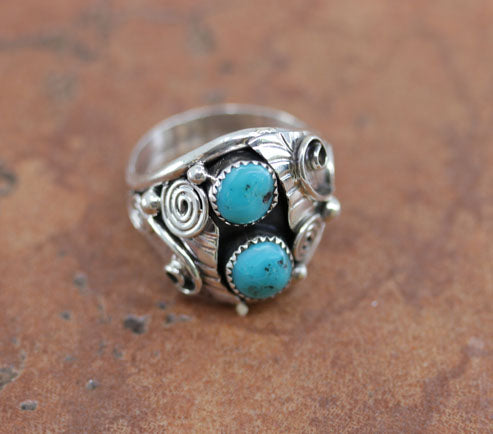Gorgeous Navajo Native American ring. It is made from sterling silver and turquoise. The ring size 10 1/2 and it is 1 1/8" in length.
