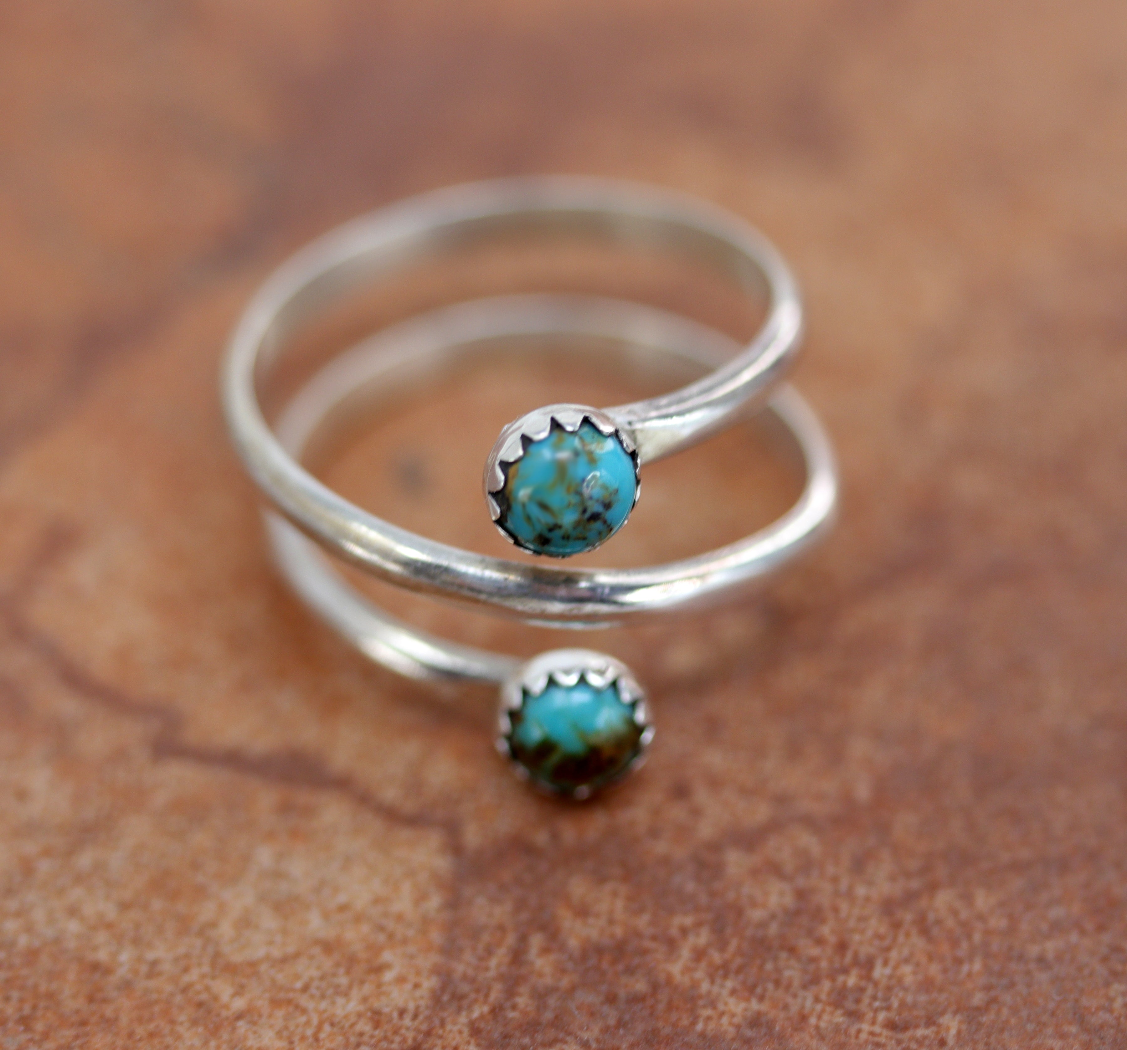 Beautiful Navajo Native American ring. It is made from sterling silver and turquoise. The ring size is adustable and fits sizes 8-10 and it is 3/4" in length.