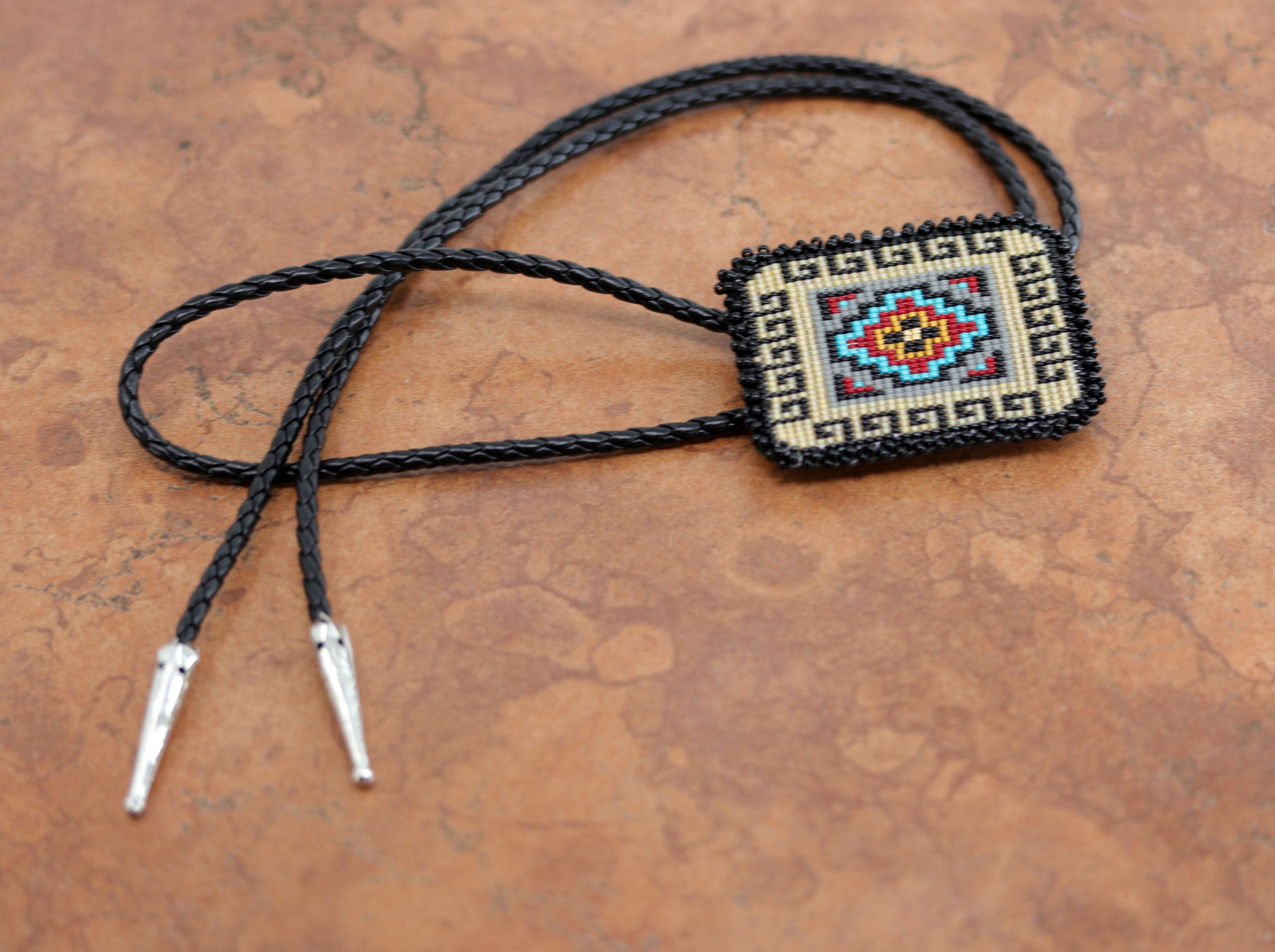 Navajo Sterling Silver Beaded Rug Style Bolo Tie