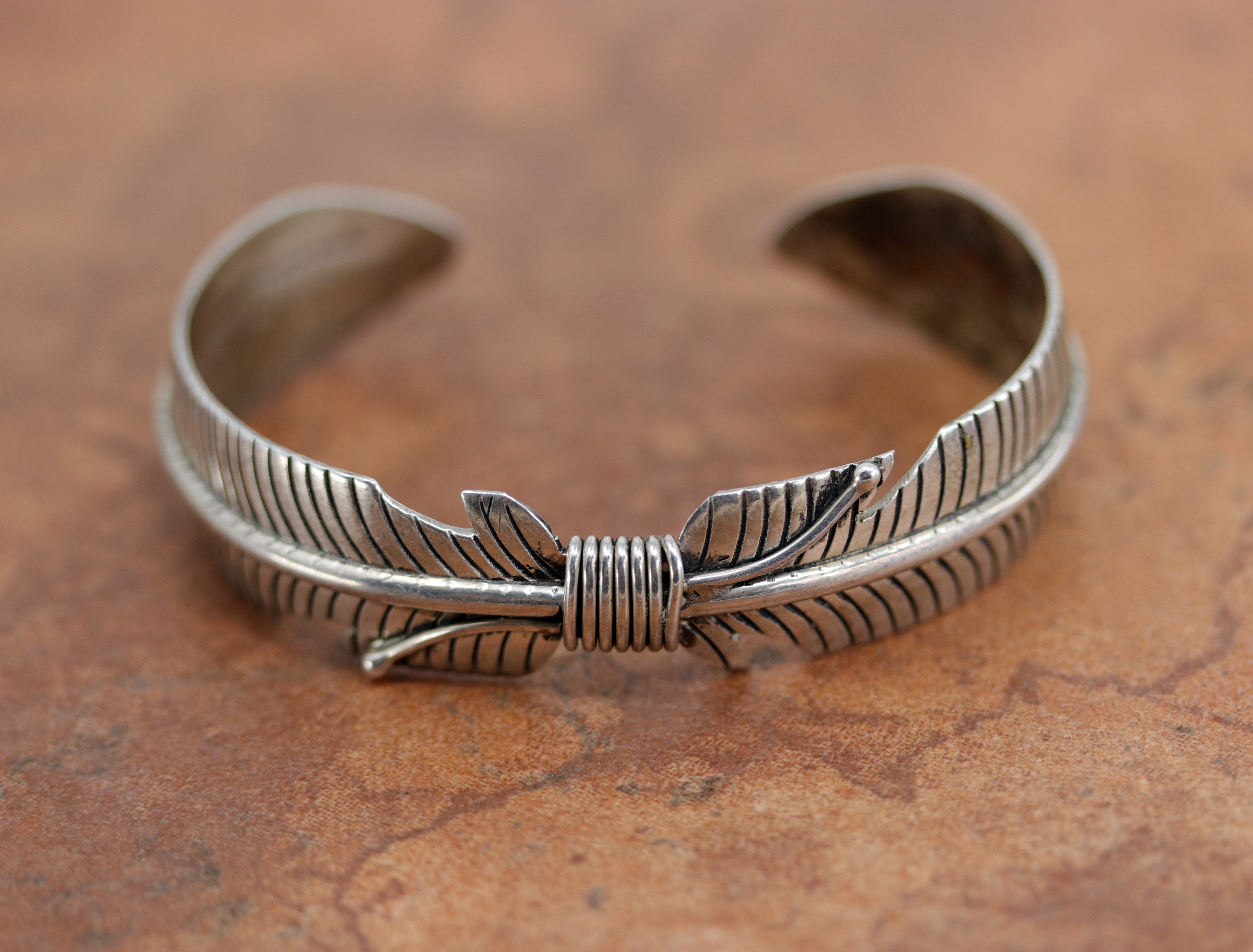 Navajo Sterling Silver Feather Cuff Bracelet