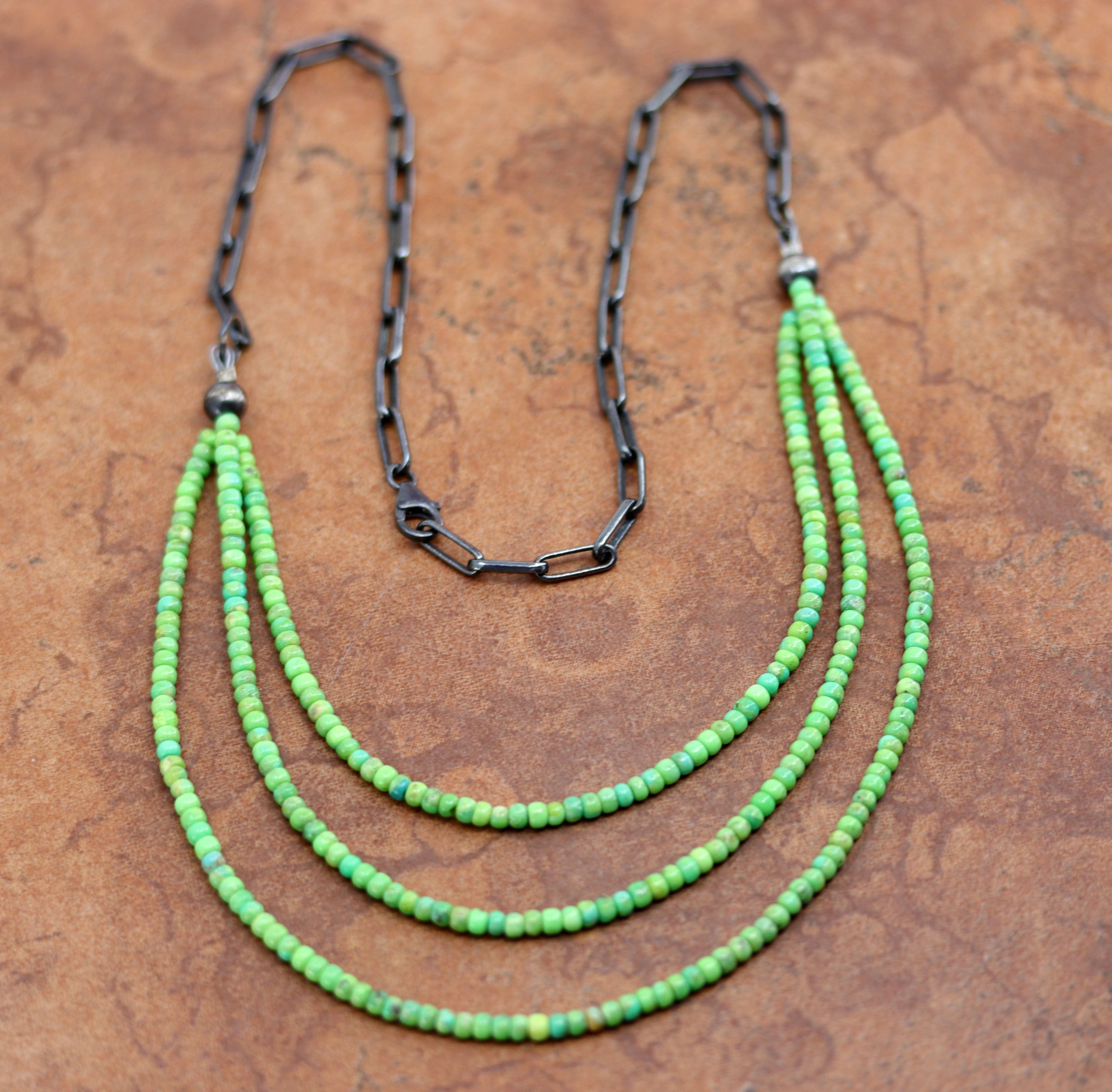 Navajo Sterling Silver Paper Clip Gaspeite Necklace