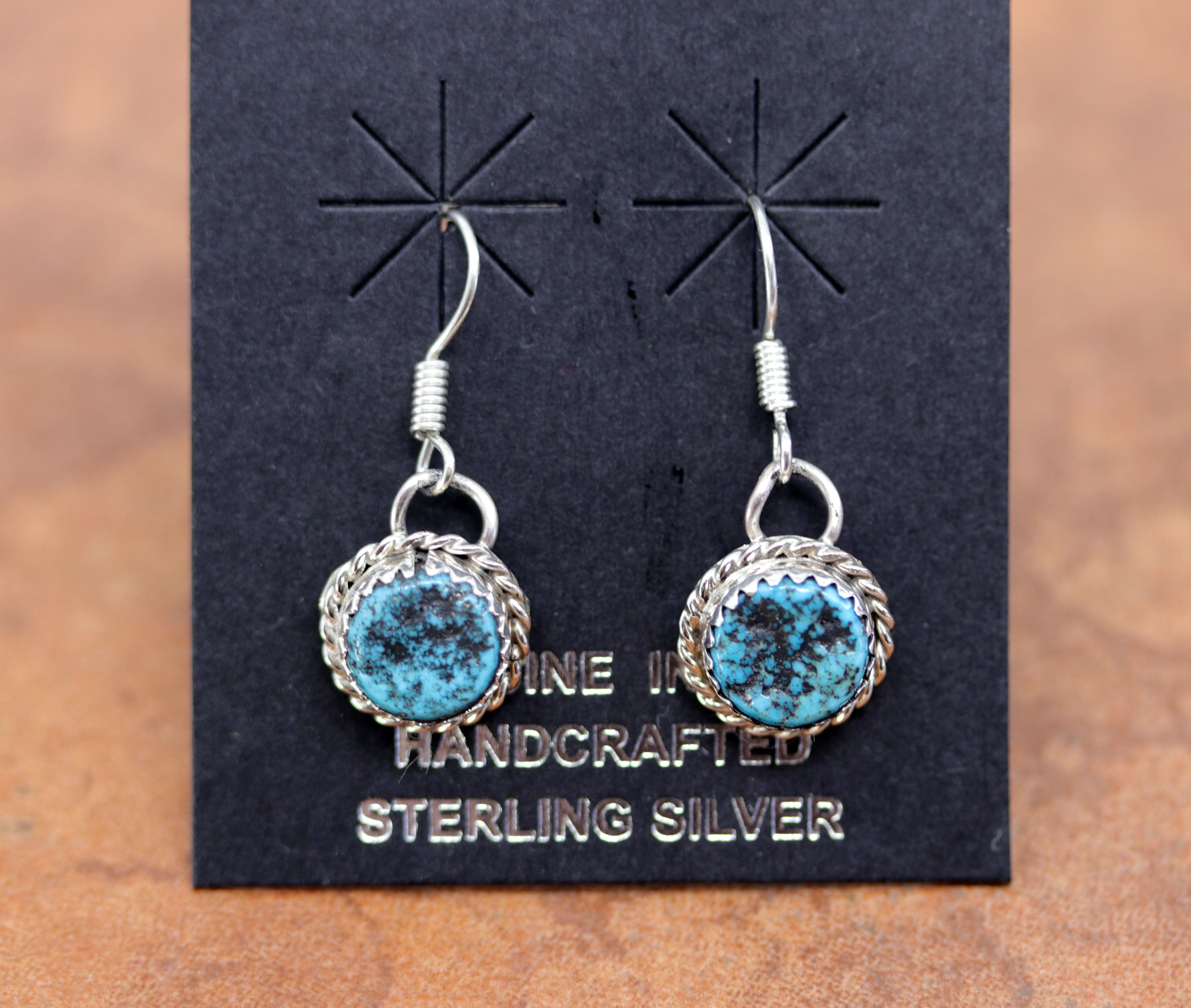 A beautiful pair of Navajo Native American earrings. They are made from sterling silver and turquoise. The earrings are about 1 1/8" in length including the hook and 1/2" wide.
