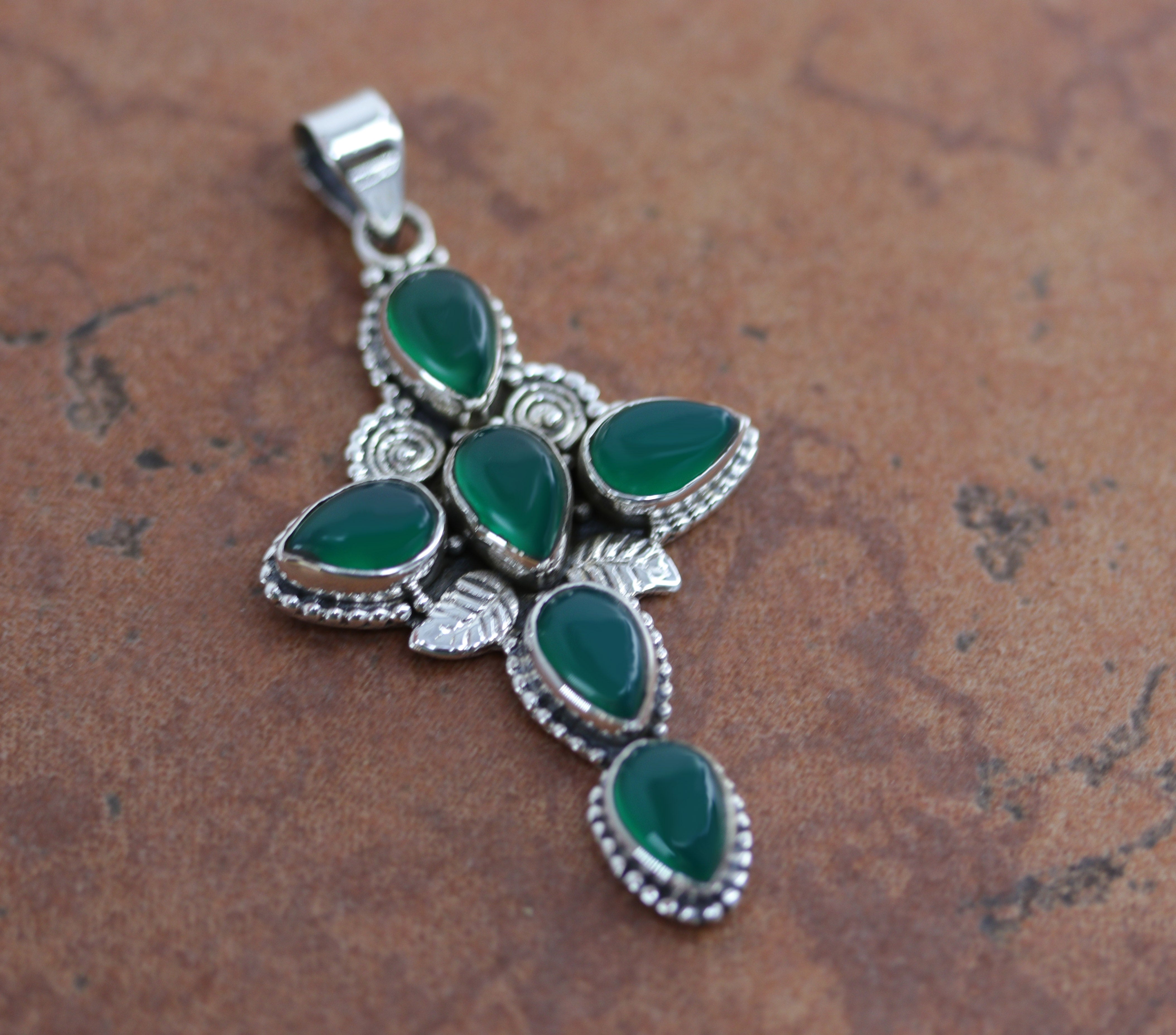 Silver Emerald Cross Pendant