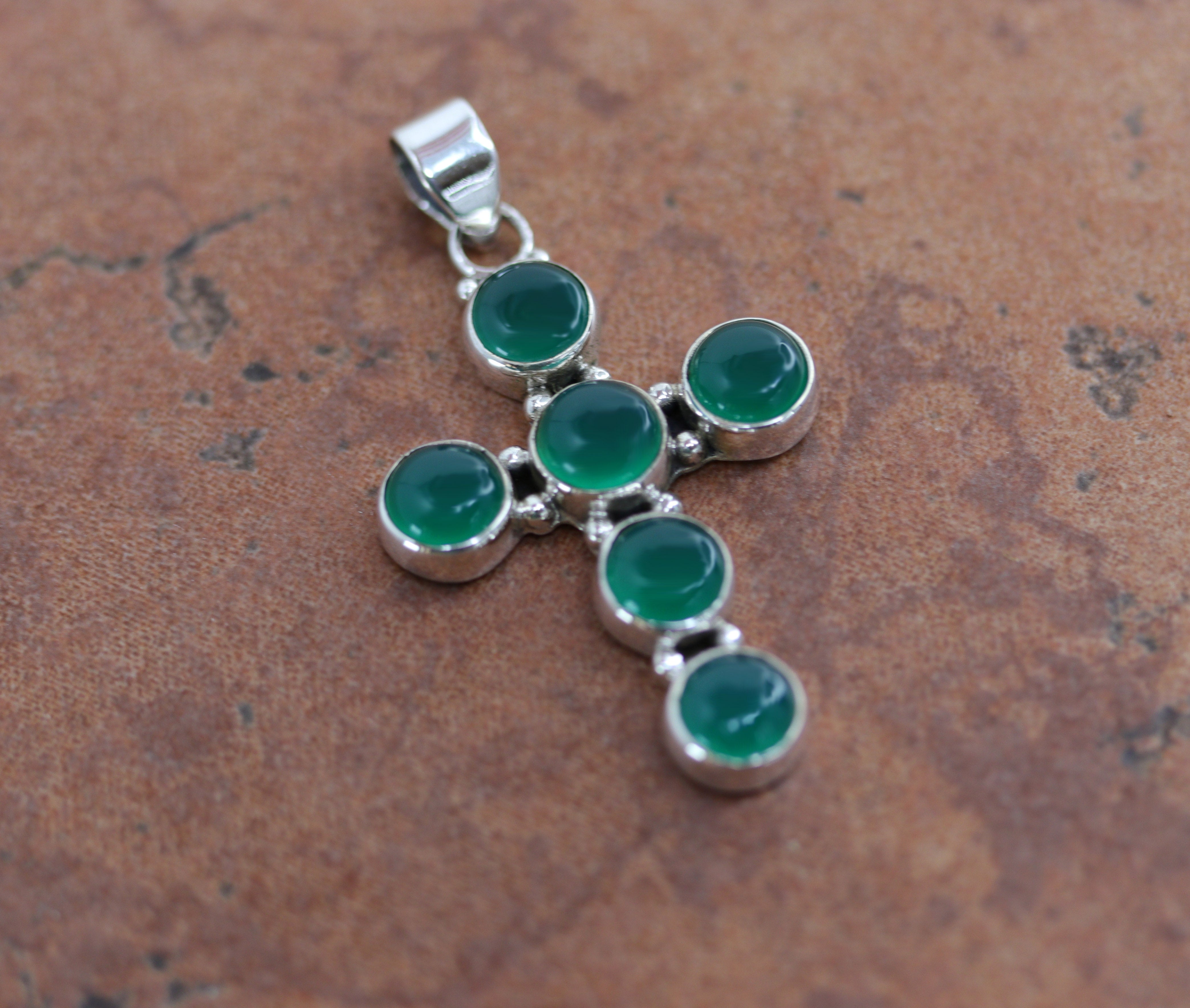 Silver Green Onyx Cross Pendant