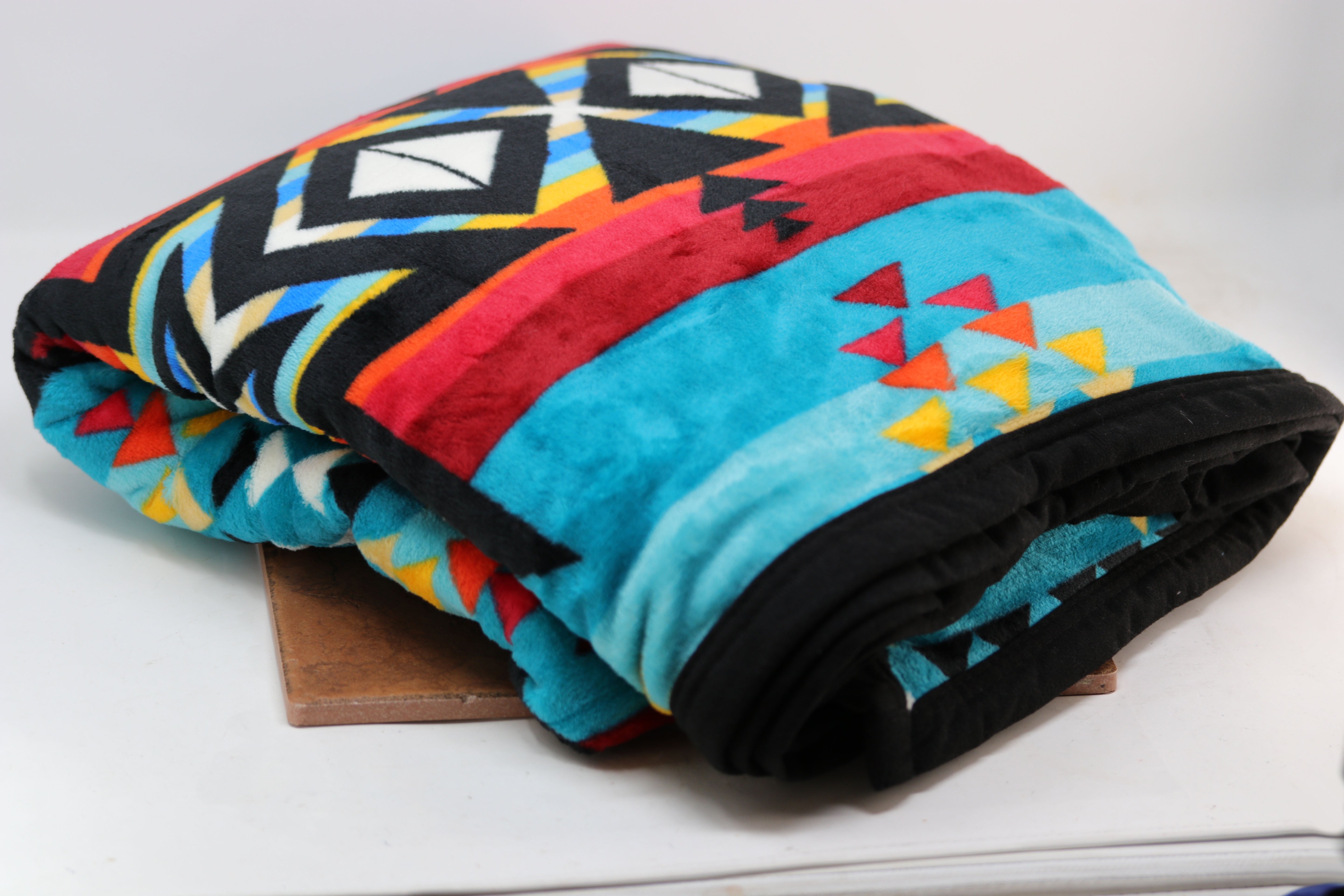 A beautiful, soft southwest pattern rug design sherpa blanket. It measures 72" by 60". This item is not Native American.