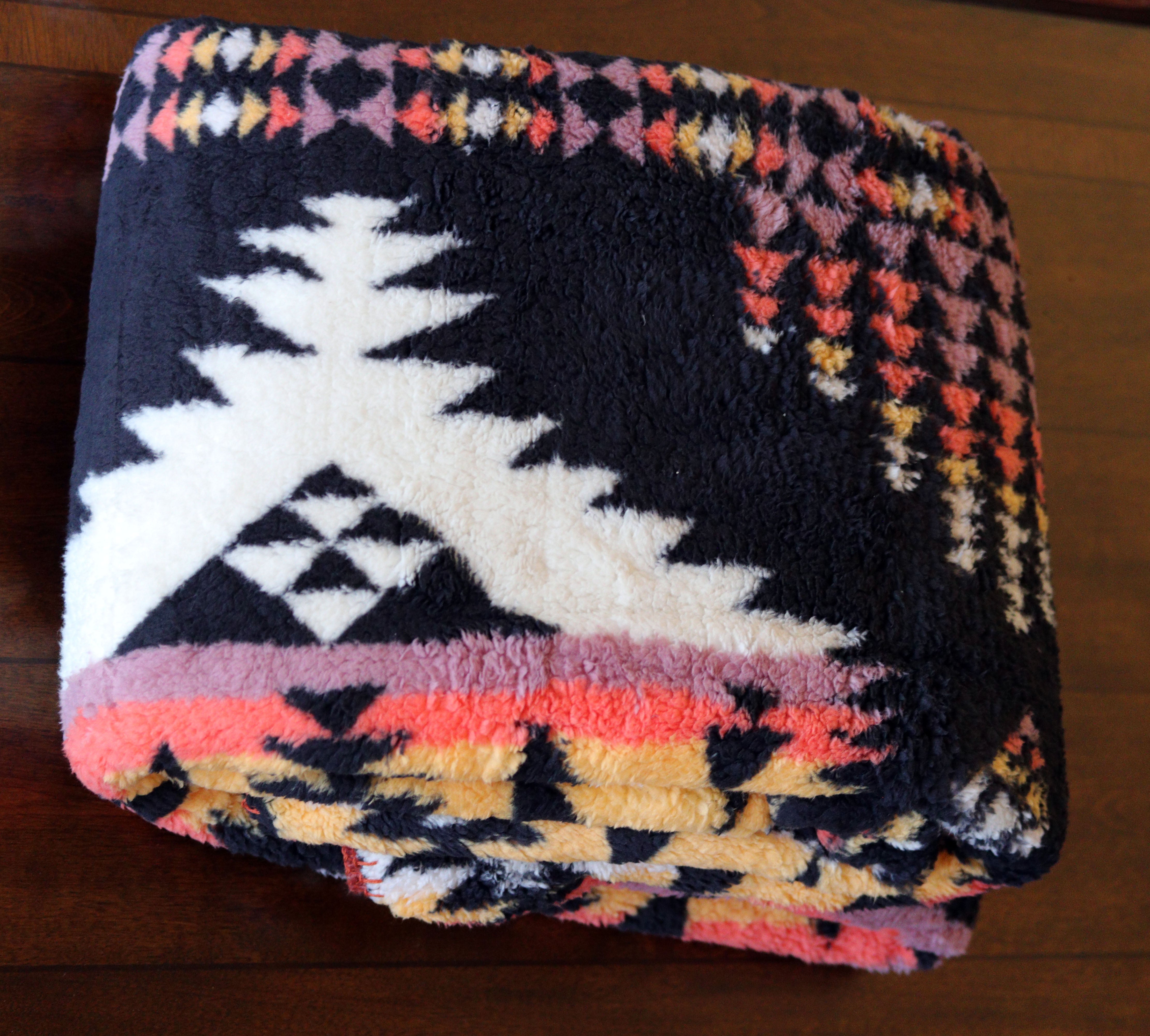 A beautiful, soft southwest pattern rug design sherpa blanket. It measures 72" by 60". This item is not Native American.