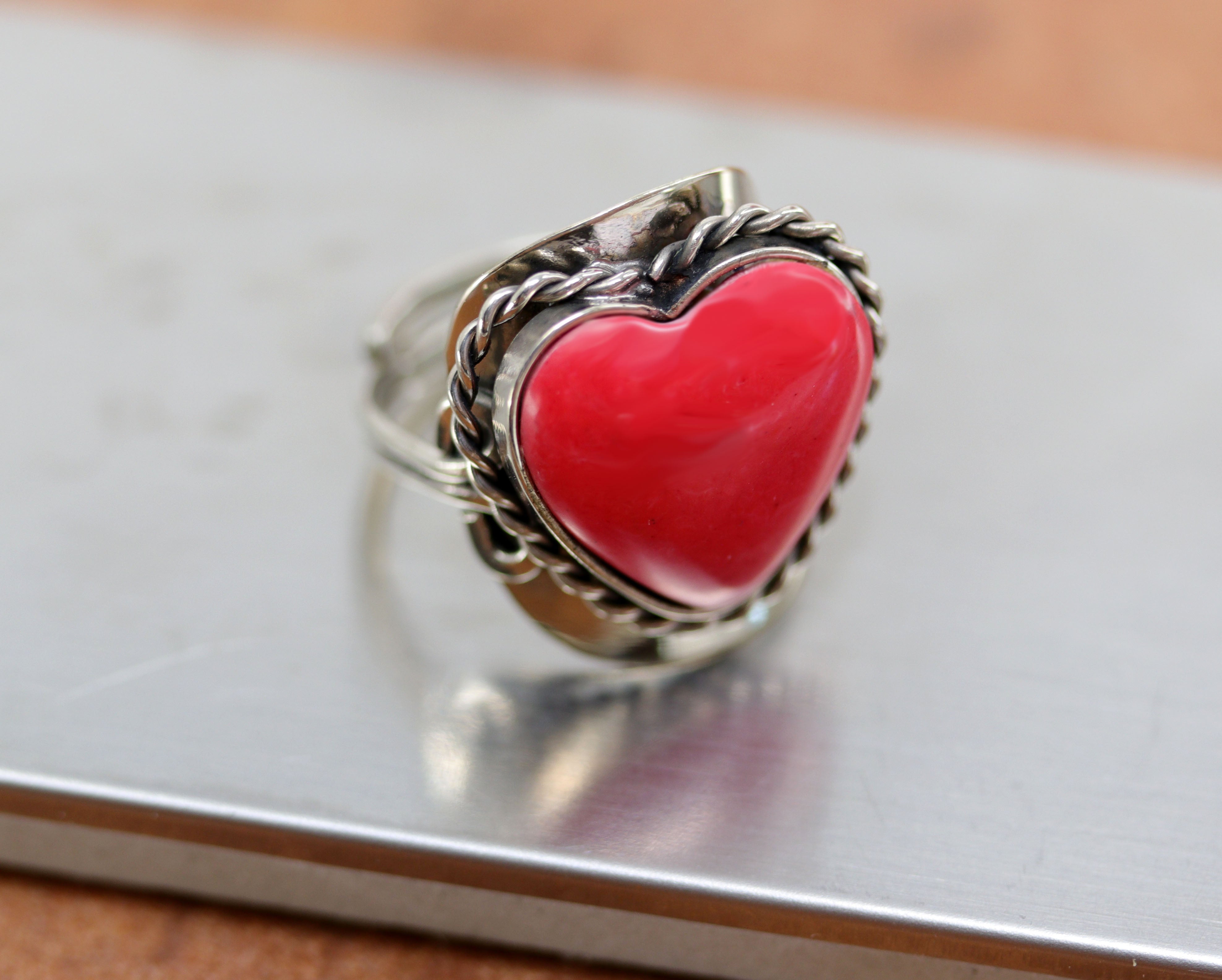 Beautiful ring made from Zinc Alloy and man made inlay. The ring size is 6-9 and it measures 1" in length. This item is not Native American.