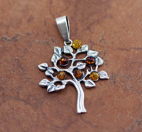 Sterling Silver Baltic Amber Tree of Life Pendant