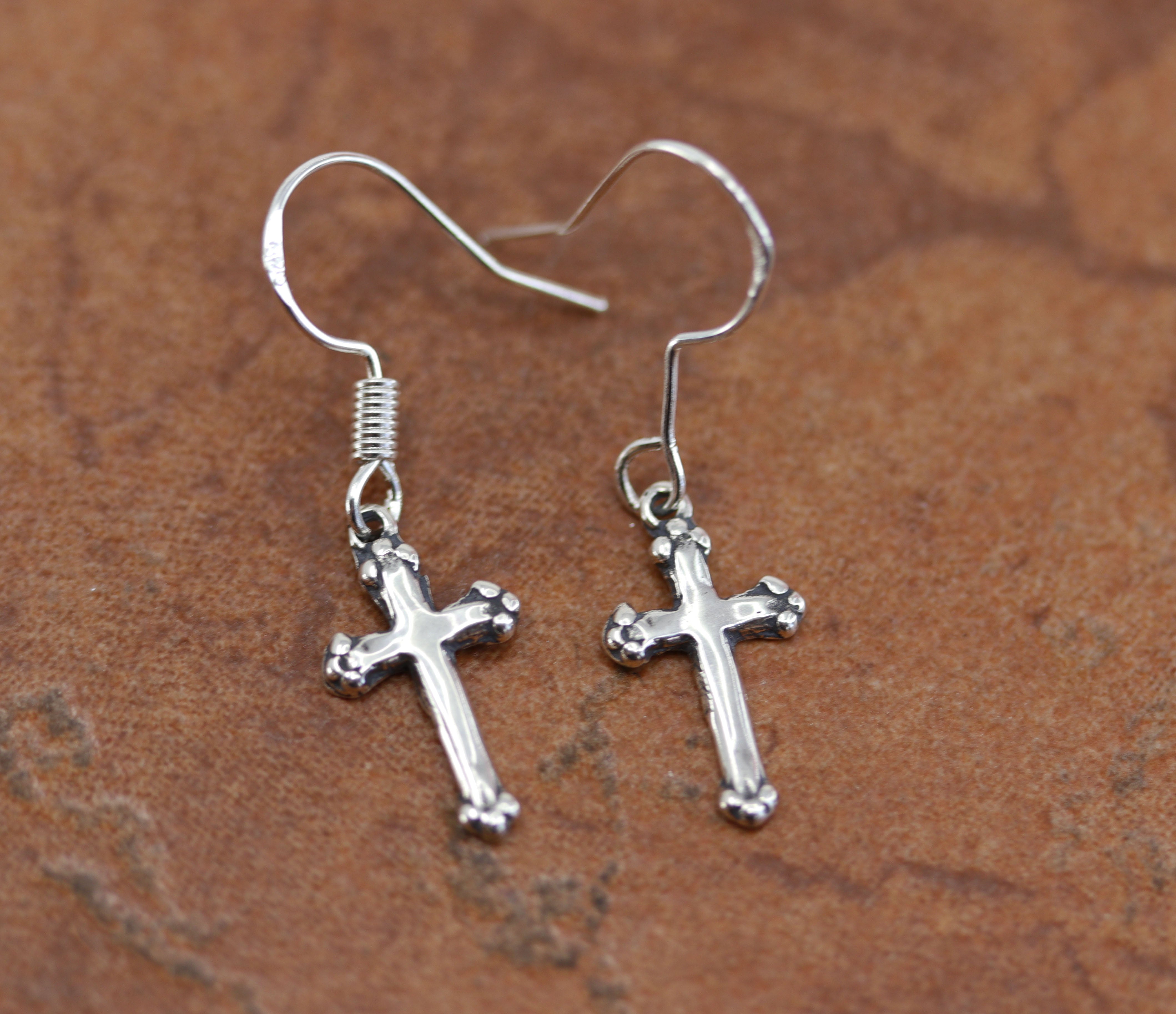 Very nice sterling silver cross earrings. The hooks are made from sterling silver. The earrings are about 1 1/8" in length including the hook, and 3/8" in width. This item is not Native American.