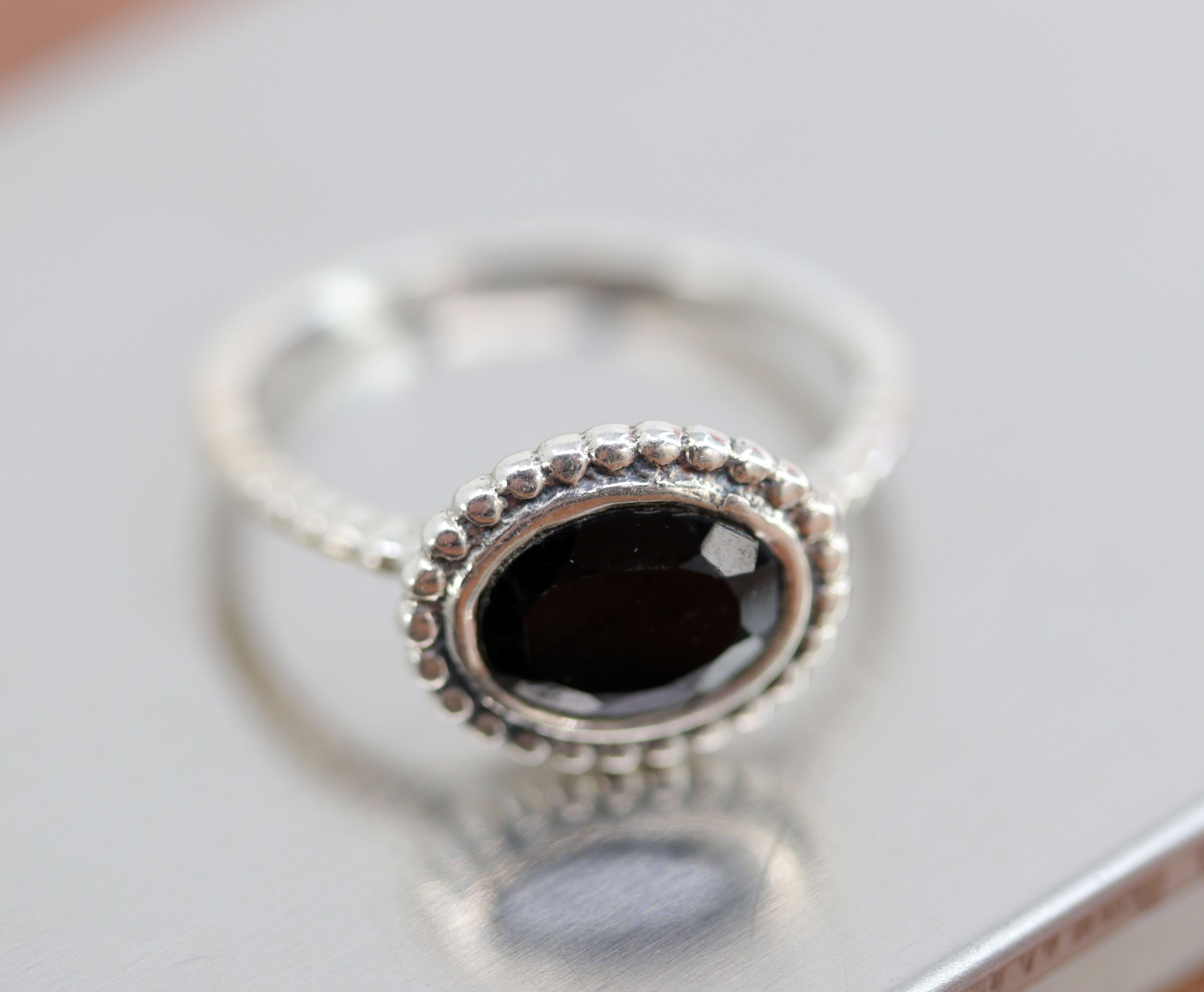 Sterling Silver Faceted Black Agate Ring Size 7 1/2