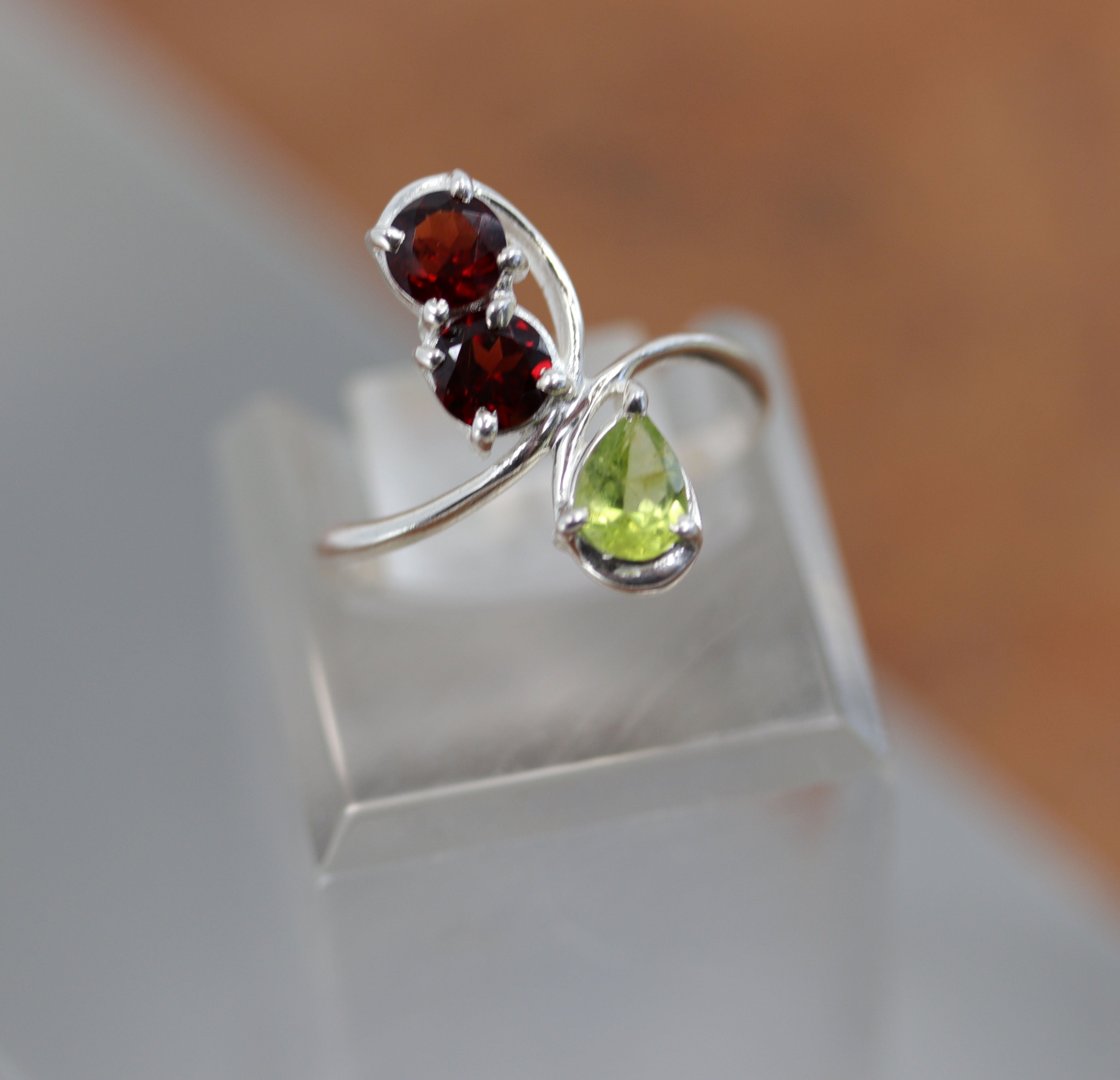 Sterling Silver Garnet Peridot Ring Size 8 1/2