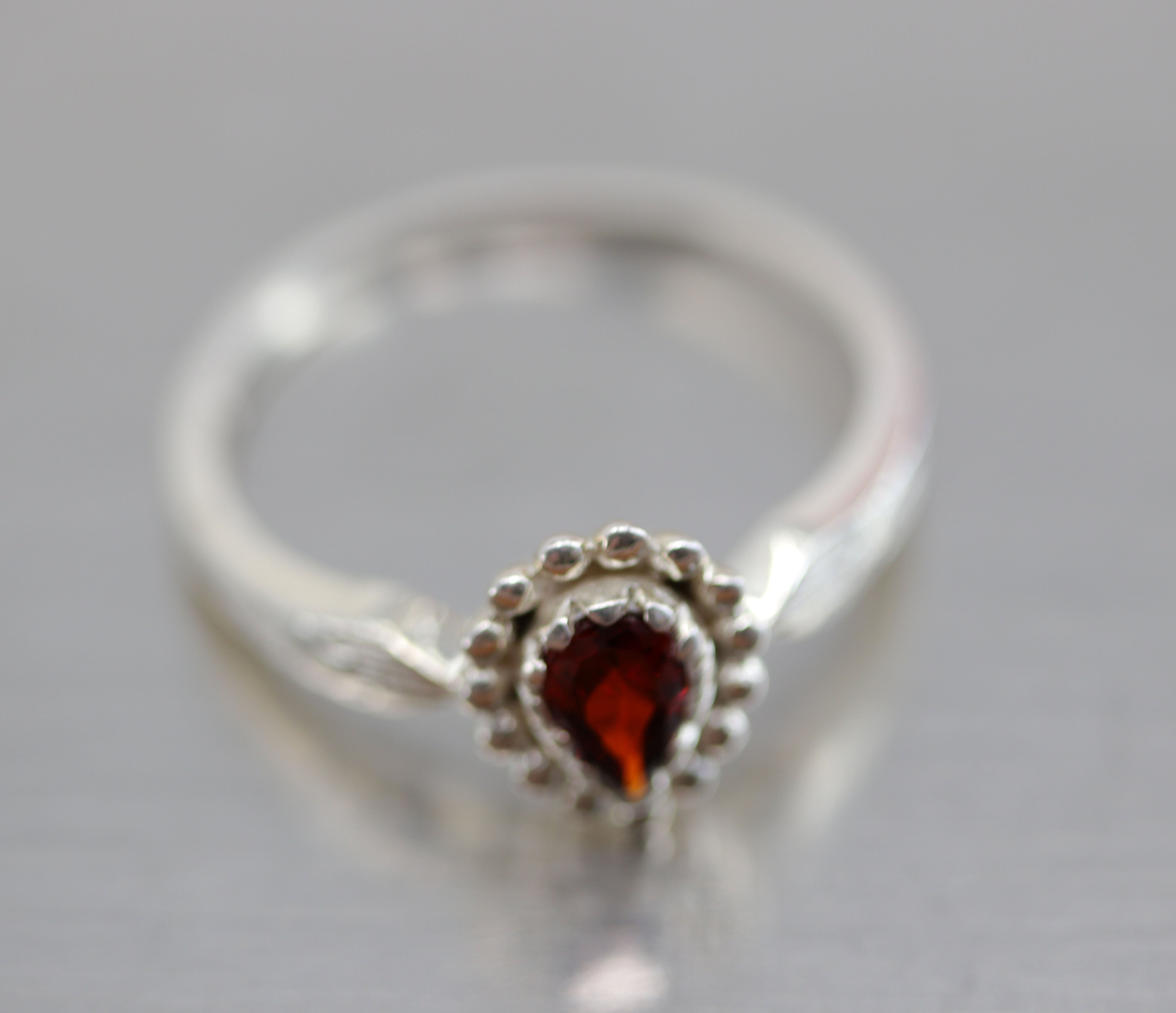 A beautiful Southwest Style gemstone ring made from sterling silver and garnet. The ring size is 8 1/2 and it is 1/2" in length. This item is not Native American.