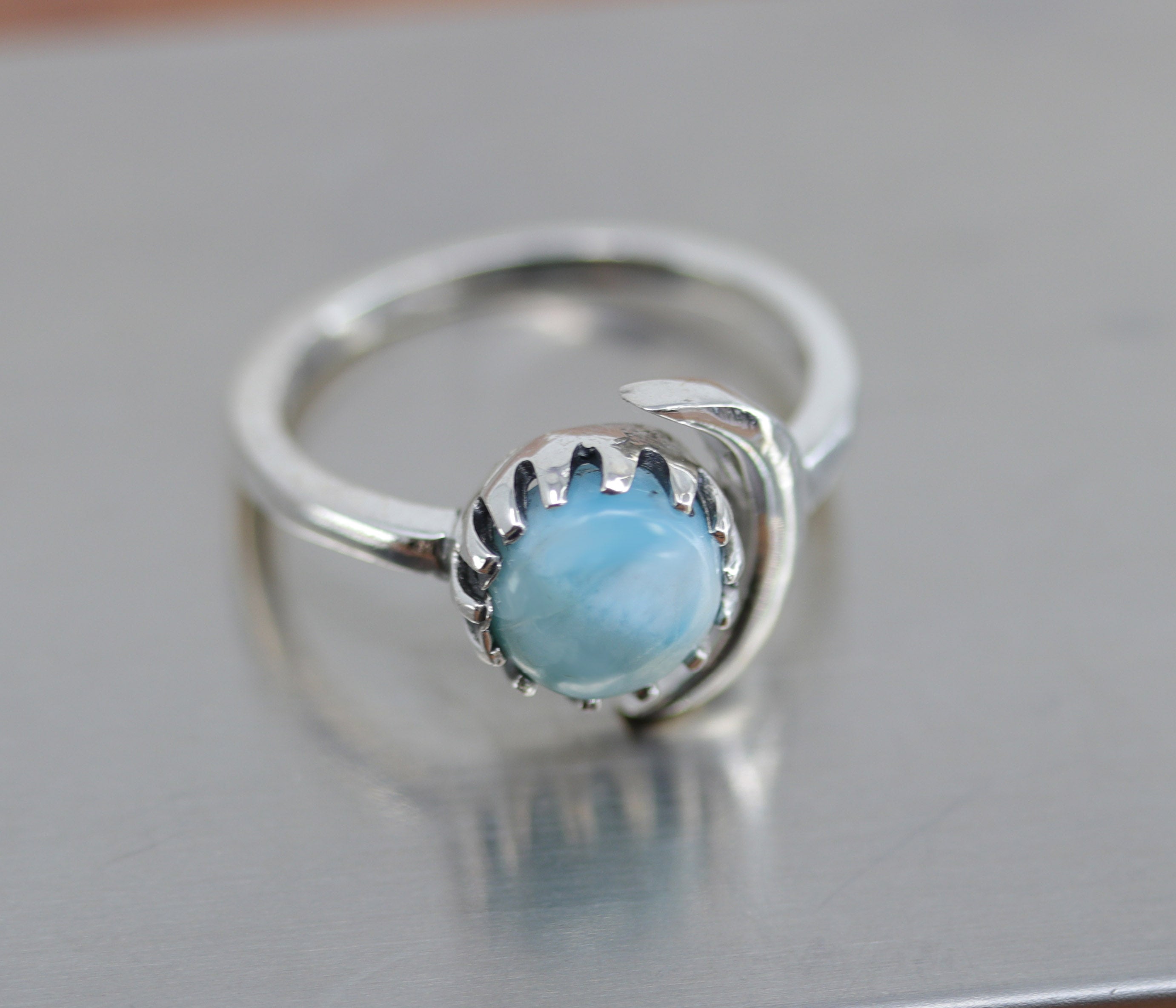 Sterling Silver Larimar Moon Ring Size 7-8