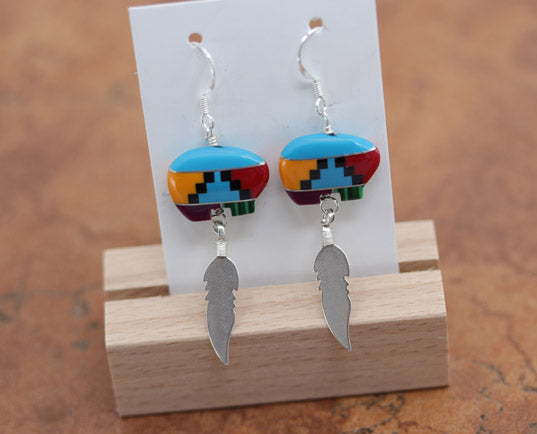The hooks are made from sterling silver. The earrings are about 2 3/8" in length including the hook, and 7/8" in width. This item is not Native American.