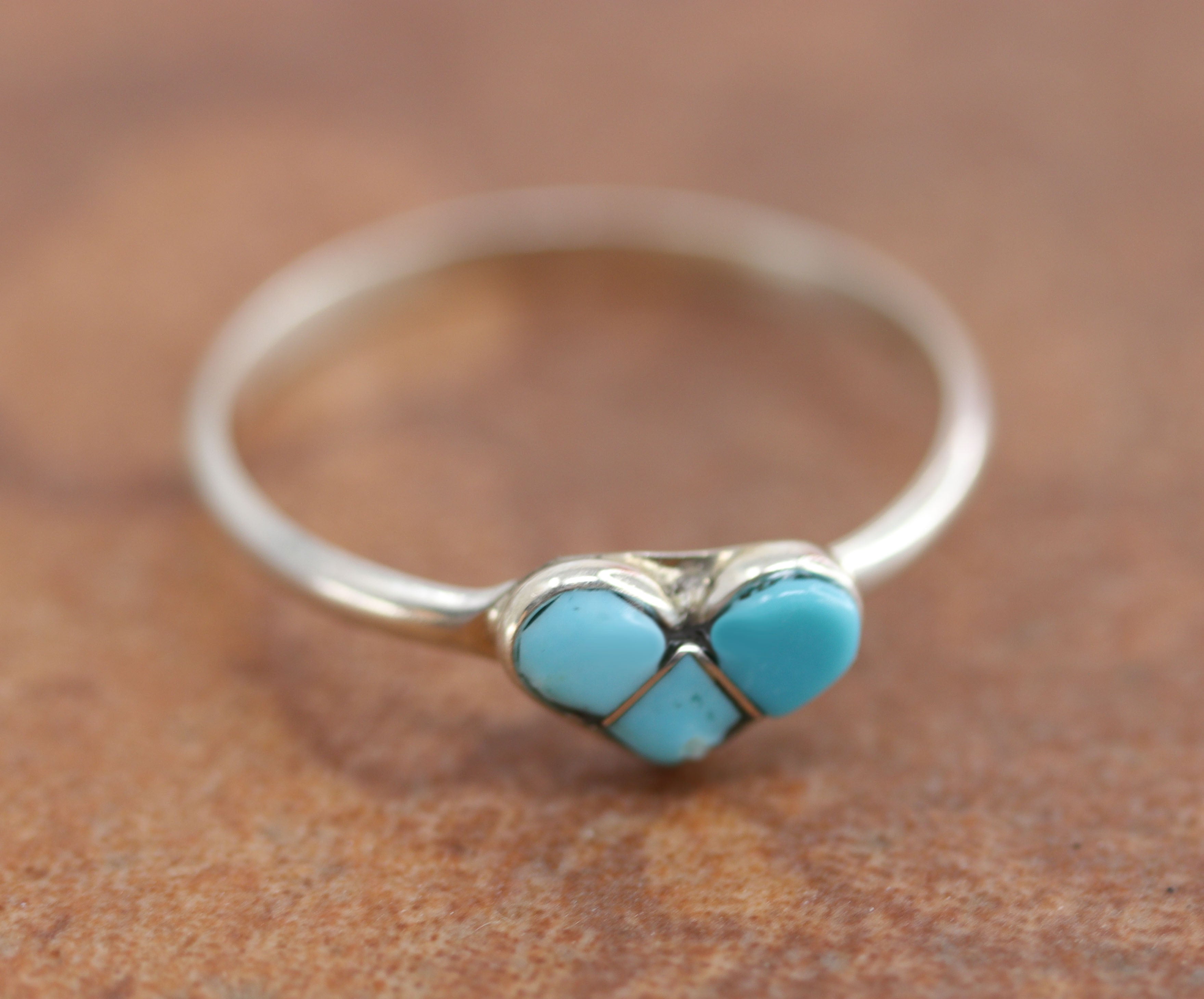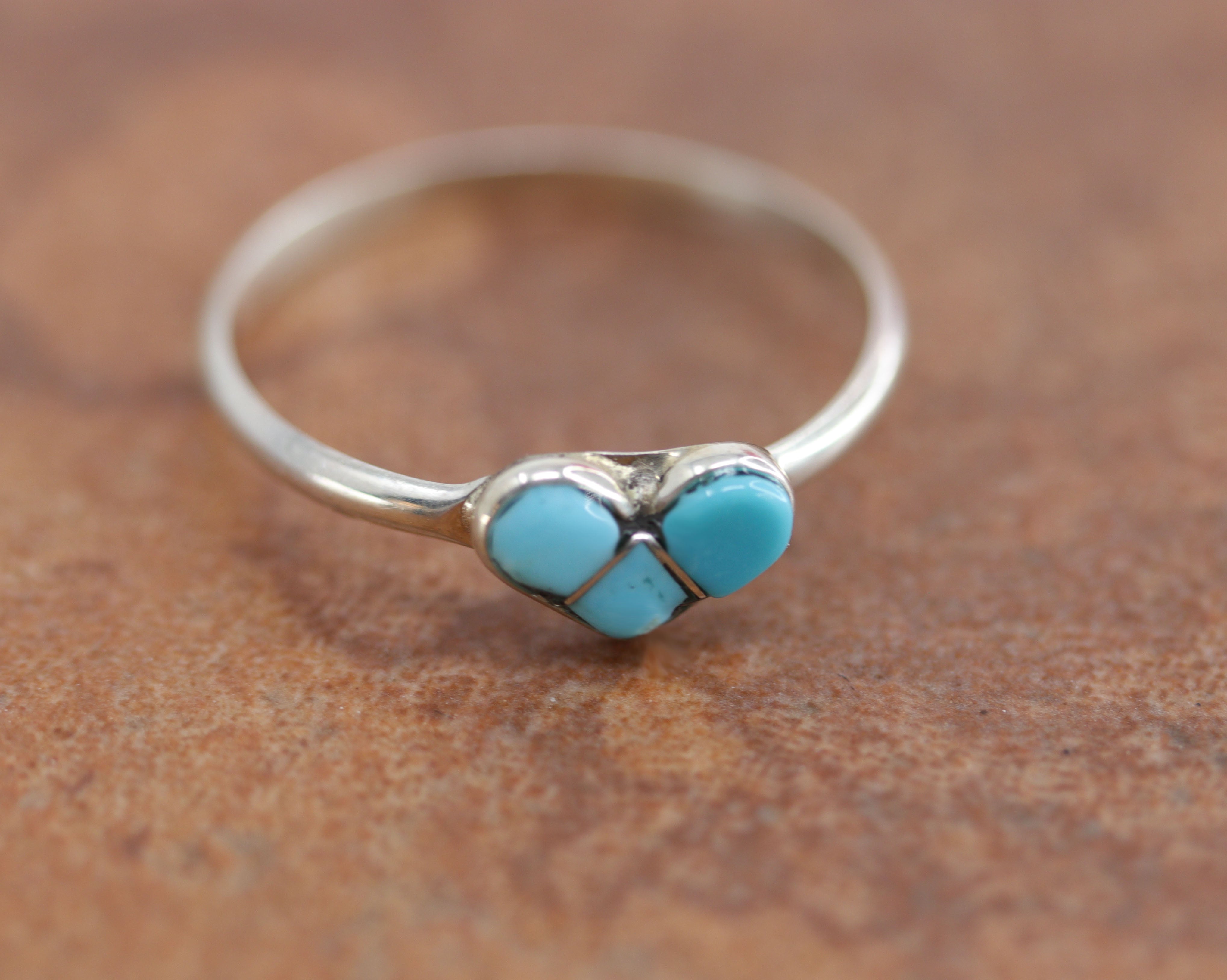 Zuni Sterling Silver Turquoise Heart Ring Size 6