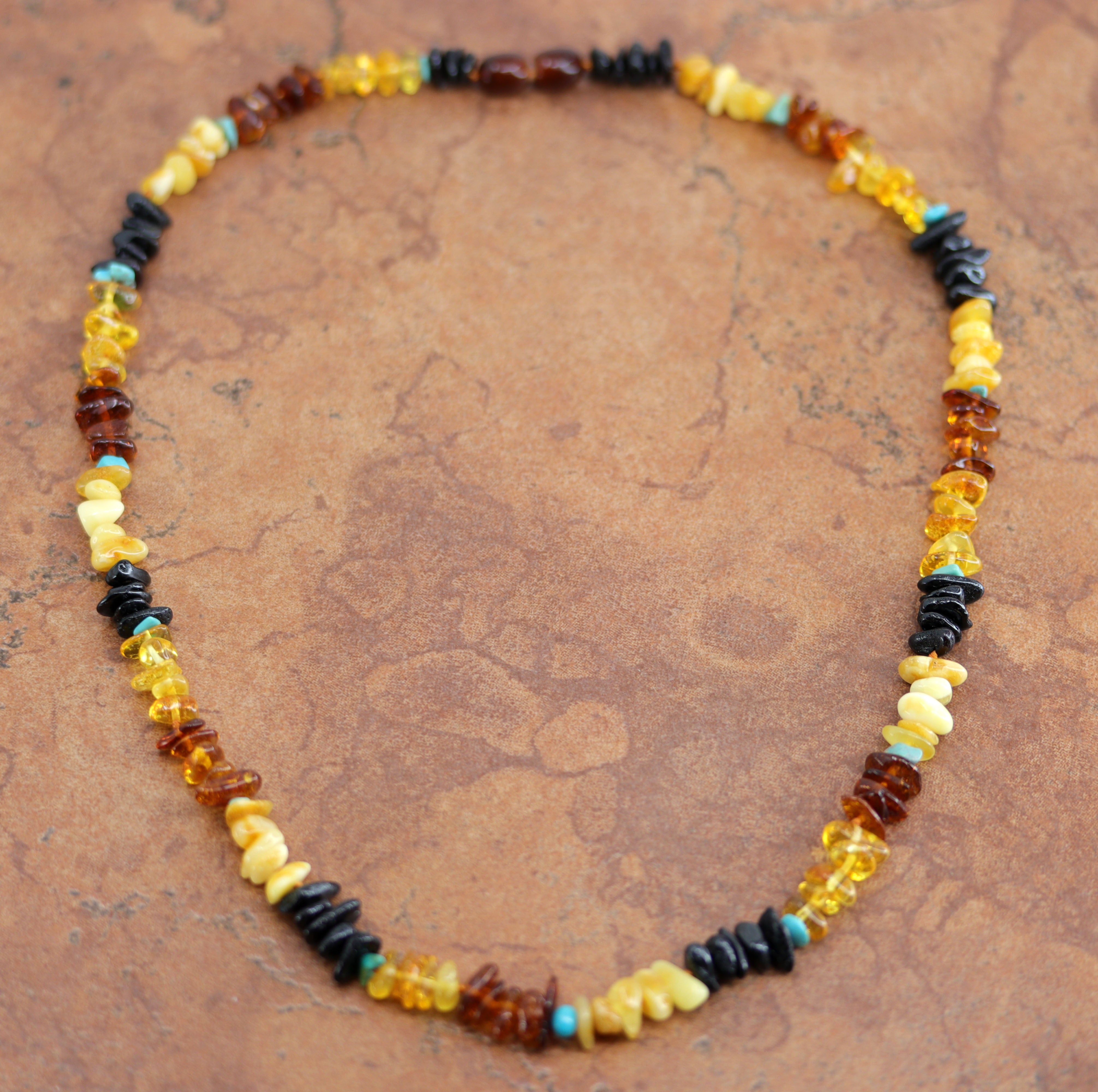 Beautiful necklace with amber that comes from the Baltic Sea. The necklace is about 20" in length, and about 1/2" wide. This item is not Native American.