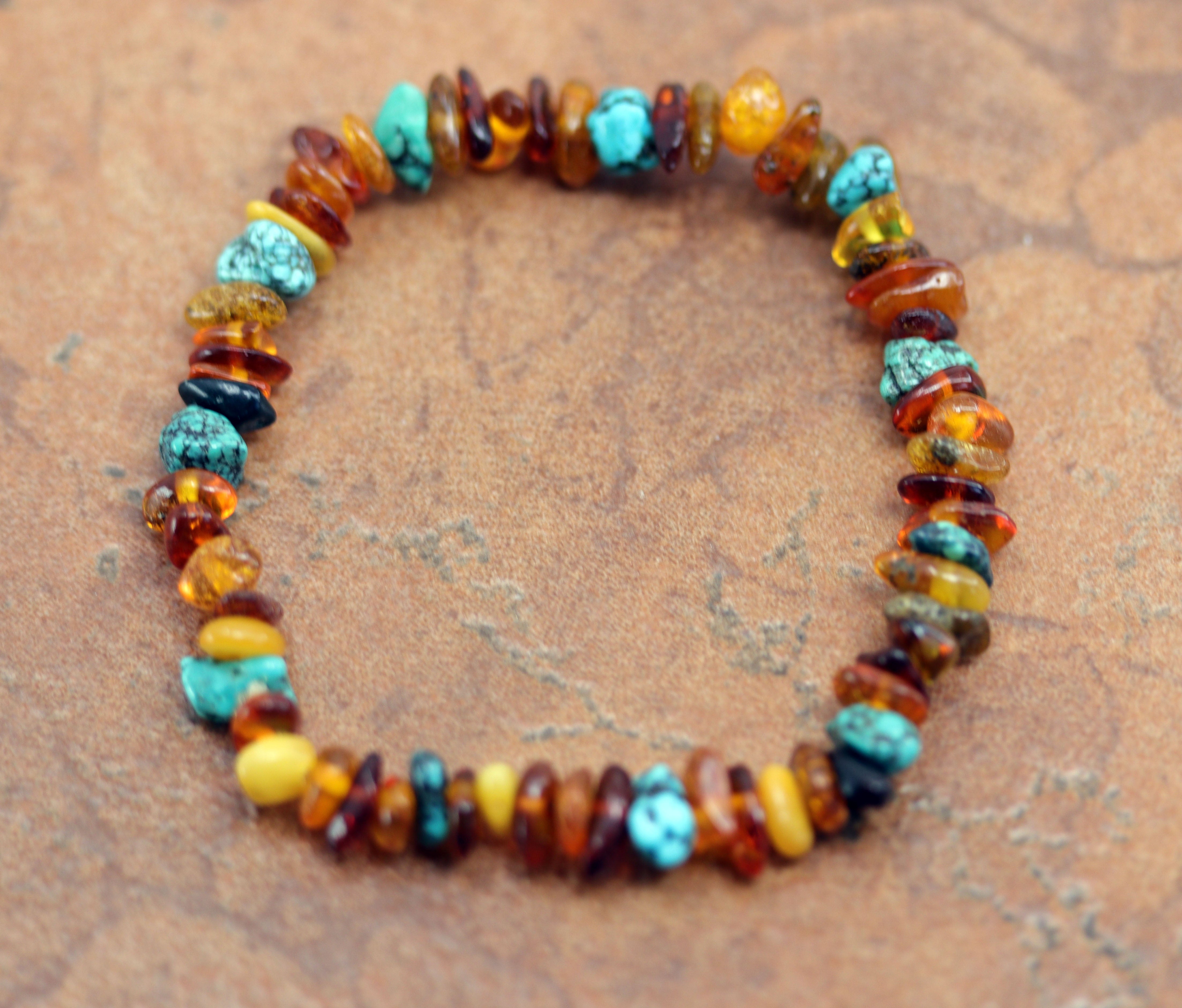 Baltic Amber Turquoise Stretch Bracelet