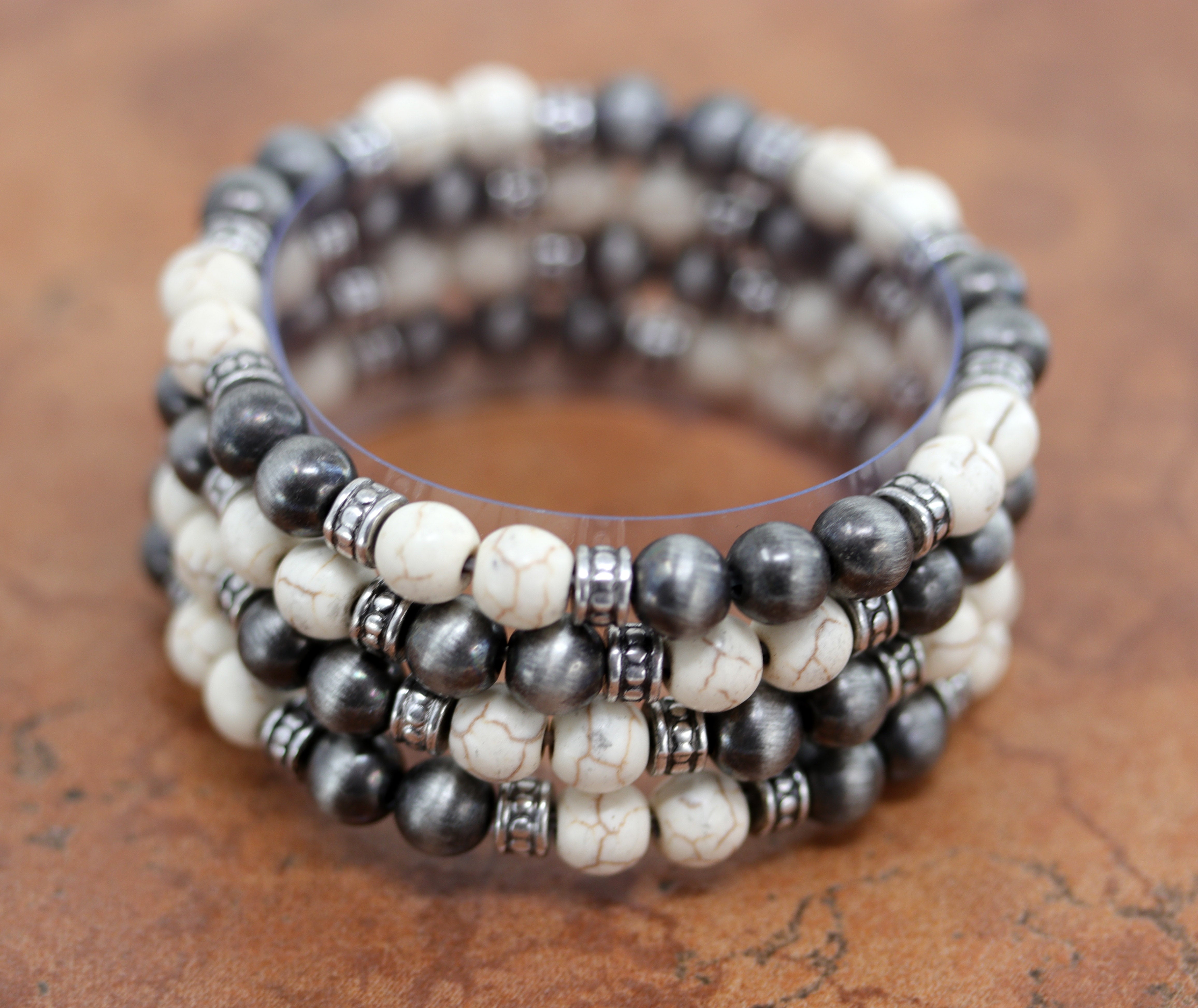 The bracelet is made from clay beads, the bracelets can be stacked or worn separately, all 4 pieces are included. The bracelet is stretchable and fits most sizes. The width of beads is about 8 mm. This item is not Native American.