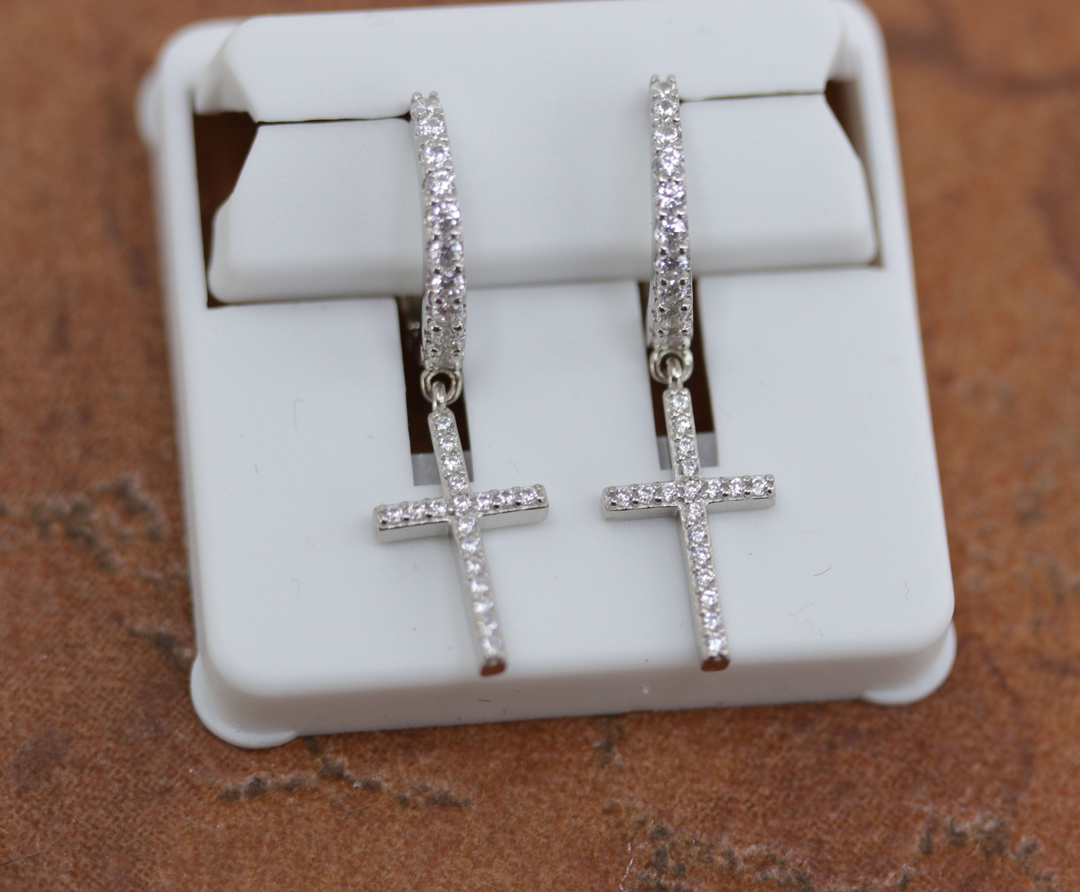 They are made from sterling silver and cubic zirconia. The earrings are about 1 1/4" in length, and about 3/8" wide. This item is not Native American.